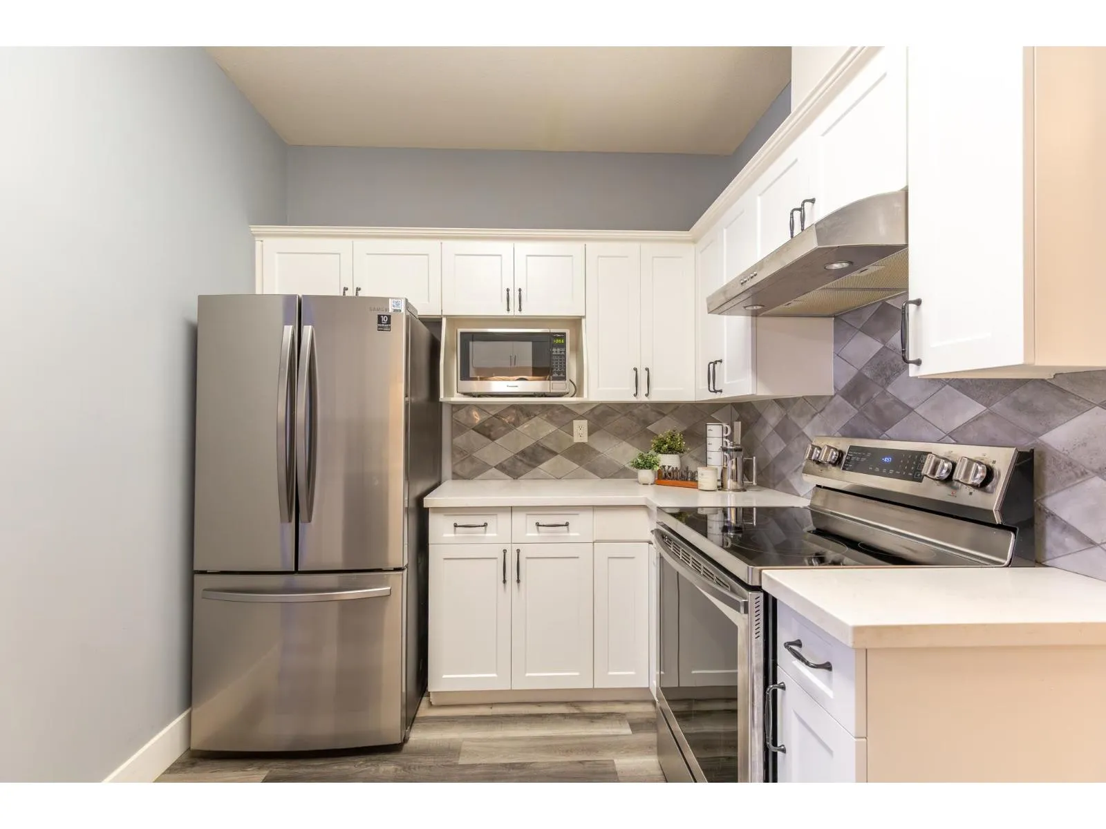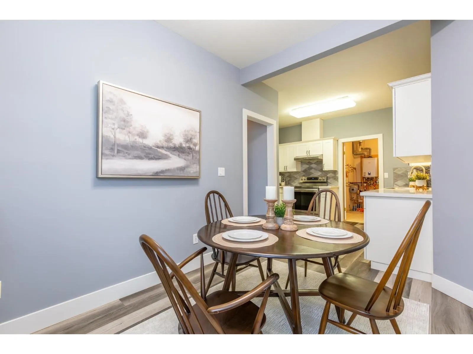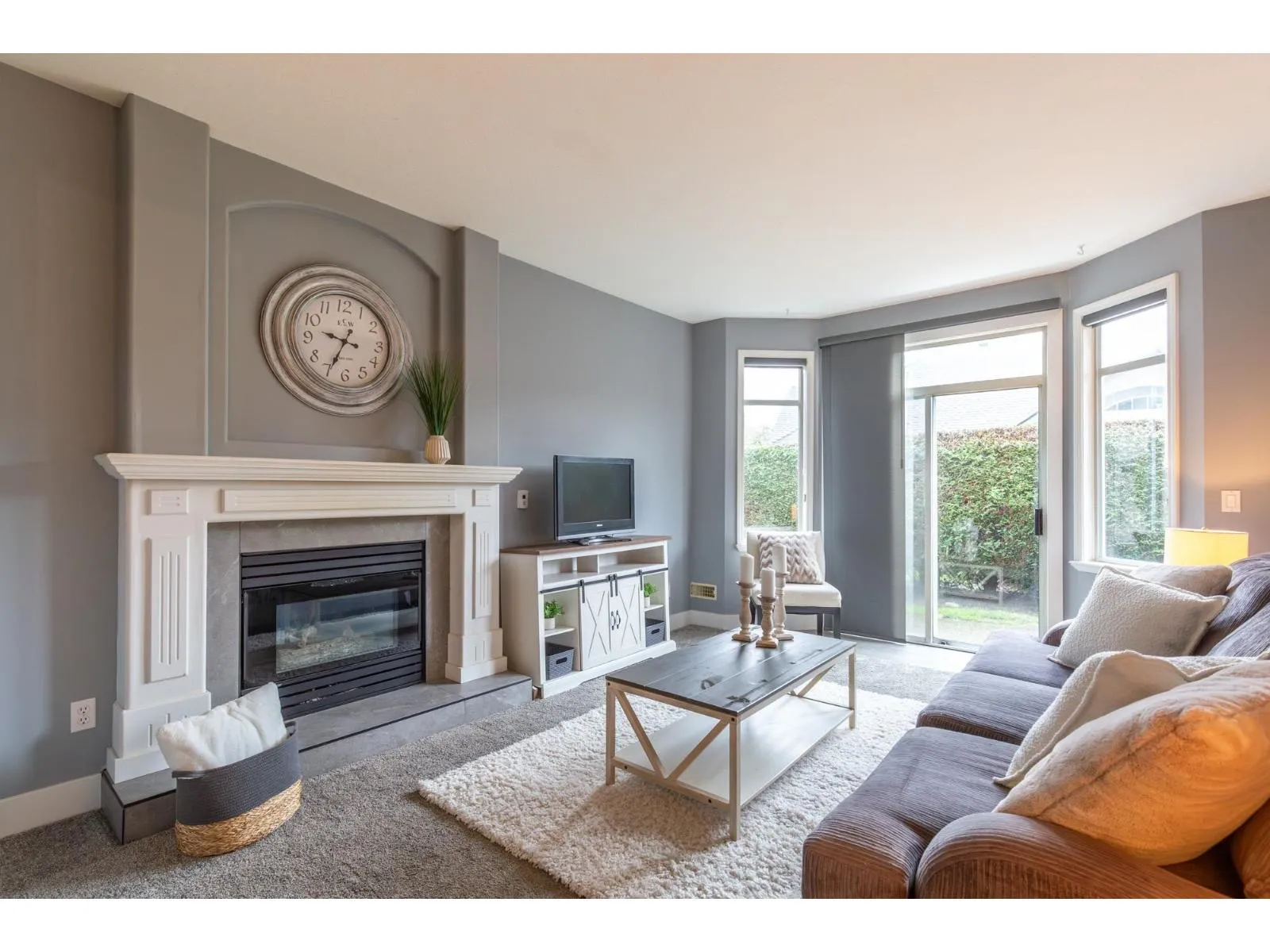 Gorgeous ground-level, end-unit townhome located in Murrayville's Eaglecrest. This beautifully updated home features a spacious & bright living room w/ gas fireplace & glass sliding door to the private SW facing patio, gourmet kitchen w/ vinyl plank flooring, white shaker cabinets, quartz counters, stainless appliances, & large adjacent eating area. 3 bedrooms incl primary bedroom w/ bay window, large closet w/ barn door, & luxurious ensuite w/ relaxing soaker tub & separate shower. 4 pc main bath, laundry rm, & garage. Extensive updates incl flooring, paint, lighting, kitchen, bathrooms, & on-demand HW/boiler system. Awesome gated complex w/ large clubhouse, community gardens, & RV parking possibilities. Walk to restaurants, shops, W.C. Blair Recreation Centre, hospital, parks, & schools. (id:27476)