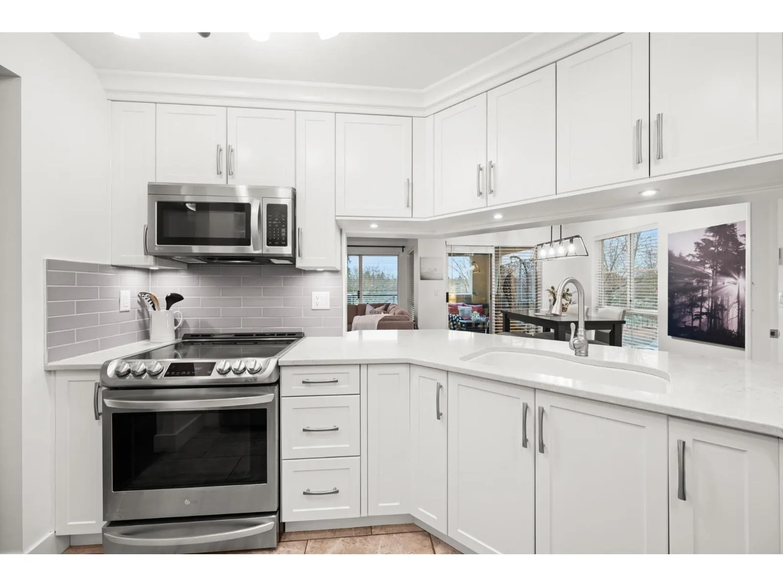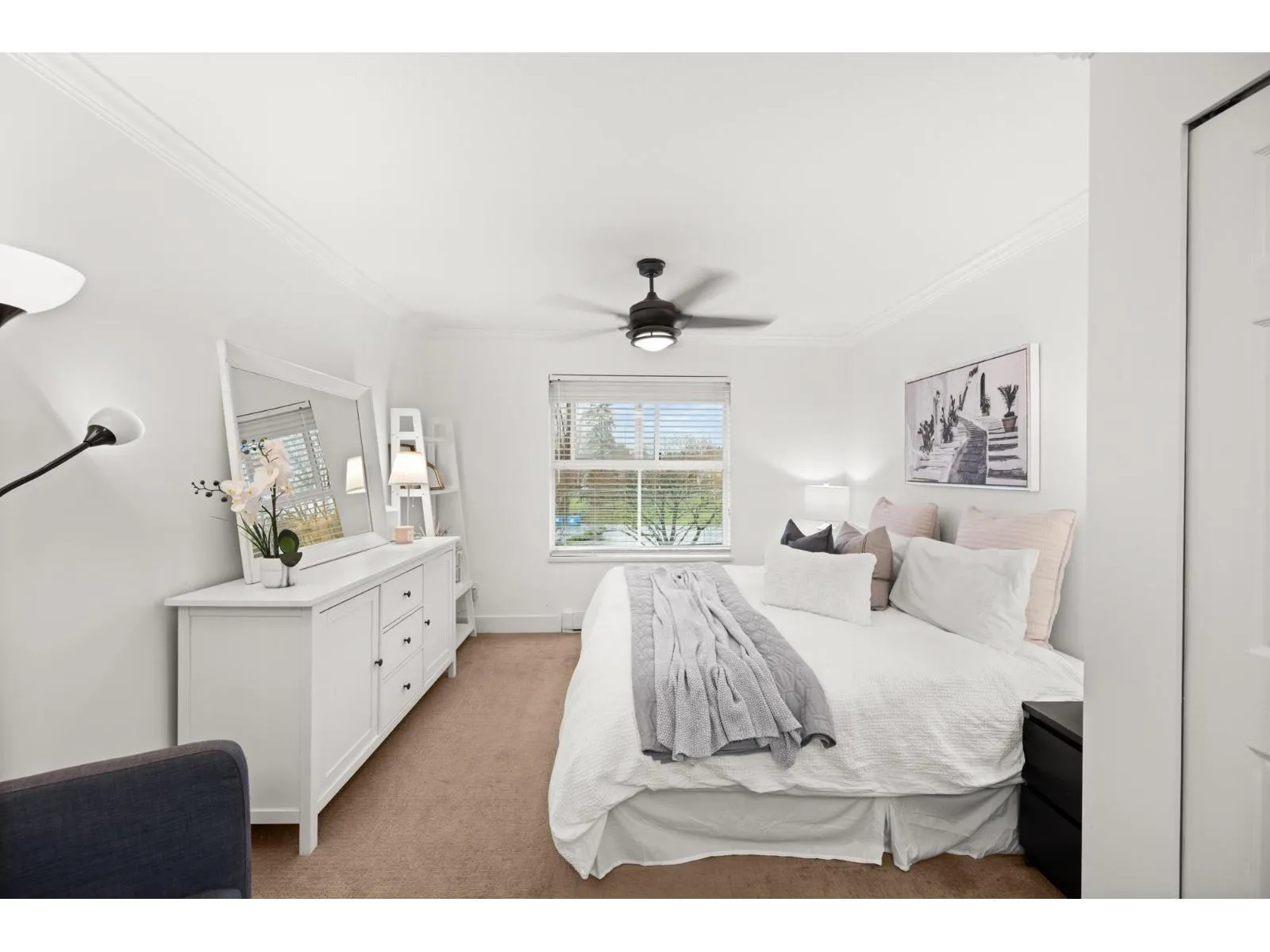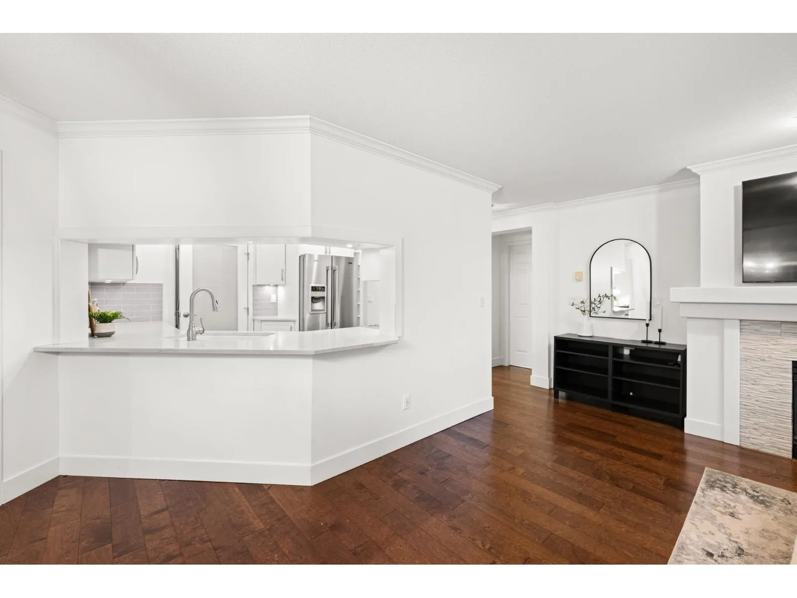 Welcome to Regency Terrace in the heart of Langley City! This bright & spacious 2-bedroom, 2-bathroom home features a functional layout w a cozy gas fireplace, updated flooring, paint, & an open white kitchen. Oversized primary bedroom offers generous closet space & a spacious ensuite, while the second bedroom is thoughtfully located on the opposite side for added privacy. Enjoy a large covered patio with beautiful park views, perfect for relaxing or entertaining. The building offers great amenities including a lounge and fitness room. Includes 1 parking stall, with hot water & gas covered in strata fees. No dog breed restrictions. Located directly across from Linwood Park with a new playground and off-leash dog park- (id:27476)
