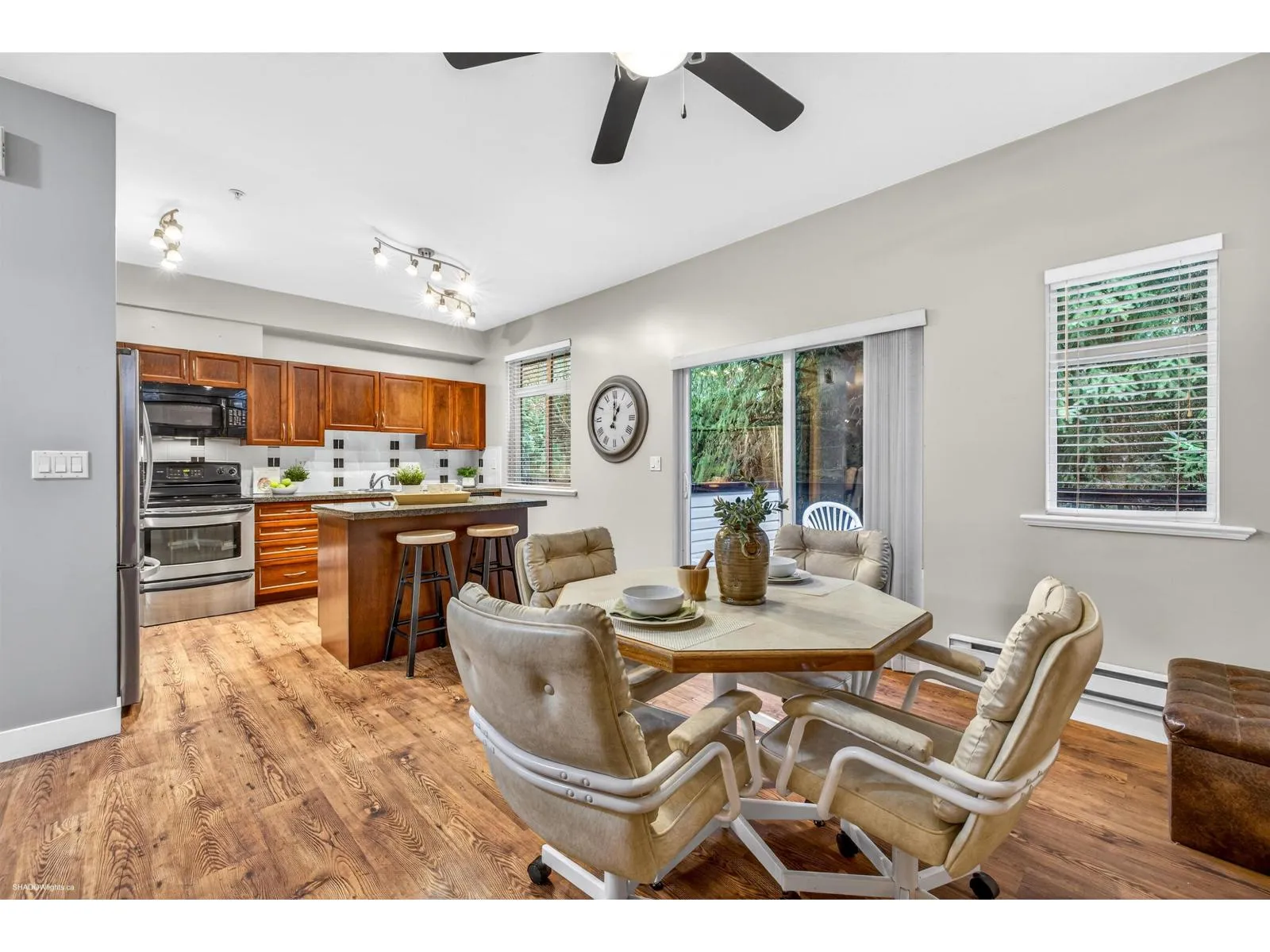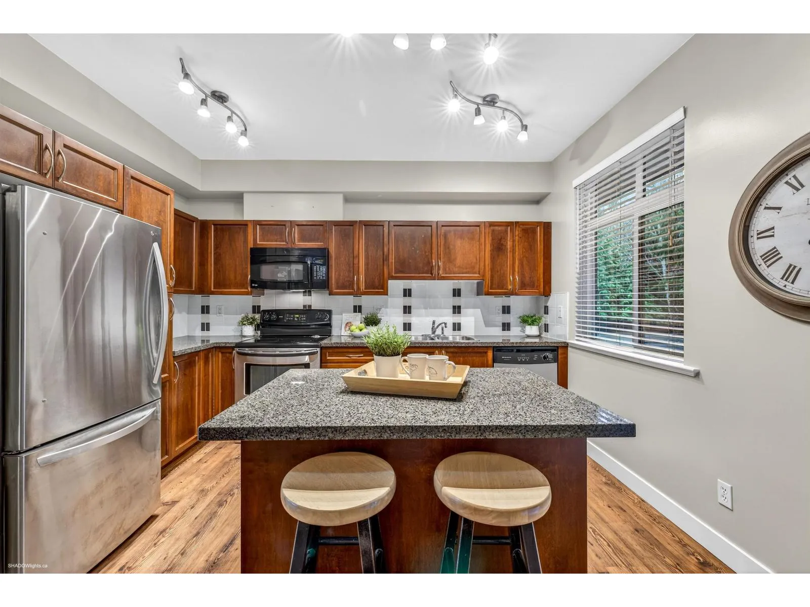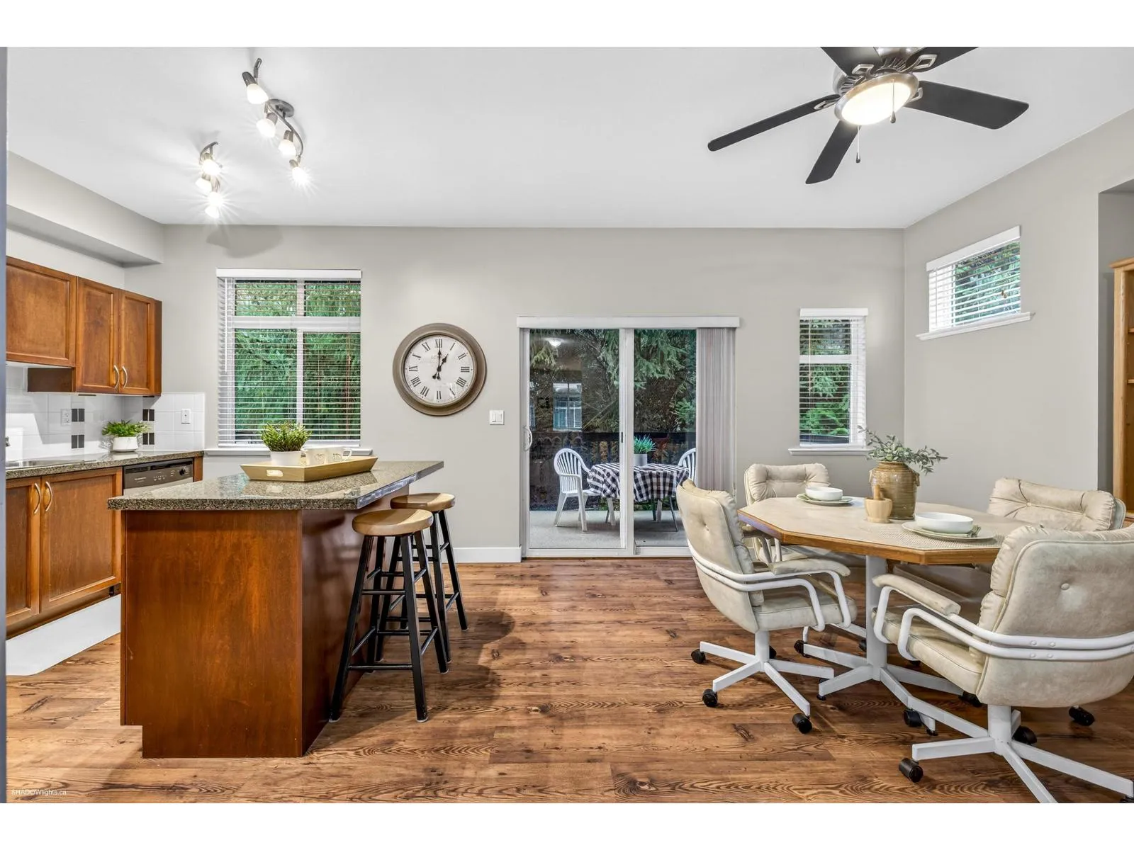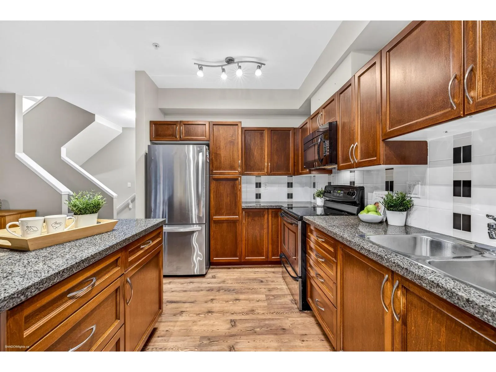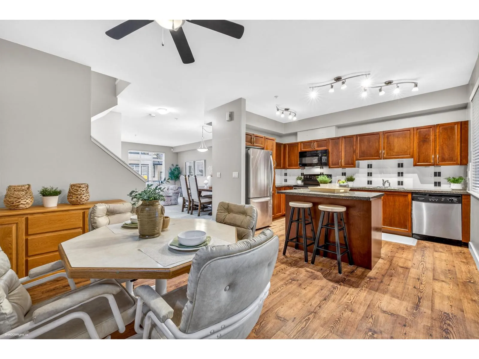 Welcome to Summerwood! A sought-after townhome complex located in quiet area of Willoughby yet close to excellent schools, shopping, parks & events center. Complex offers playground, clubhouse, & exercise center. Spacious 2065 sqft End Unit with 3 bedrooms, 3.5 bathrooms, a family room off kitchen, modern kitchen with island & huge rec. room below for family entertaining or convert to 4th bedrooms with its own full bath. Upper level offers a large primary bedroom with vaulted ceilings, Walk-in closet, 5-piece ensuite plus 2 large bedrooms. Double side-by-side garage west facing deck/covered patio backing onto greenspace & walking path. Easy access to the highway & all Langley's best amenities. (id:27476)