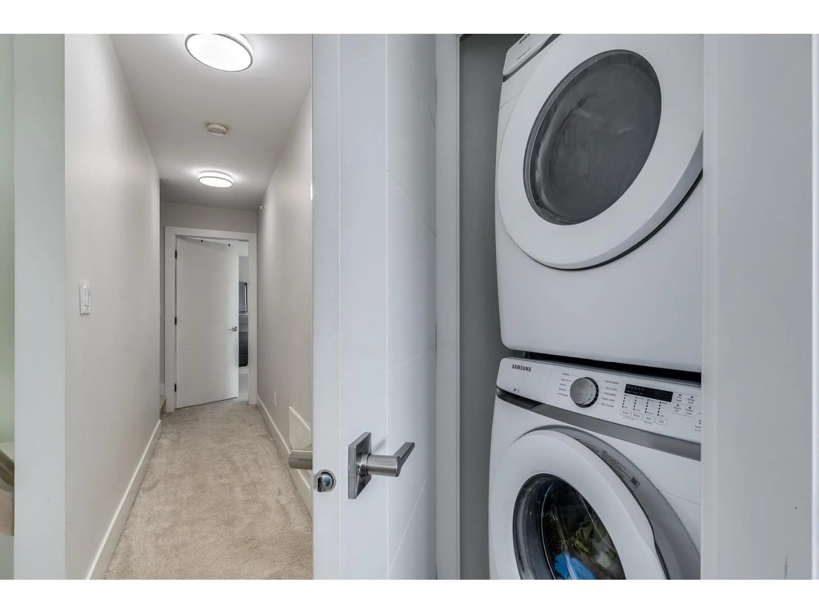 This spacious Corner next to a dead end street is Bright 2 bed / 2.5 baths,4 year old unit with 1501 sq ft,Primary bedroom has double closets,Extra corner window ,2nd bedroom is good size with 3 closets,Both rooms are practical. Double tandem garage currently part of it is used as a workshop area in the garage. Roof top deck approx 500 sq ft. Sundeck off the nook area. Bright Kitchen with gas Range, quartz countertops, engineered laminate flooring, frameless glass showers, custom wooden cabinets, stainless steel appliances,Clean and fresh, making this all ready for your family.Enjoy Air conditioning, Gas forced air furnace.Excellent value. Located in Langley City close to shops, restaurants, shopping, recreation and the newly expected Skytrain Station.VACANT READY TO MOVE IN. (id:27476)