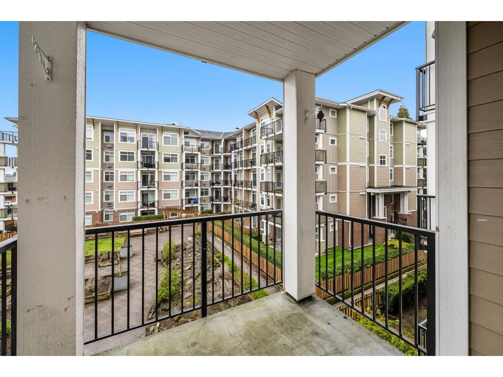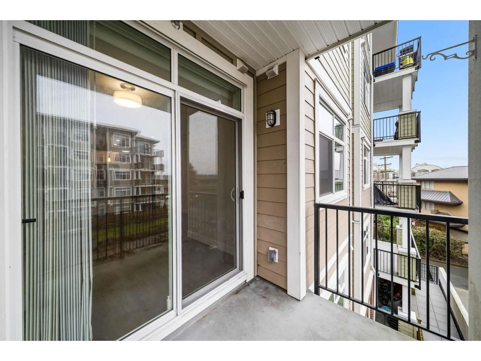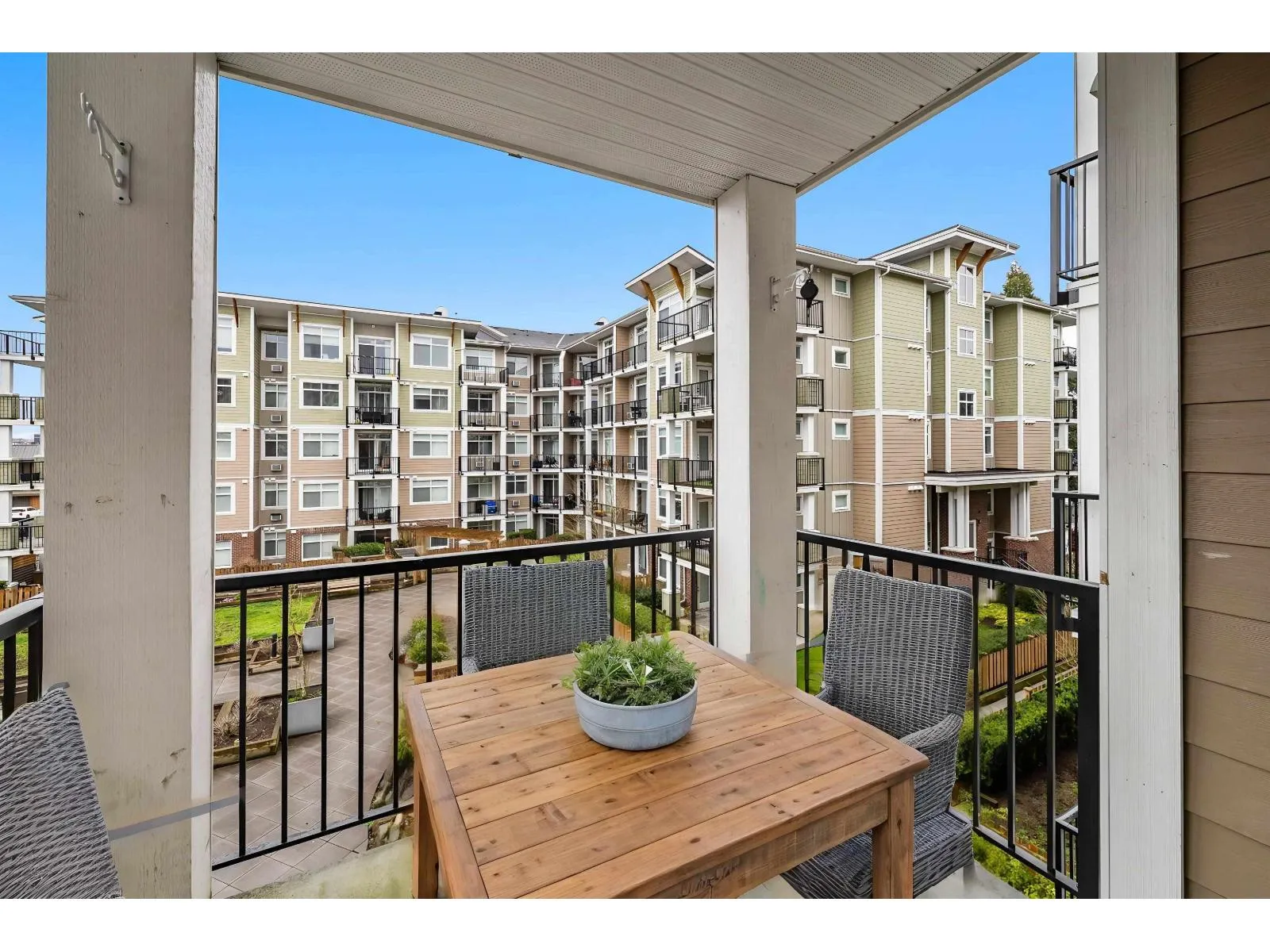 Welcome to The Georgia by Whitetail Homes, ideally located on the edge of Downtown Langley. This freshly painted 2 bedroom, 2 bathroom home is tucked away on the quiet side of the building and offers a bright, functional layout. Improvements include new lighting and brand new stainless steel appliances with extended warranty. Enjoy a covered balcony for year round outdoor space along with the convenience of 2 parking stalls and a storage locker. The primary bedroom also features A/C for added comfort. Residents have access to a gym and are minutes from shopping, restaurants, parks, Kwantlen Polytechnic University, and the future SkyTrain expansion. Move in ready in a highly convenient location. 2 pets allowed. (id:27476)
