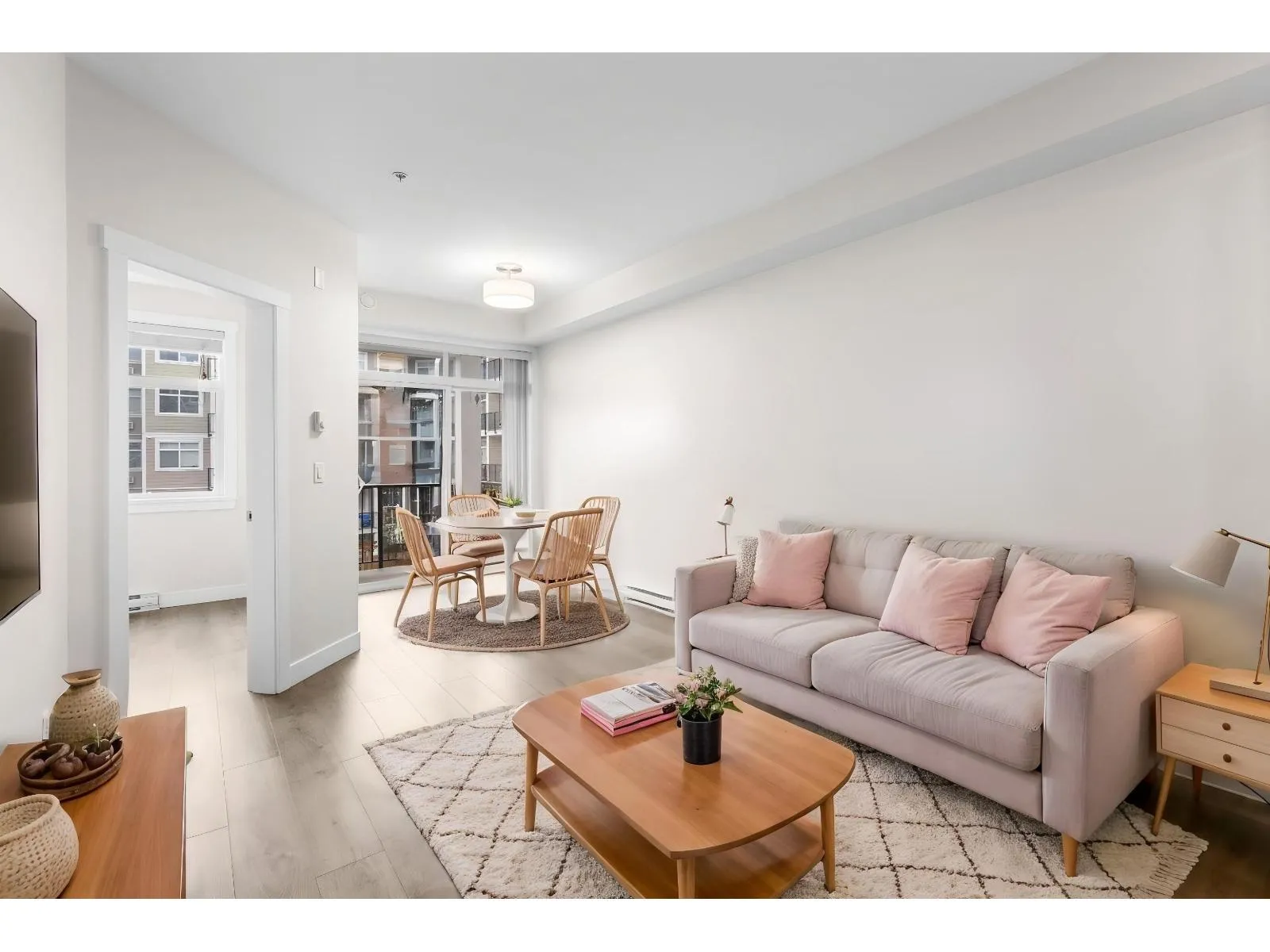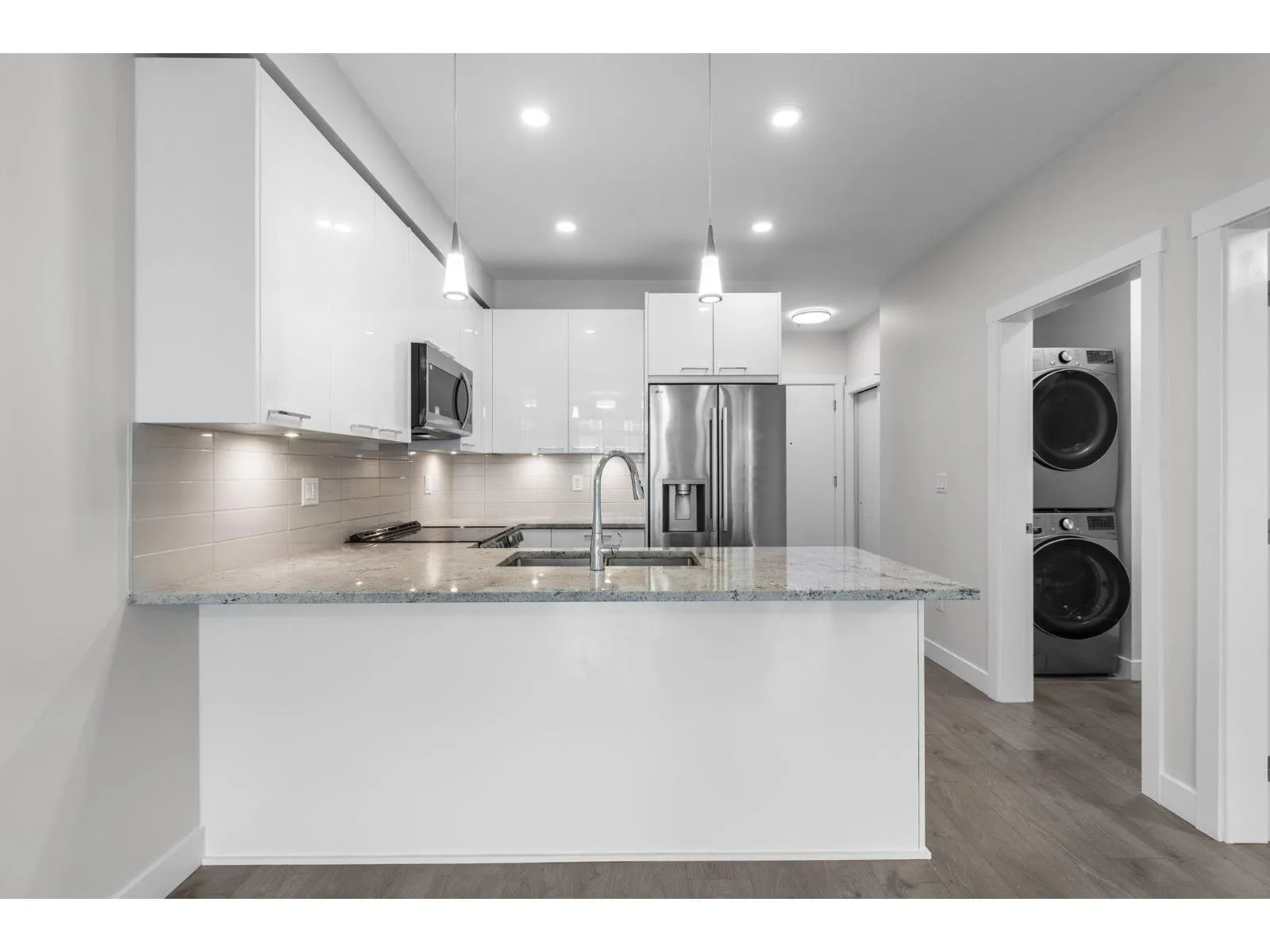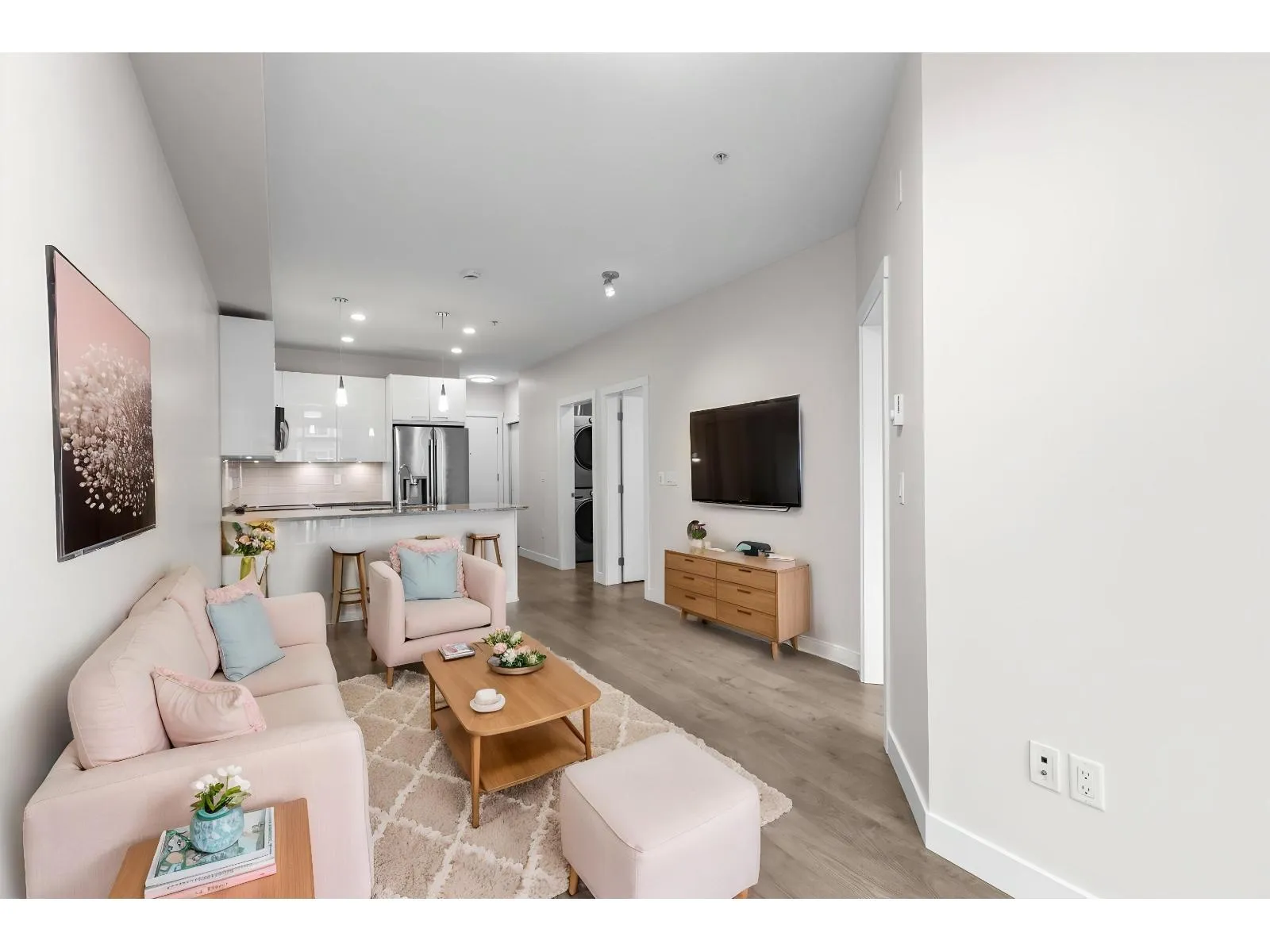 Welcome to The Georgia by Whitetail Homes, ideally located on the edge of Downtown Langley. This freshly painted 2 bedroom, 2 bathroom home is tucked away on the quiet side of the building and offers a bright, functional layout. Improvements include new lighting and brand new stainless steel appliances with extended warranty. Enjoy a covered balcony for year round outdoor space along with the convenience of 2 parking stalls and a storage locker. The primary bedroom also features A/C for added comfort. Residents have access to a gym and are minutes from shopping, restaurants, parks, Kwantlen Polytechnic University, and the future SkyTrain expansion. Move in ready in a highly convenient location. 2 pets allowed. (id:27476)