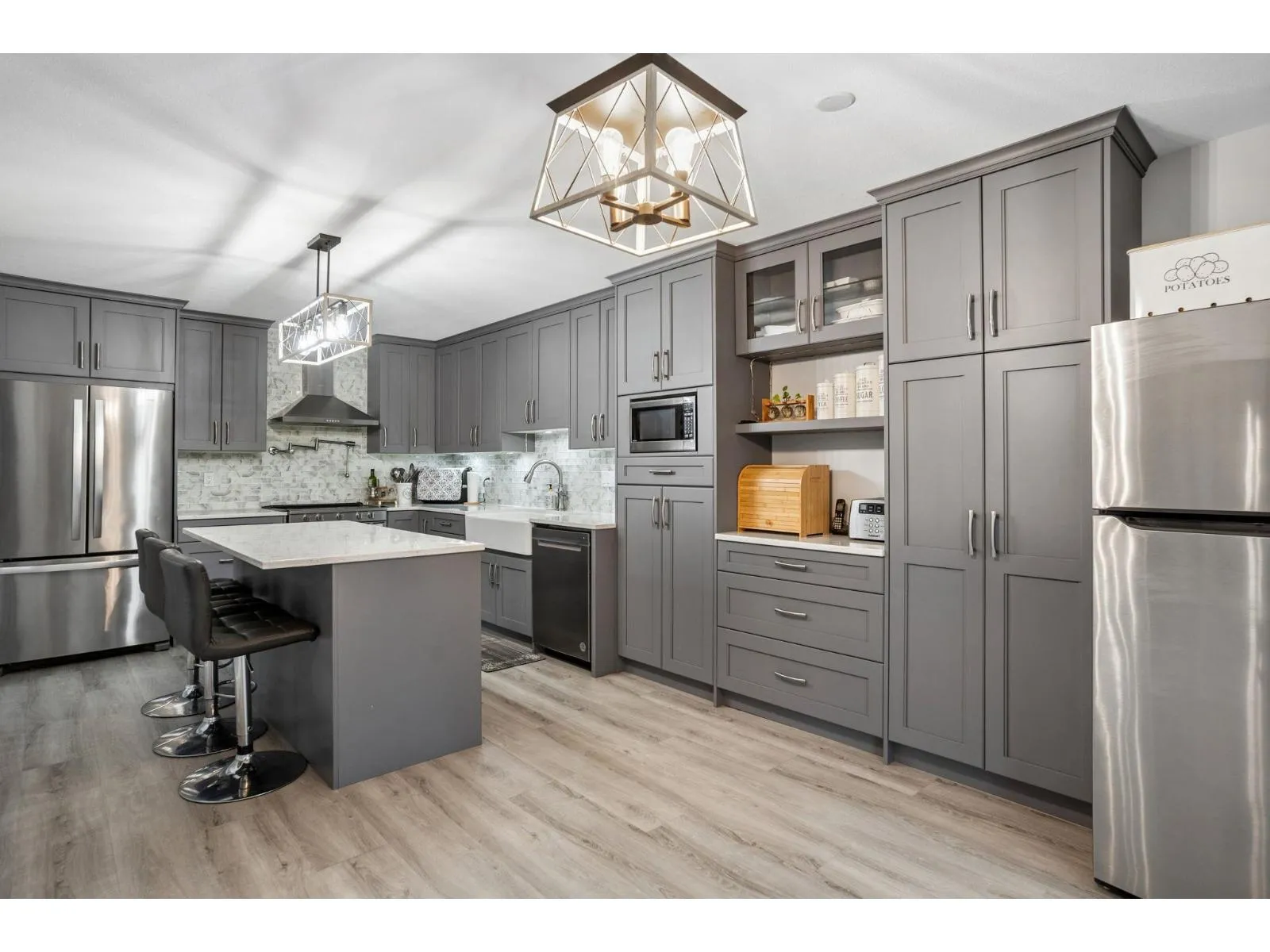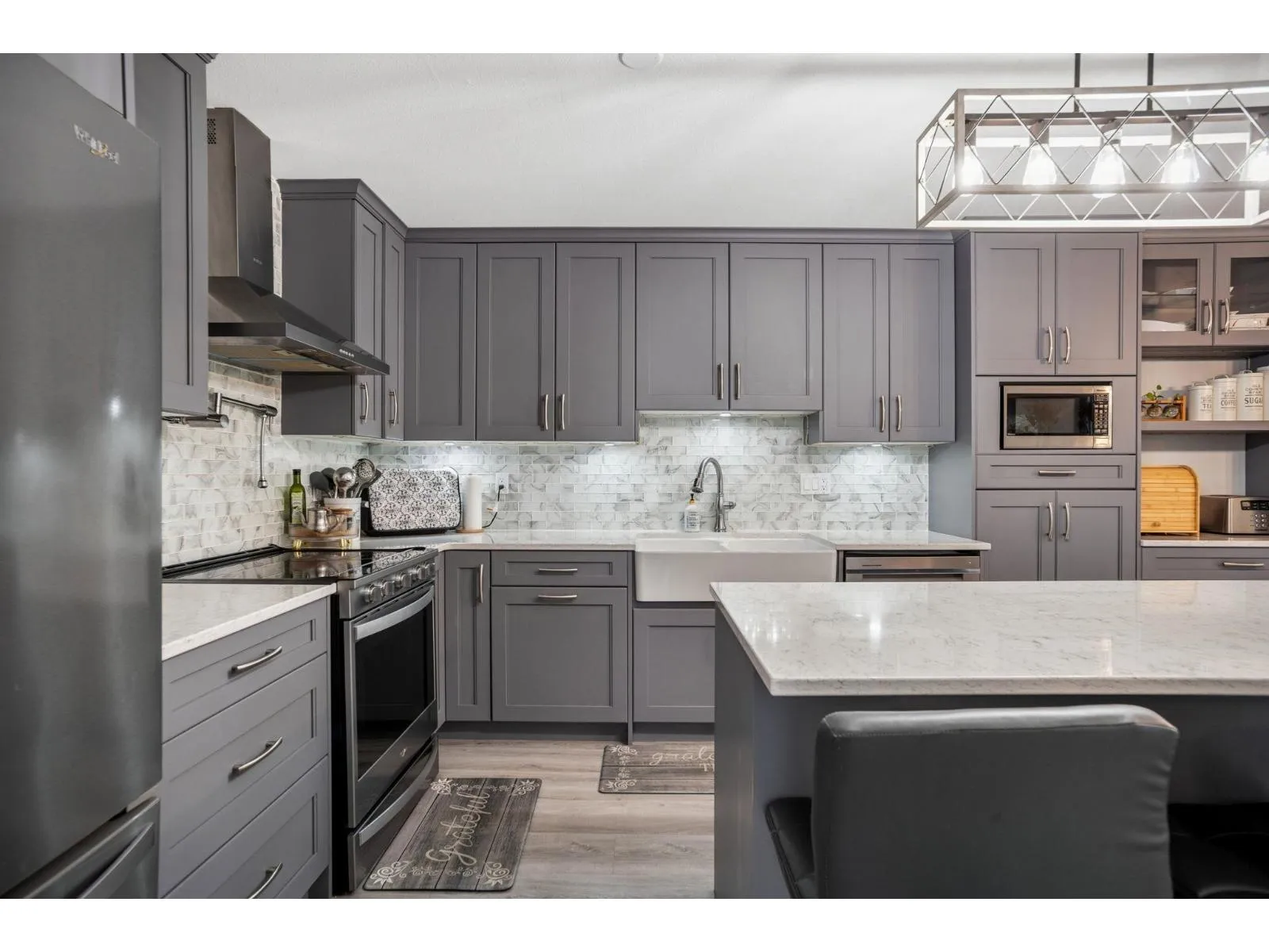 This bright and spacious 3 bed, 2 bath upper end-unit townhouse features 9' vaulted ceilings, a cozy gas fireplace, and radiant in-floor heating. The home offers a formal dining room with bay window and a renovated kitchen with quartz countertops, new appliances, hood fan, ample cabinetry, and bonus eating/family area. Both bathrooms have been tastefully updated. The primary suite features patio access, bay window, dual closets, and a large 4-piece ensuite with separate shower. A second bedroom also opens onto the patio. Additional updates include newer washer/dryer, fresh paint, and hot water on demand. Located in a family-friendly gated complex. Great central Murrayville location close to shops, parks, and amenities. (id:27476)