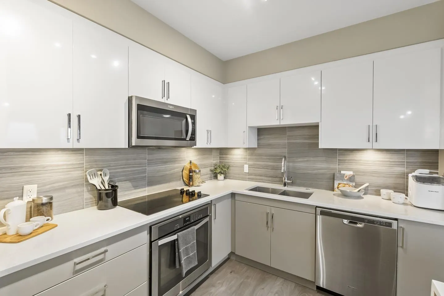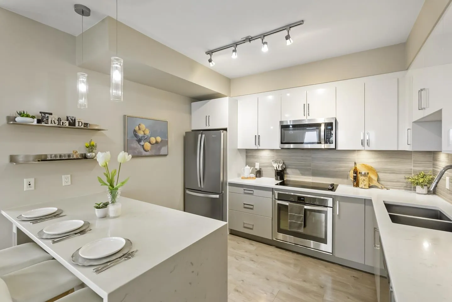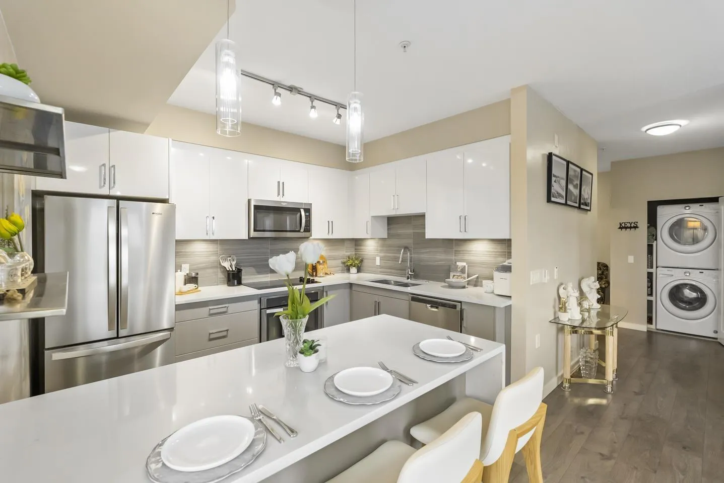 Experience top-floor living in this incredibly bright and spacious 1,040 sq.ft. home featuring 2 beds, 3 full baths, and a stunning wrap-around balcony! The building amenities are top-notch: enjoy a gym, yoga studio, billiards, board room, a guest suite, plus 2 parking spots. The prime location is simply unbeatable-you are right across from Walmart, Best Buy, Starbucks, and great dining. Families will love the short walk to R.C. Garnett Elementary, nearby parks, and R.E. Mountain Secondary. Commuting is a breeze with quick transit access just a short walk away and the future Willowbrook SkyTrain station close by. Quick possession is possible, meaning this vibrant, highly walkable lifestyle is ready when you are! Open house on Mar 28 from 2-4pm (id:27476)