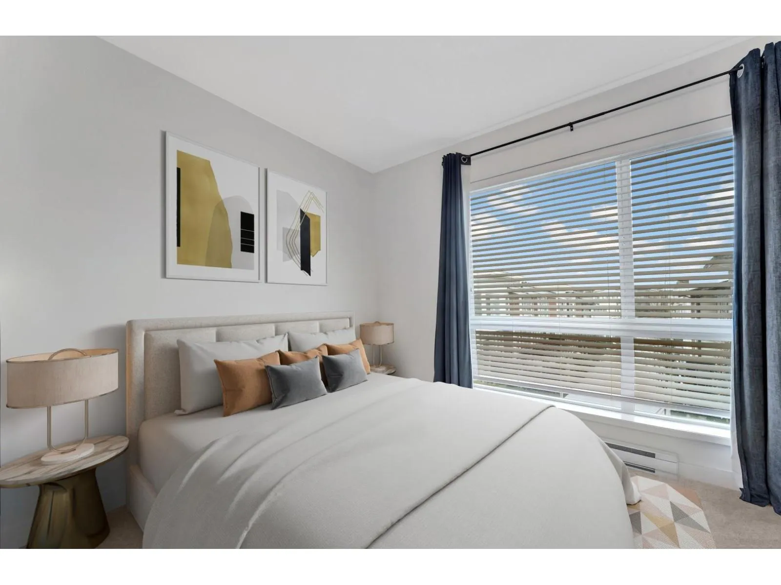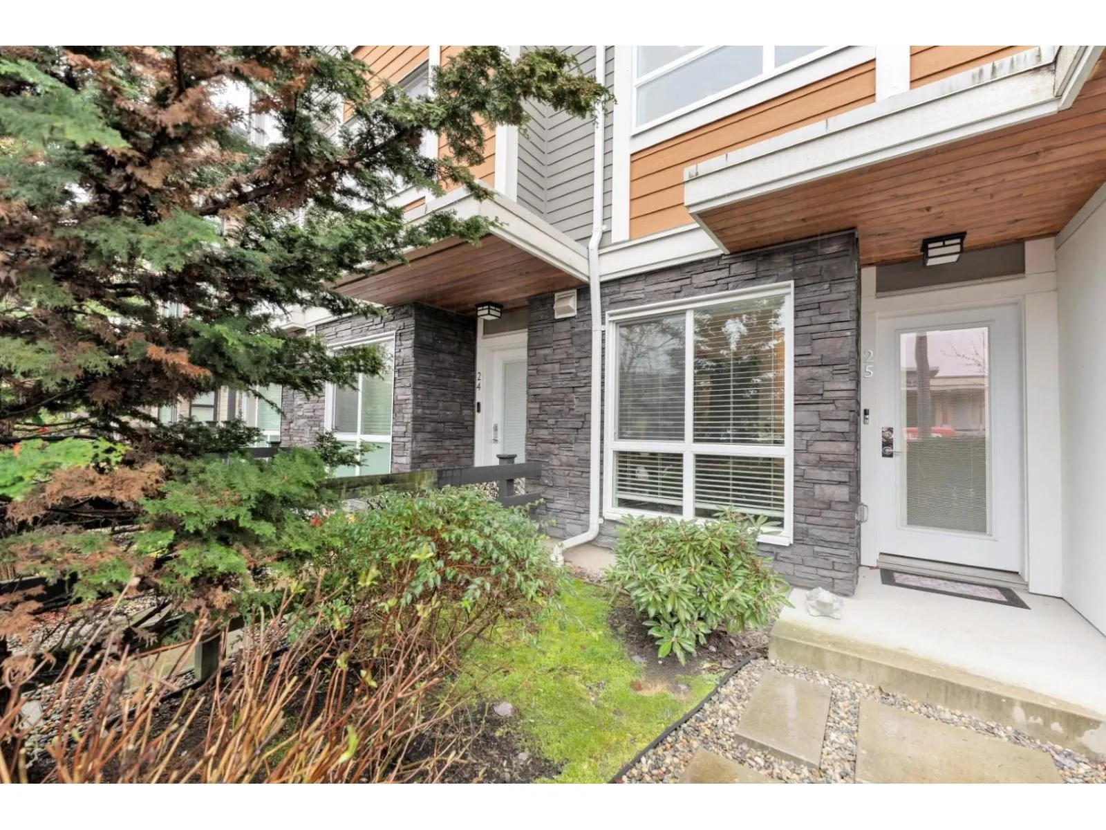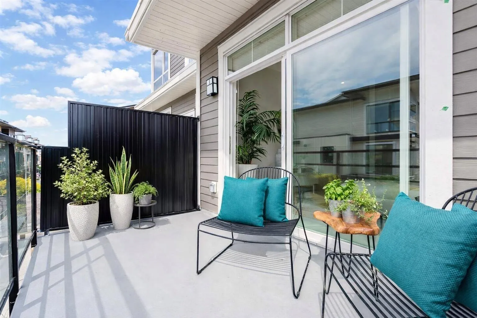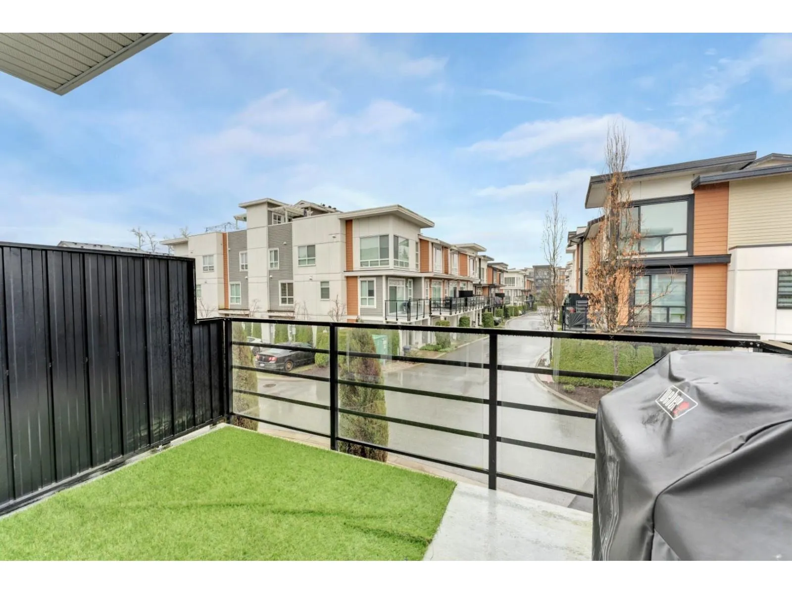 Welcome to Wexley in the heart of Willoughby. This bright and well maintained 2-bedroom 2.5 bathroom plus den townhouse offers a spacious and functional layout. The main level features 9-foot ceilings with a generous living and dining area. The modern kitchen features white shaker cabinetry, quartz countertops, and stainless-steel appliances. Step out to the large west facing balcony perfect for sunny afternoon BBQs. Upstairs offers two spacious bedrooms including a primary suite with double closets and a spa inspired ensuite. Enjoy a fully fenced front yard ideal for pets and children. Located across from Richard Bulpitt Elementary and minutes to Willoughby Town Centre, parks, shops, and commuter routes. Perfect for families and first-time buyers. (id:27476)