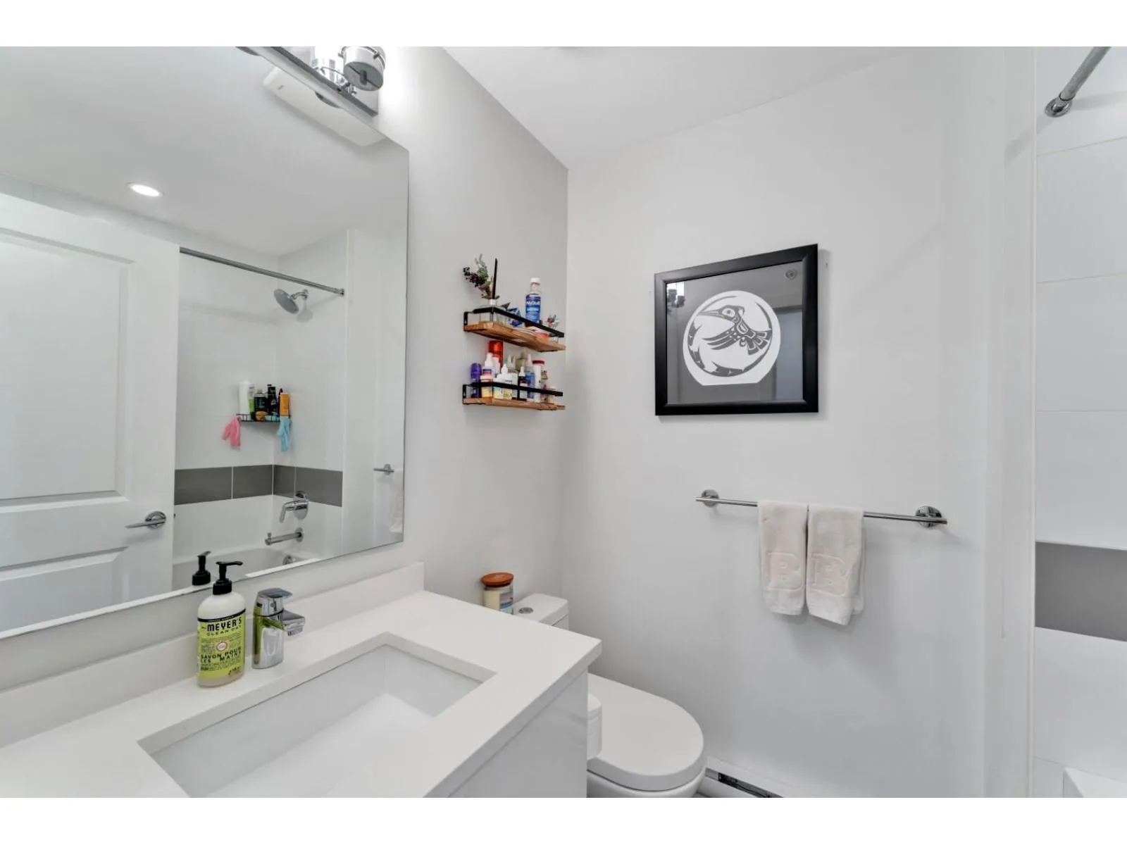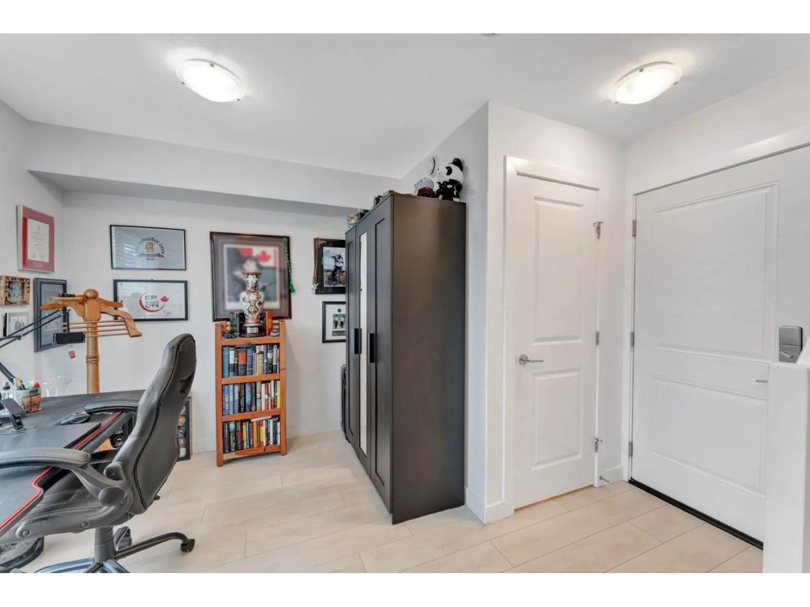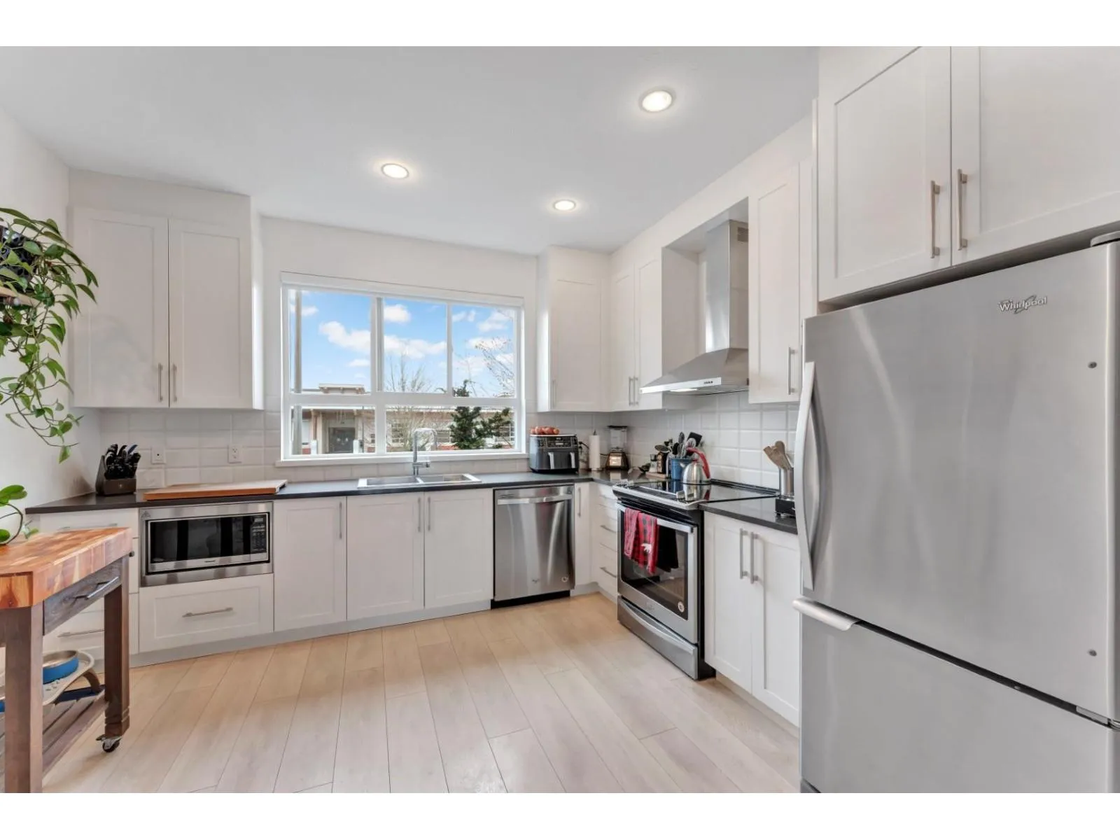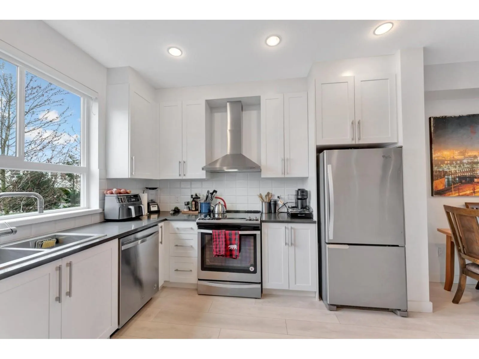 Welcome to Wexley in the heart of Willoughby. This bright and well maintained 2-bedroom 2.5 bathroom plus den townhouse offers a spacious and functional layout. The main level features 9-foot ceilings with a generous living and dining area. The modern kitchen features white shaker cabinetry, quartz countertops, and stainless-steel appliances. Step out to the large west facing balcony perfect for sunny afternoon BBQs. Upstairs offers two spacious bedrooms including a primary suite with double closets and a spa inspired ensuite. Enjoy a fully fenced front yard ideal for pets and children. Located across from Richard Bulpitt Elementary and minutes to Willoughby Town Centre, parks, shops, and commuter routes. Perfect for families and first-time buyers. (id:27476)