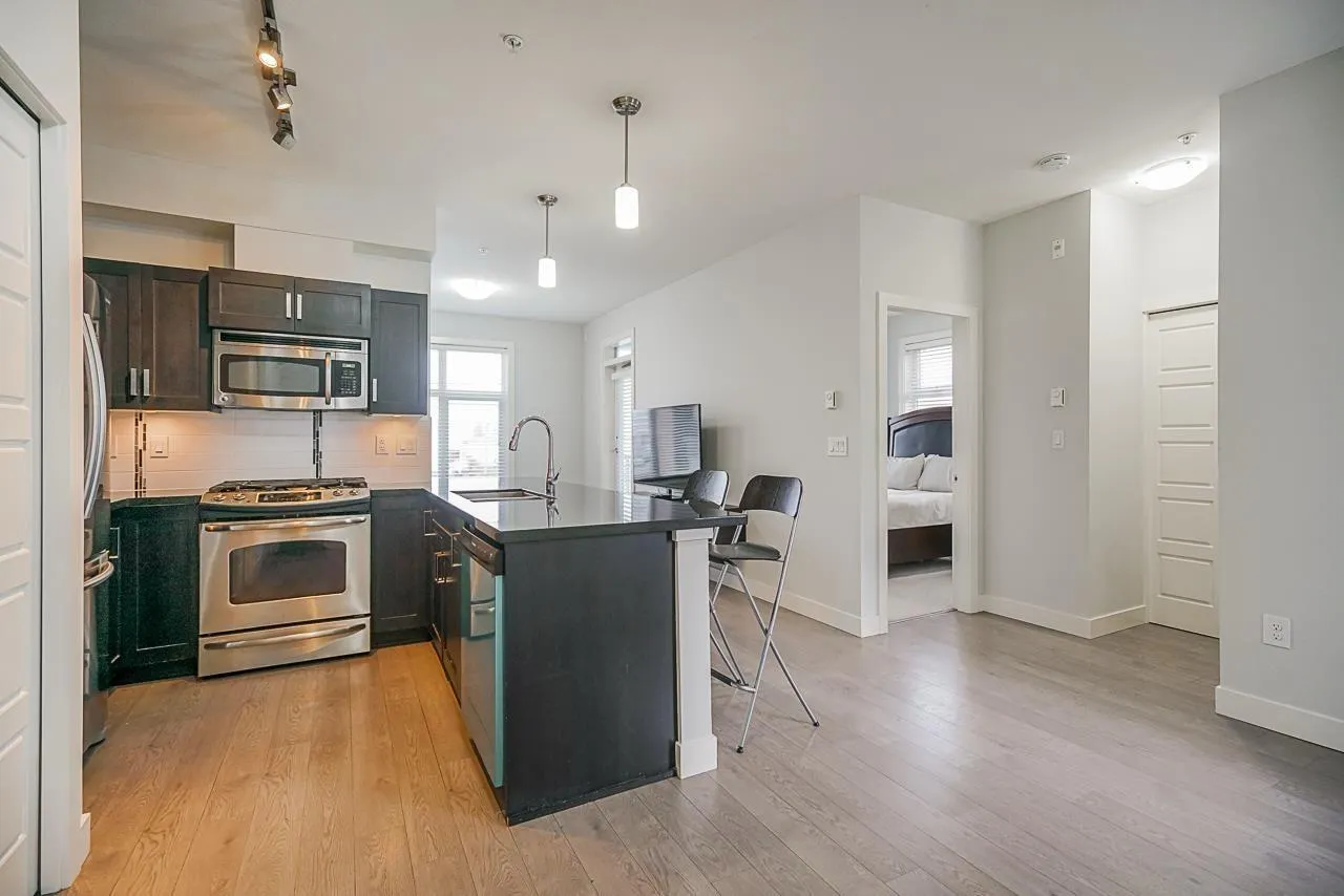 Welcome to Varsity. This beautiful 1-bedroom, 1-bathroom corner residence features 9-foot ceilings and large windows that fill the home with natural light. The modern open concept kitchen offers a breakfast bar, gas range, and stainless steel appliances. Ideally located near transit, shopping at Willowbrook Shopping Centre, Costco, and Superstore, plus parks, restaurants, and the future SkyTrain expansion. An ideal choice for first-time buyers, downsizers, or investors seeking exceptional value in a desirable and well-connected neighbourhood. (id:27476)