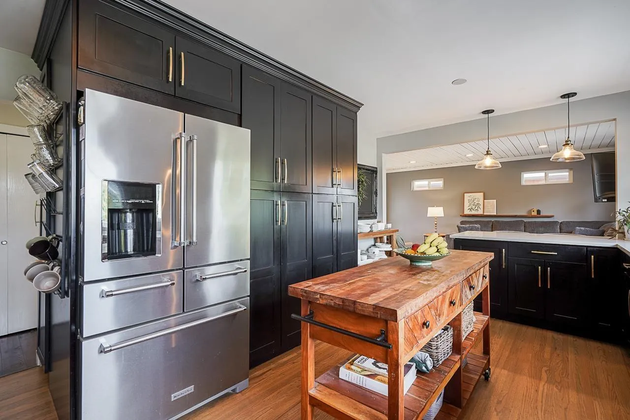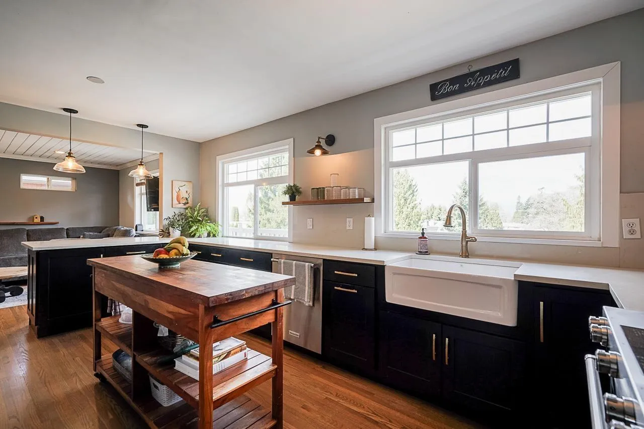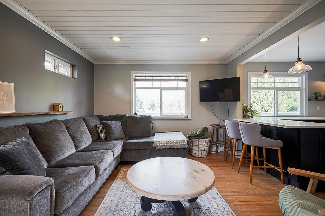 Beautifully updated Walnut Grove home offering space, style, and income potential! This 5 bed, 3 full bath home sits on a rare 10,000+ sq.ft. south-facing lot. Features a modern kitchen with quartz countertops, gas stove, and stainless steel appliances. Stay comfortable year-round with split A/C. Bright 2-bedroom basement suite with private entry and patio, plus side-by-side laundry and a bonus cold storage room. Enjoy the massive 970 sq.ft. south-facing patio and private deck perfect for entertaining. RV parking built with permits, 8 total parking spots, fibre optic connectivity, and mountain views from upstairs complete this exceptional property. (id:27476)