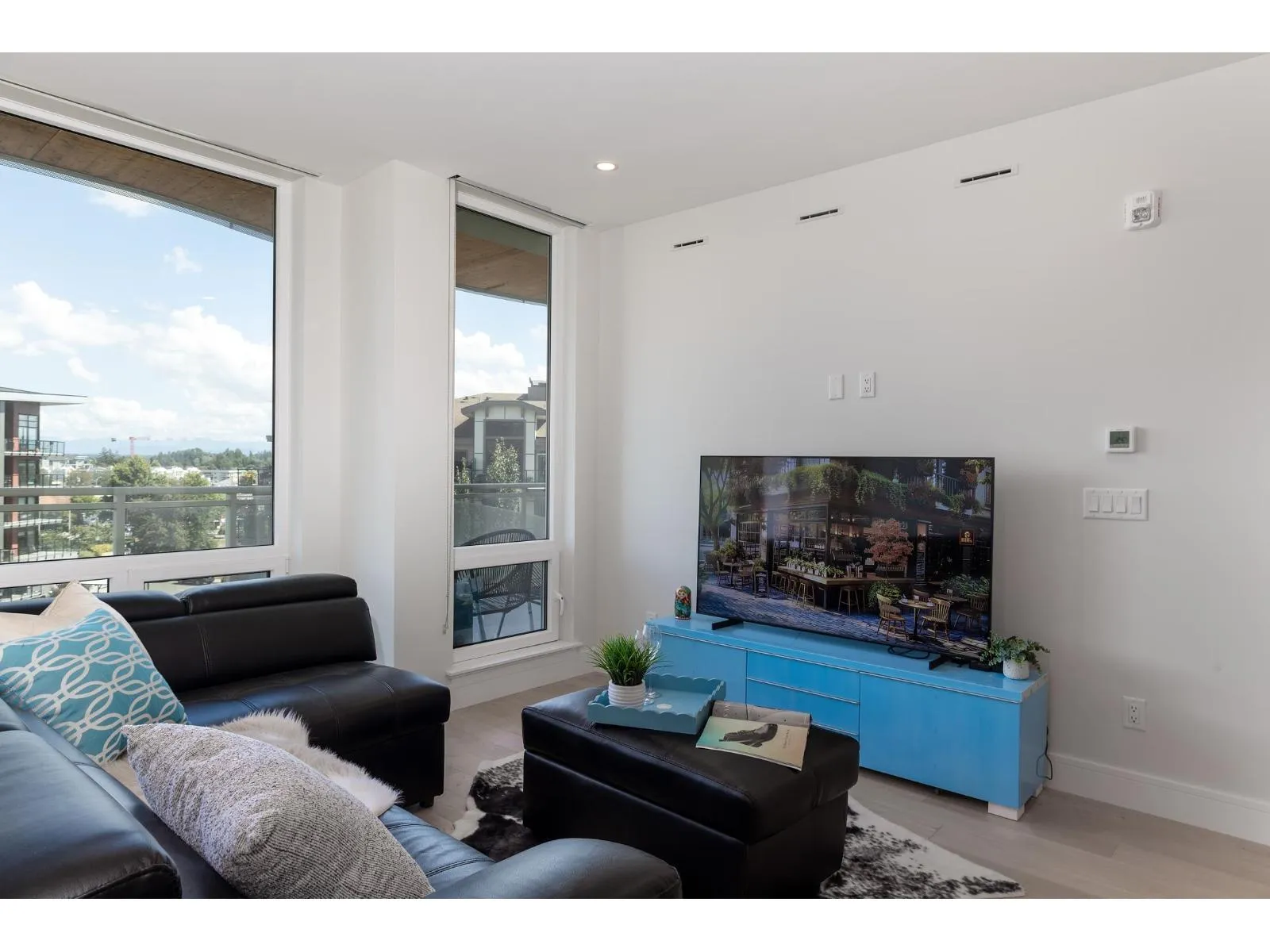 Luxurious sub-penthouse at Legacy On Park Avenue! This stunning 54' wide home features floor-to-ceiling windows showcasing beautiful mountain views and a 331 sq. ft. deck spanning the entire width. Unique curved architecture, durable aluminum & tile exterior, and mass timber low-carbon construction ensure timeless quality. Features 3 bedrooms + den with a walk-in closet (can be used as a 4th bedroom), ducted heating & air conditioning, Fisher & Paykel built-in appliances, Caesarstone countertops, and 3/4" oak hardwood flooring throughout. Amenities include concierge, fitness centre, Grand Lounge, and EV charging. Includes 2 parking & 1 locker. Half a block to shopping and community centre, and only 8-minute walk to the future SkyTrain station. (id:27476)