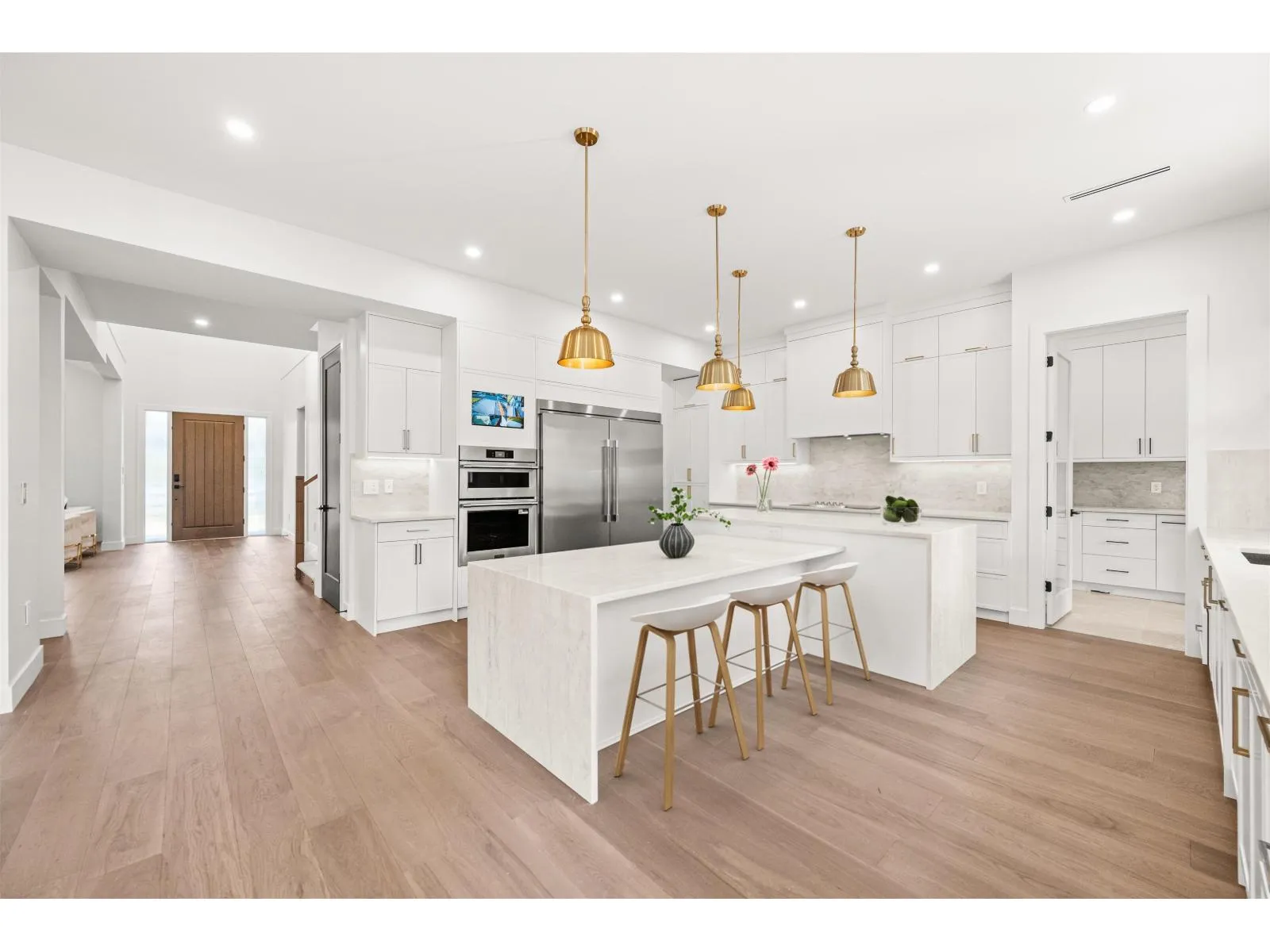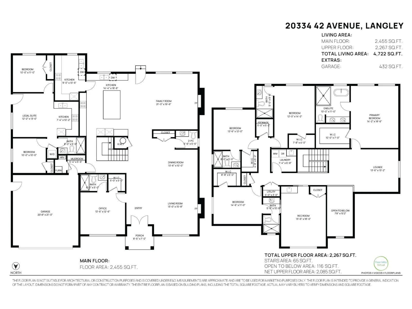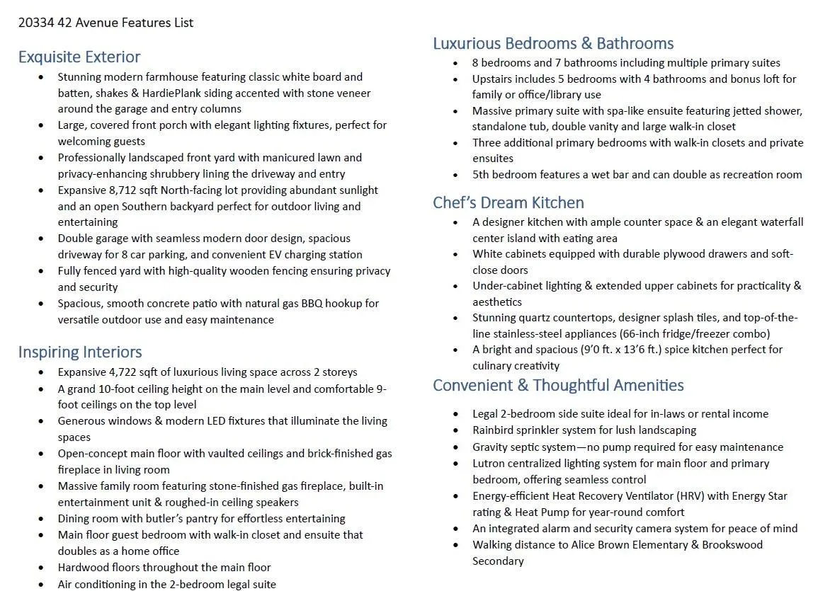 Stunning modern farmhouse in sought-after Brookswood, 4,722 sqft of refined living, 7 beds & 7 baths on a gorgeous 8,712 sqft south-facing lot. Elegant open-concept layout w/soaring vaulted ceilings & gas F/P in living room, sophisticated dining room w/butler's pantry, & expansive family room w/gas F/P & custom built-in entertainment unit. Gourmet kitchen boasts quartz countertops, 66" fridge/freezer, dramatic waterfall island w/eating bar, abundant cabinetry & full spice kitchen. Main floor bed w/walk-in closet & ensuite doubles as a private home office. Upstairs showcases 4 beds & 4 baths: lavish primary suite w/oversized walk-in & spa ensuite w/jetted shower & soaker tub, 3 beds w/walk-in closets & ensuites, plus massive rec room w/wet bar & bonus loft. Legal 2-bed air-conditioned side suite, heat pump, sprinkler system, hardwood floors & parking for 8! Walk to schools & parks! Seller open to considering property trades as part of the transaction. Open House: Saturday (April 4) from 2-4PM! (id:27476)
