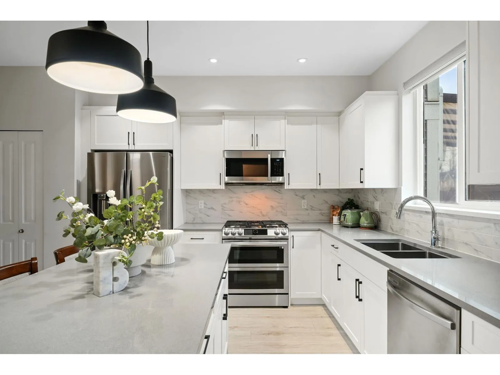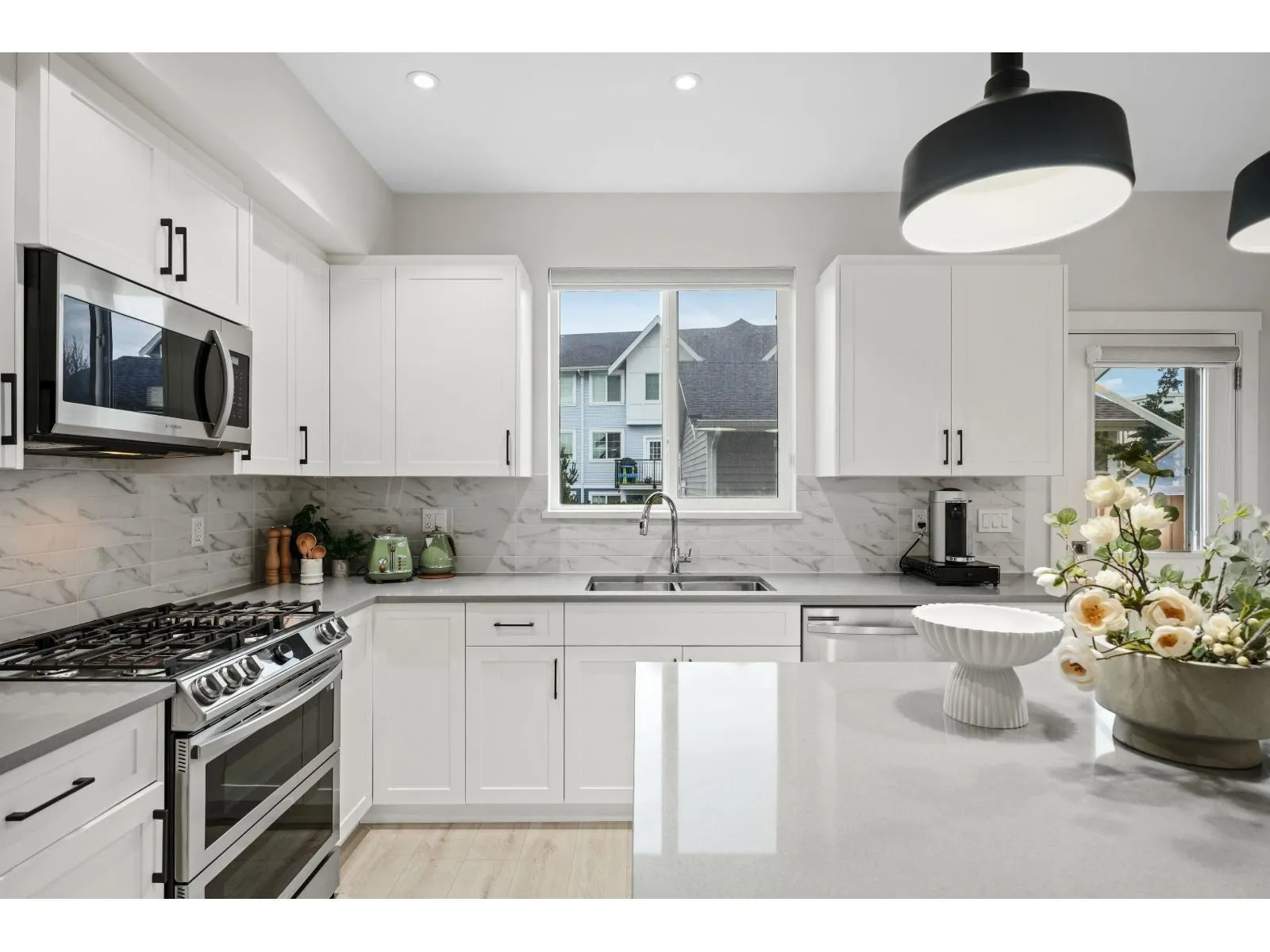 CENTRAL LOCATION! NON-STRATA ROWHOME in the heart of Willoughby by award-winning Latimer. This well-maintained family home boasts park views, a sun-filled south-facing porch, and excellent privacy with generous rear setback. Featuring a functional layout with 4 bedrooms, 3.5 bathrooms, and a fully finished basement, the home includes an open-concept main floor with a chef-inspired kitchen, stainless steel appliances, and oversized windows for abundant natural light. The lower level provides a spacious recreation area, while the private patio and generous garden offer ideal outdoor living and gardening space. Located in a quiet, friendly community close to top schools, Langley Events Centre, Carvolth Exchange, Highway 1, parks, and transit. Detached garage with extra parking pad. (id:27476)