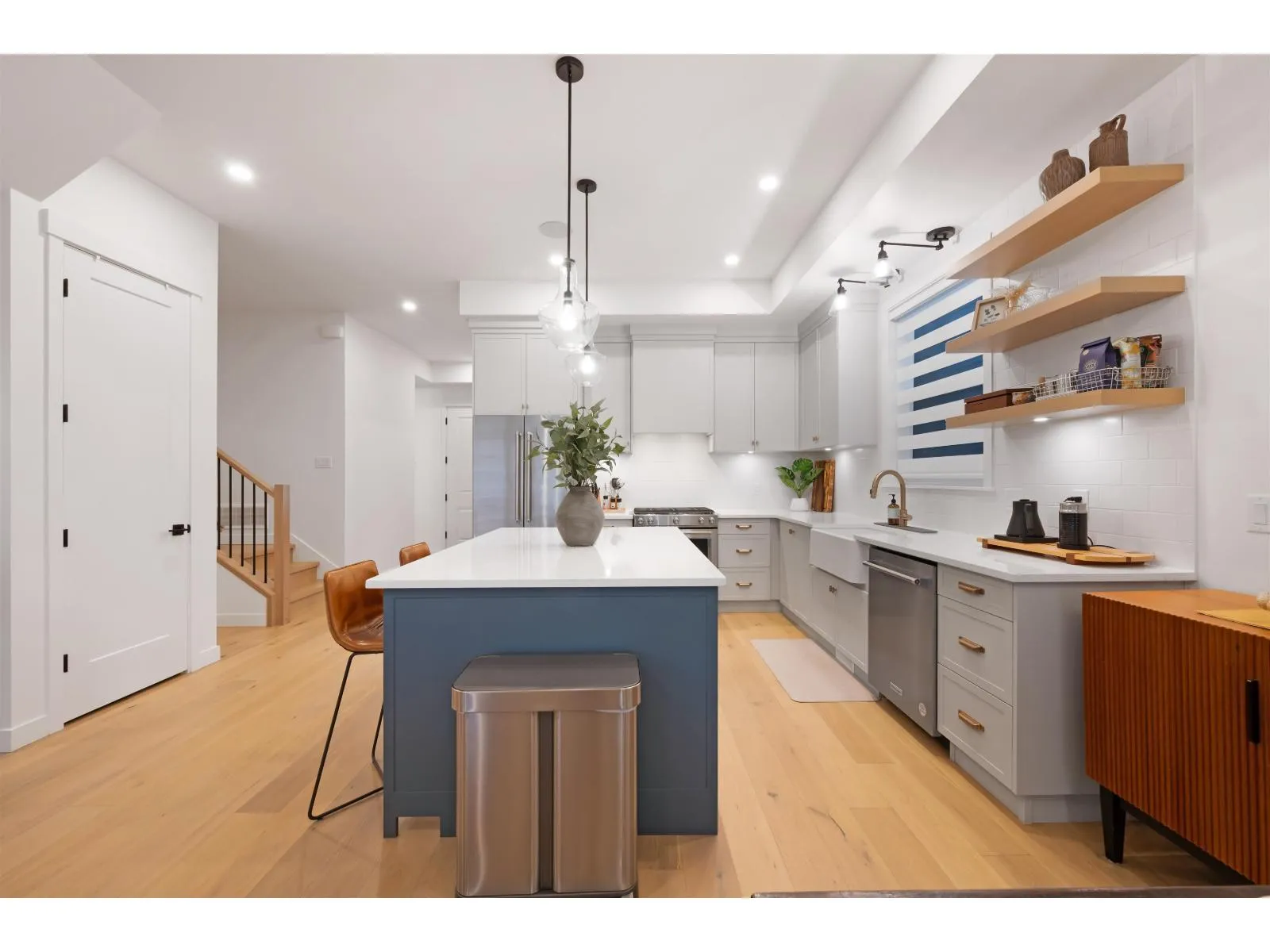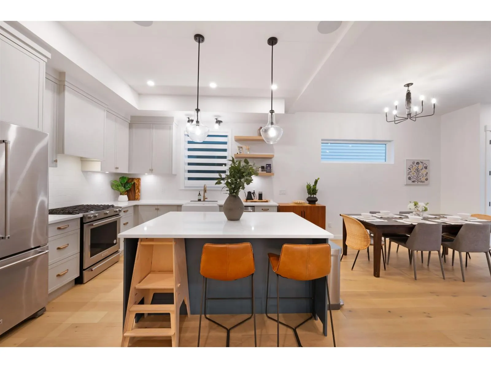 Get all upgrades in a home that looks brand new without paying GST! This like-new 5-bed & 3.5 bath residence, which includes a VACANT legal 2-bed rental suite. Located in desirable "Roots" built by reputable BENCHMARK HOMES, this amazing family home offers all upgrades including: 8 speaker SONOS sound package | FULL HARDWOOD FLOORING throughout (no allergies!) | NuHeat bathroom floors | A/C | EV-charger & more! The main floor's 10' ceilings & fantastic layout highlight the designer kitchen & large living room w/ cozy gas f/p. The extra flex space/room on the main level works well as a WFH office, den or reading room depending on your wishes. Top floor shows even better since the current residents primarily use the master suite so 2 beds & the main bathroom are virtually new! (id:27476)