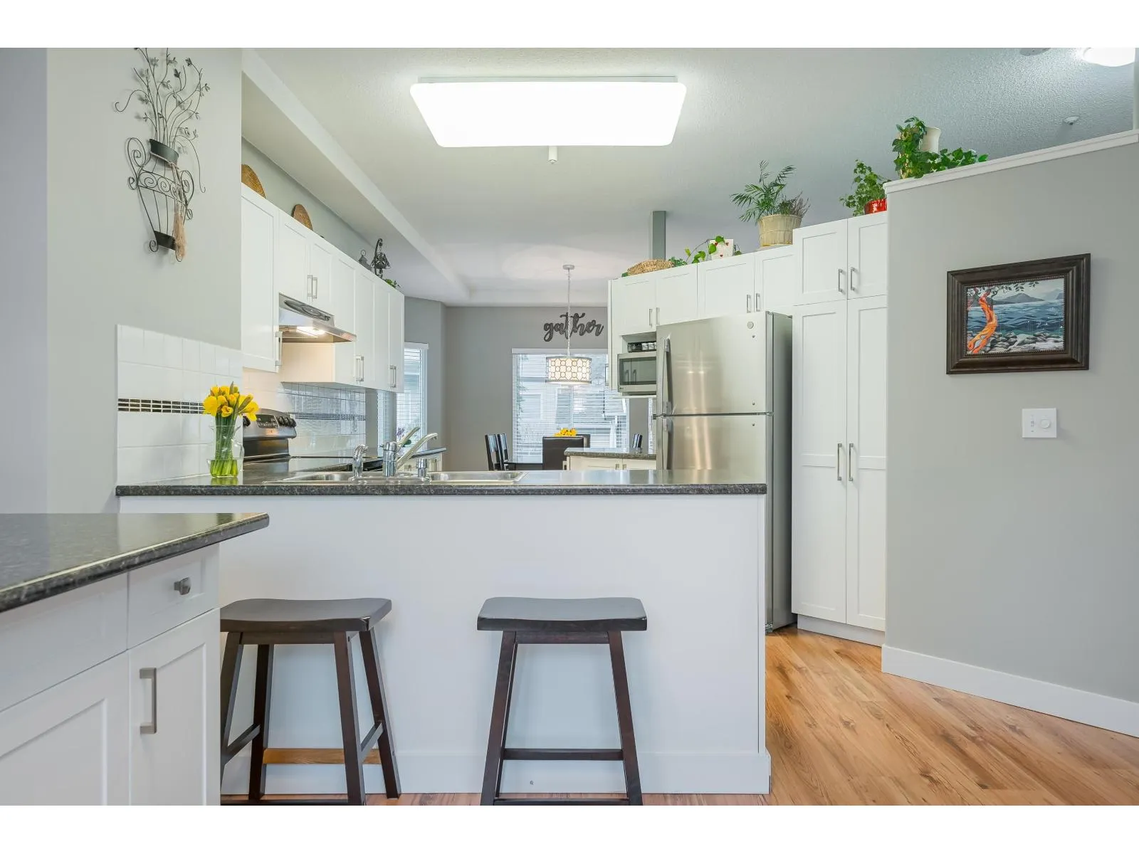 3 LEVEL TOWNHOUSE in Walnut Grove's Heritage Glen! 2117 sqft END UNIT. Exceptional living on three floors, with bright living room, 2 gas fireplaces and adjoining dining area. Updated w/gorgeous flooring and fresh paint throughout the home. Amazing open kitchen & family room w/ large movable Island! 3 bedrooms up incl. huge soaker tub & new shower in Primary ensuite w/ dble sinks & massive walk in closet. Bsmt has 4th bdrm or rec room/office/gym & bathroom! Plus - under stairs storage! NEW Side x Side garage doors and motors w/space for kayaks! New A/C & window screens 2023. NO POLY B, Pet friendly (any size). Great convenient location w/ courtyard. Easy commuting, walk to Community Centre, Pool, schools, parks, shopping! A MUST SEE! **OPEN HOUSE SAT 4th 2:30-4:30PM!** (id:27476)