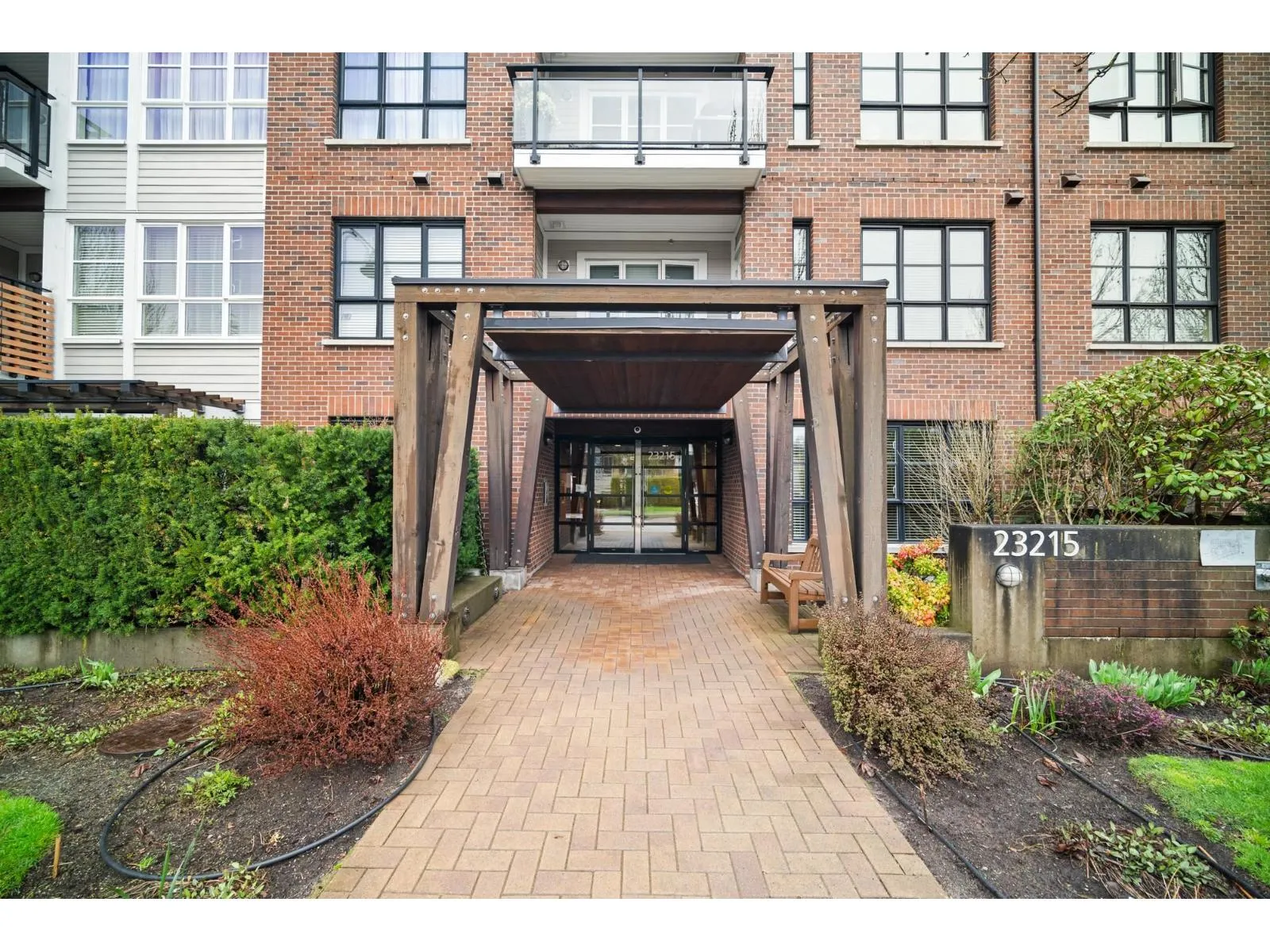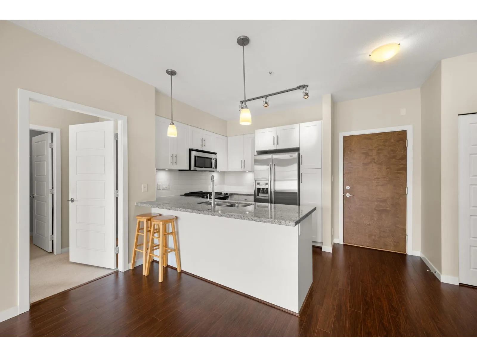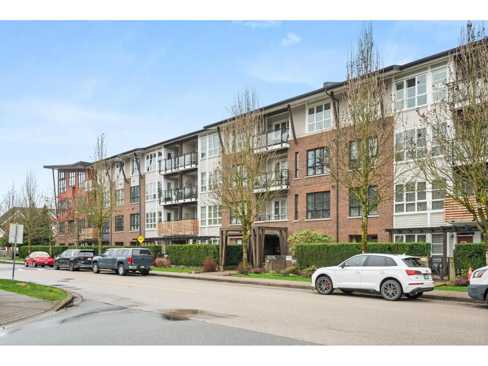 Award winning Bedford Landing. Only 2 bdrm unit available in the 55+ building offering a rare, west exposure! Original owner and in new near condition. Stainless steel appliance package. Kitchen area overlooks living and dining areas, with ample cupboard space and granite counters with an eating bar. Secured underground parking with two spaces and a convenient storage locker across the hall. Common area offers fitness area and meeting room. Location is ideal, walking distance to all that Fort Langley has to offer. (id:27476)
