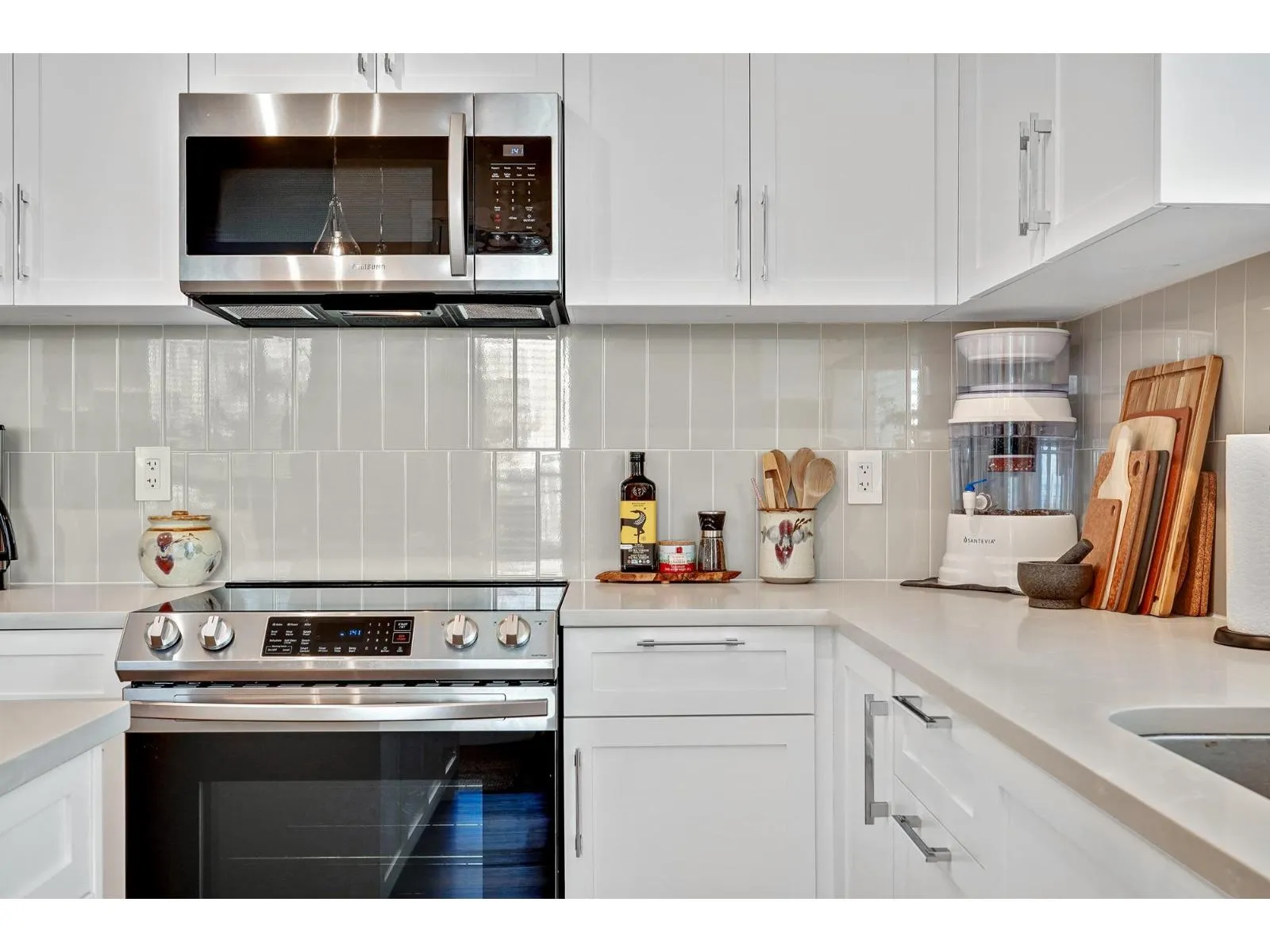 Welcome to the DOG LOVERS DREAM! 2 dogs/2 cats with NO SIZE RESTRICTION! Ground floor, corner unit 2 bed/2bath with large patio and direct street access! 2 side by side underground parking spaces, bike storage, lots of visitor and street parking! Huge bright, meticulous kitchen with a very large pantry, tons of counter space plus island. Large entry hall with a big closet for coats and shoes. Primary bedroom has a walk-in closet and ensuite with double sinks & large shower. 2nd bedroom is located across the apartment and has a large closet, big window plus the second full bathroom (tub/shower combo) is across the hall. Energy efficient Heat pump with 3 heads keeps this home cool in summer and cozy in winter. Laminate flooring throughout main areas, bathrooms have tiled floors. MUST SEE! (id:27476)