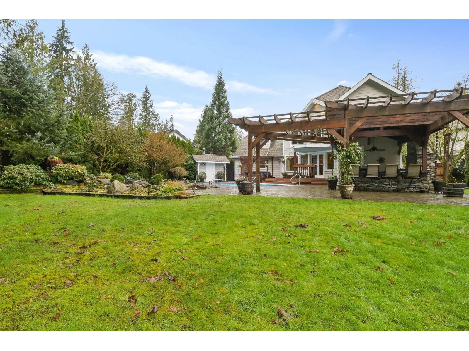 Tucked away on a quiet cul-de-sac in Langley's sought-after Yeomans Creek neighbourhood, this beautifully updated 5-bedroom, 4-bathroom home offers over 4,500 sq ft of refined living space. The open-concept great room and kitchen create a warm, inviting hub perfect for family life and entertaining. Step outside to a private, professionally landscaped backyard featuring a pool, hot tub, covered gazebo, and outdoor kitchen-your own resort-style retreat. A substantial three-storey addition and extensive 2010 upgrades enhance both style and functionality. (Extensive list of upgrades available on request). Enjoy the perfect blend of space, comfort, and privacy, just a 3-minute drive to historic Fort Langley. Note Pbdrm and Family room pics Virtually Staged. (id:27476)