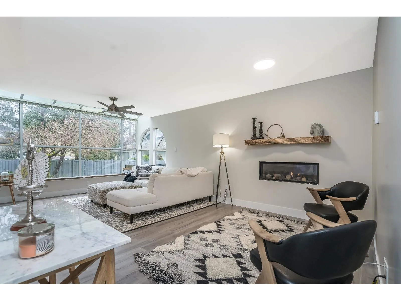 Located in sought after Murrayville, this rarely available ground level, 2 bdrm + den, 2 bath gorgeously renovated townhome. Spacious living room w/gas fireplace, huge atrium bay window w/view of quiet greenspace. Elegant dining room w/ sliding door onto your private patio (has been approved for fencing). Covered parking. Bright kitchen, loads of counter space & new appliances, opens to dining room for effortless entertaining. Oversized Primary Bedroom is perfect oasis w/ luxury ensuite, built in custom double closets & big bay window. Huge laundry, tons of storage inc crawlspace, den for office/movie room or additional bedroom? 2nd large front bedroom & full bathroom complete this gem. Blocks to restaurants/coffee/hospital/recreation this one won't last! Open house Sat April 4th 1 to 4pm (id:27476)