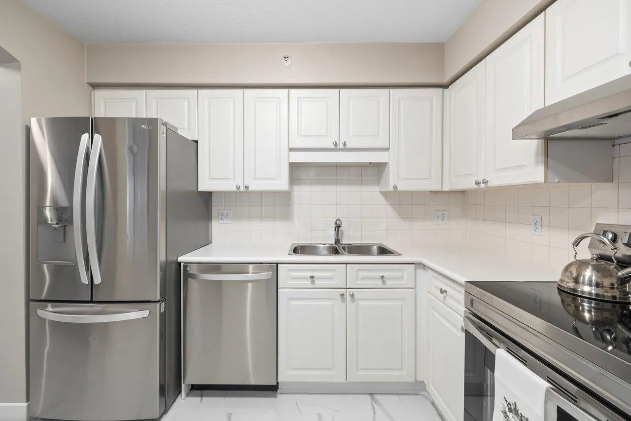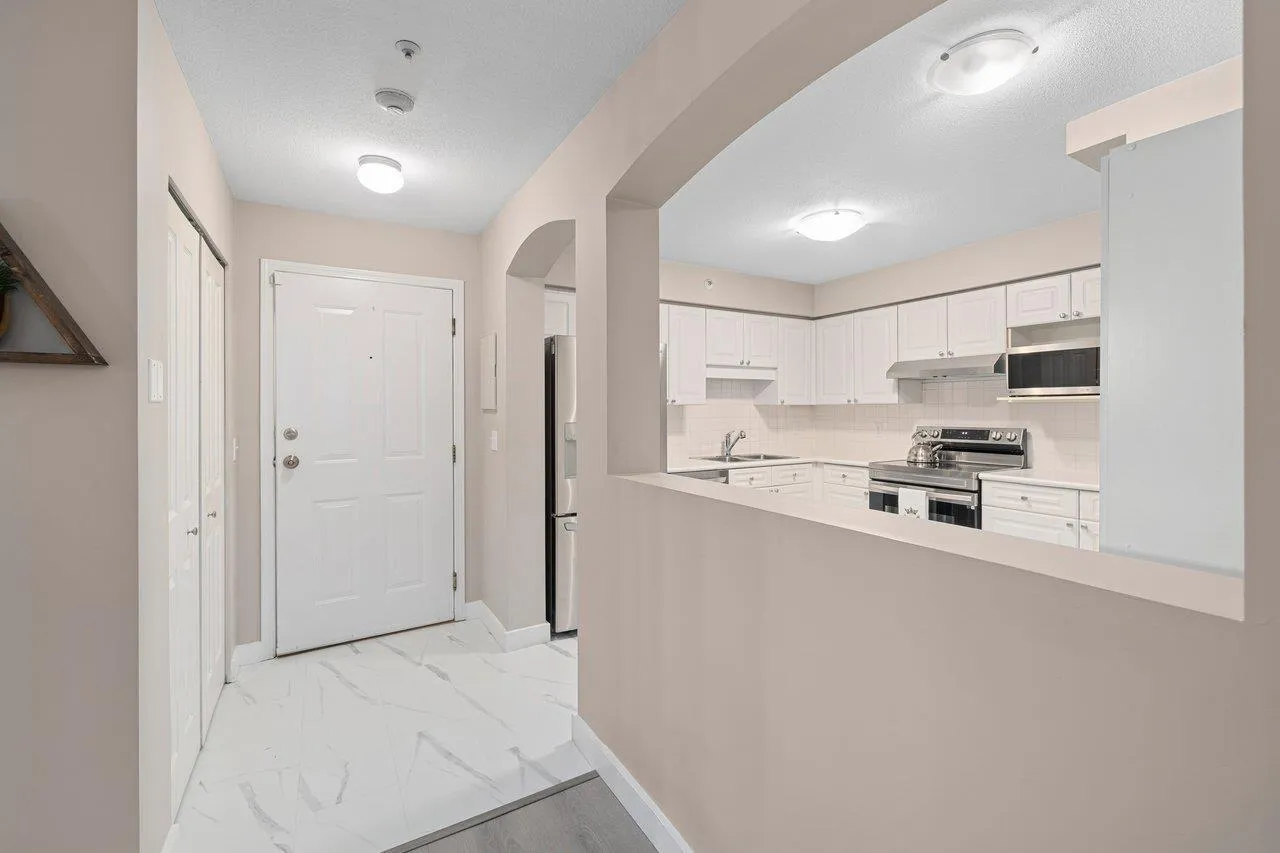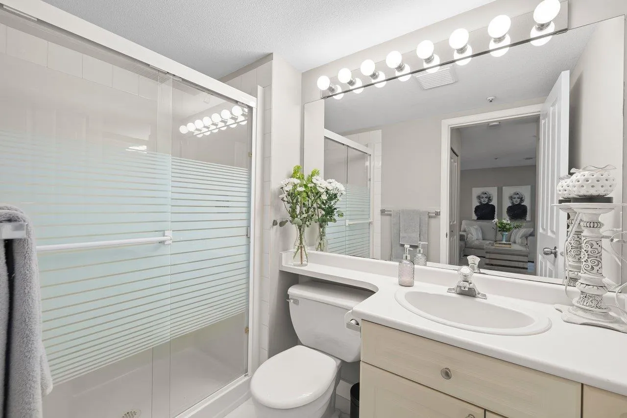 Gorgeous 2 bed,2 bath,1064 sq ft condo has 2 south facing balcony's to take in the beautifully landscaped surroundings. Features include an open floor plan w/cozy gas fireplace & bright kitchen finished w/SS appliances. Ideal layout with bedrooms on opposite sides and a living & dining room in between. Primary bedroom has a large walk in closet, additional closet, sitting area or office area & it's own sliding door to a private patio. Well maintained building has a new exterior including high efficiency windows & refinished decks. In suite laundry,1 Storage,1 parking with additional gated 1st come basis parking & visitor parking. 1 cat allowed & no dogs allowed. All of this close to shopping, transit, schools & walking paths through local botanical gardens & much more! This is a must see! (id:27476)