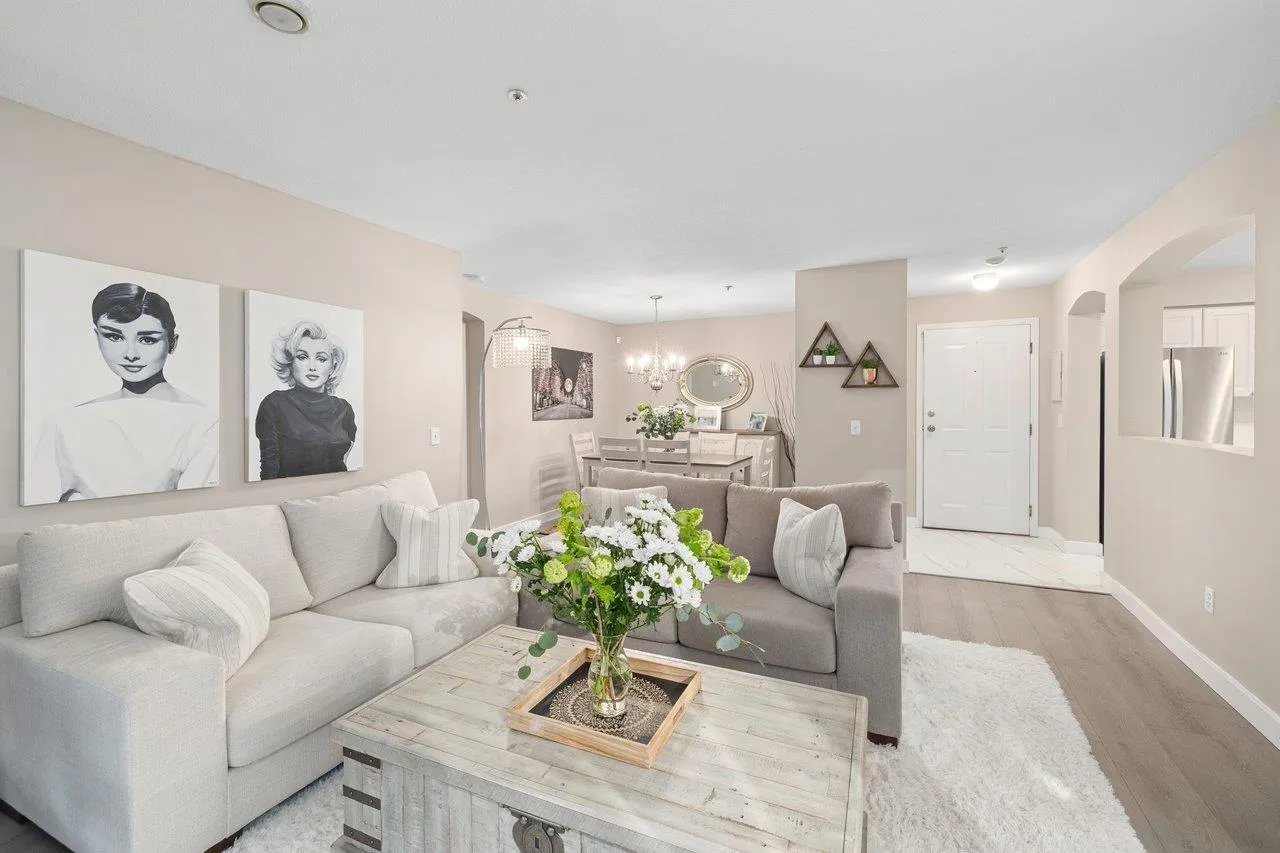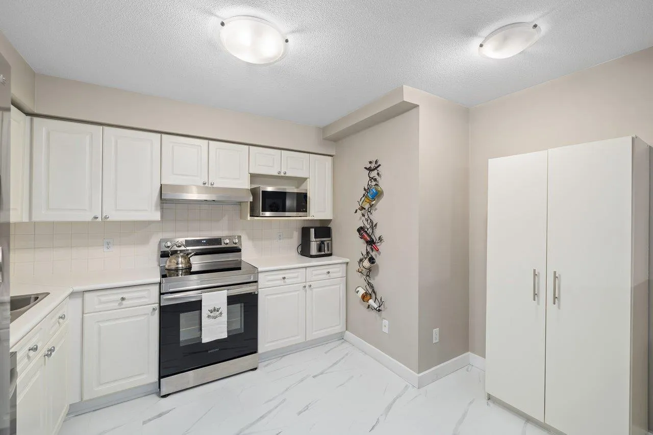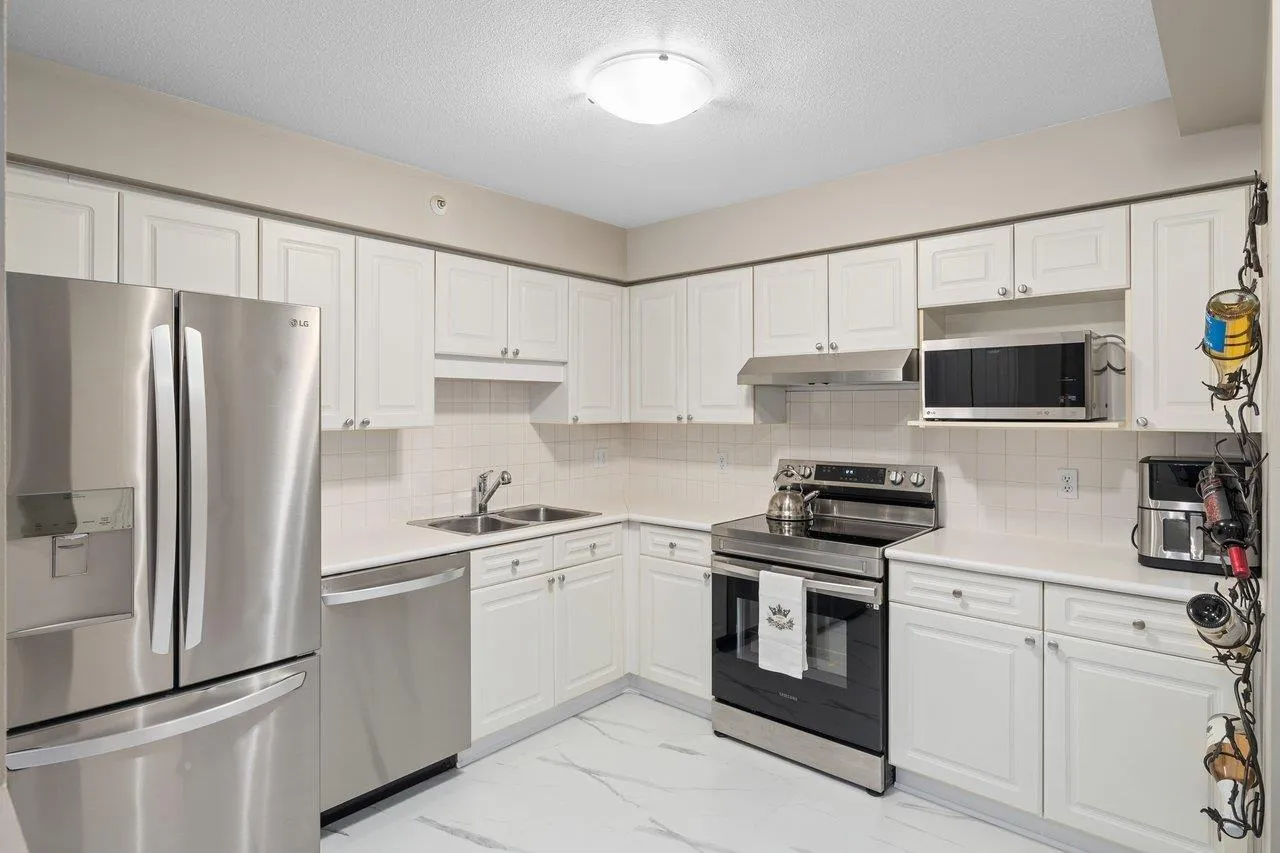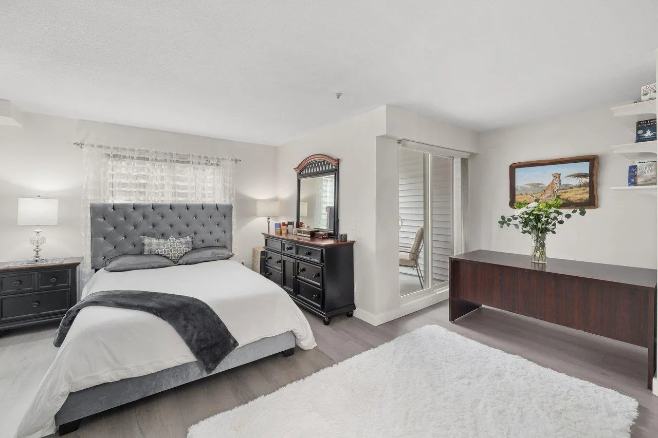 Gorgeous 2 bed,2 bath,1064 sq ft condo has 2 south facing balcony's to take in the beautifully landscaped surroundings. Features include an open floor plan w/cozy gas fireplace & bright kitchen finished w/SS appliances. Ideal layout with bedrooms on opposite sides and a living & dining room in between. Primary bedroom has a large walk in closet, additional closet, sitting area or office area & it's own sliding door to a private patio. Well maintained building has a new exterior including high efficiency windows & refinished decks. In suite laundry,1 Storage,1 parking with additional gated 1st come basis parking & visitor parking. 1 cat allowed & no dogs allowed. All of this close to shopping, transit, schools & walking paths through local botanical gardens & much more! This is a must see! (id:27476)