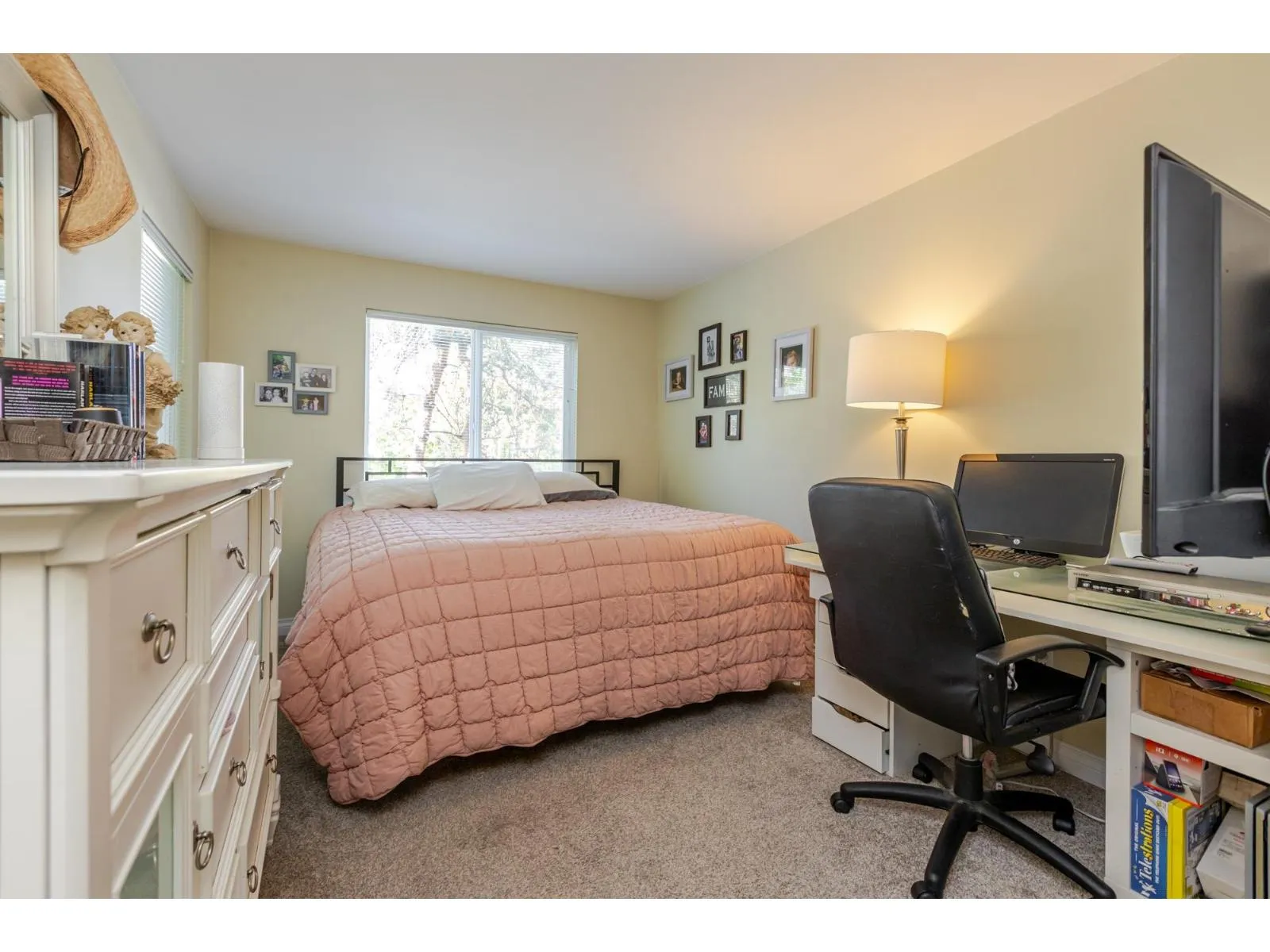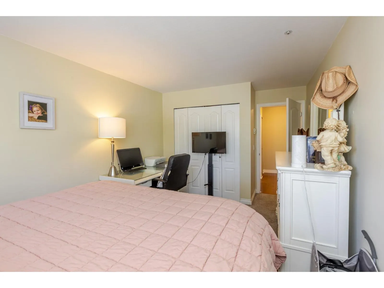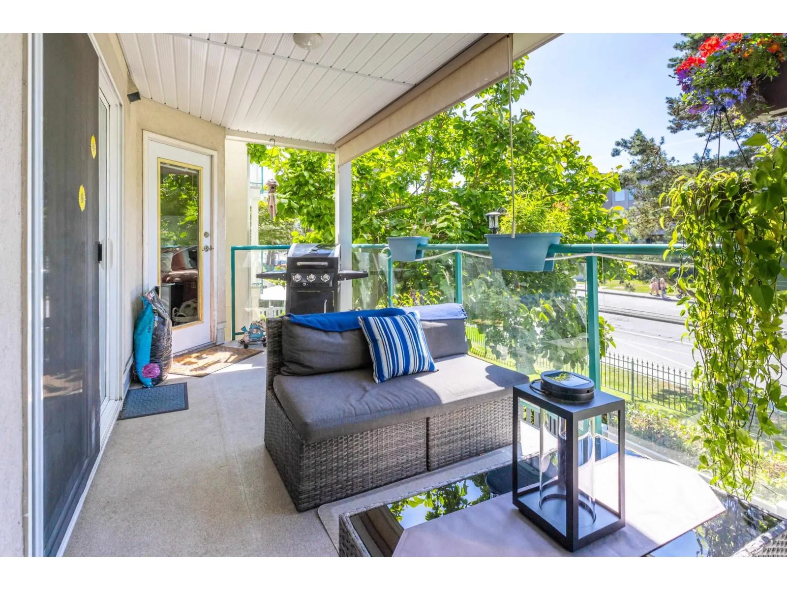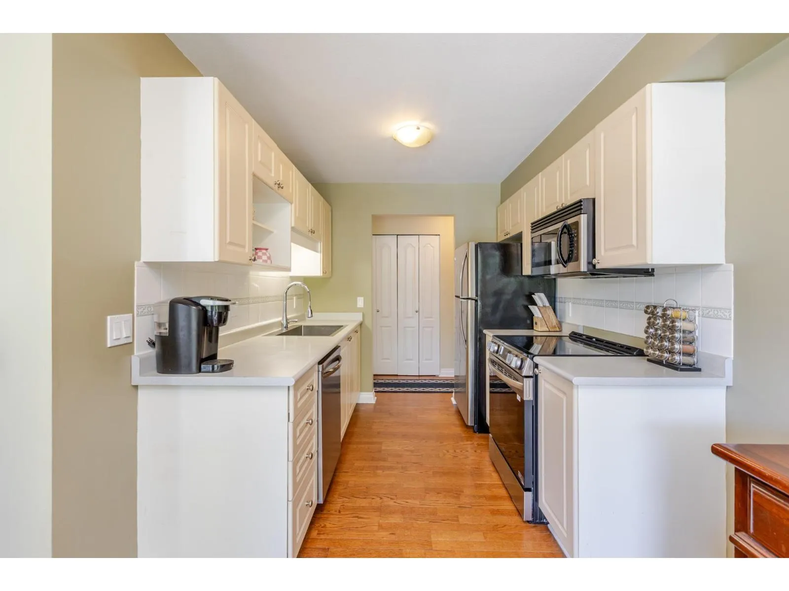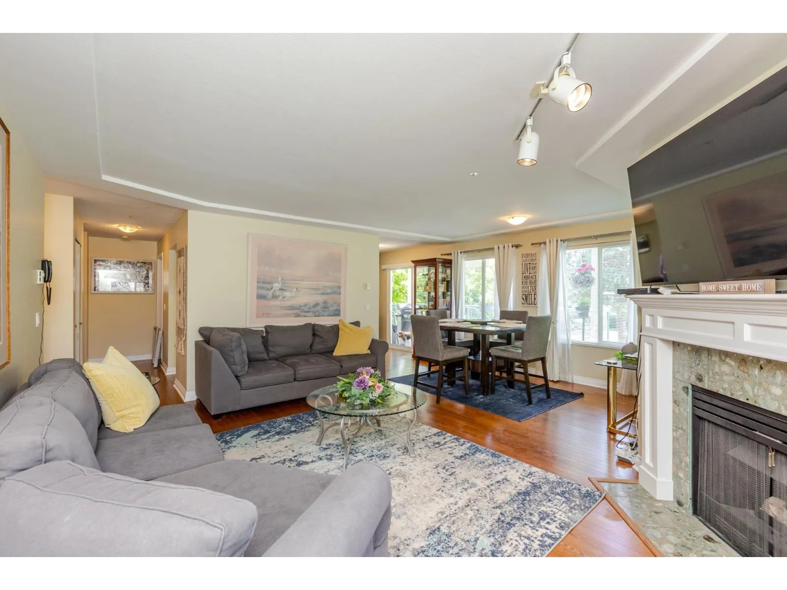 Countryside Estates. Spacious corner unit with generous room sizes and lots of natural light. Great layout with the 2 bedrooms on opposite sides. Nice hardwood floors, good sized walk in laundry room and a large entrance foyer. Spacious primary bedroom with double closets & 4 pce ensuite. Definitely room for a king size bed. Main bathroom has a walk in shower. Cozy corner gas fireplace, lots of windows, updated light fixtures and plenty of storage. Enjoy the outdoors with a large balcony off Primary bedroom and a second balcony off the living room. Shade trees provide coolers decks in summer. Great, well run strata with natural gas and hot water included in maintenance fees. Close to all amenities, parks, schools and transportation. (id:27476)