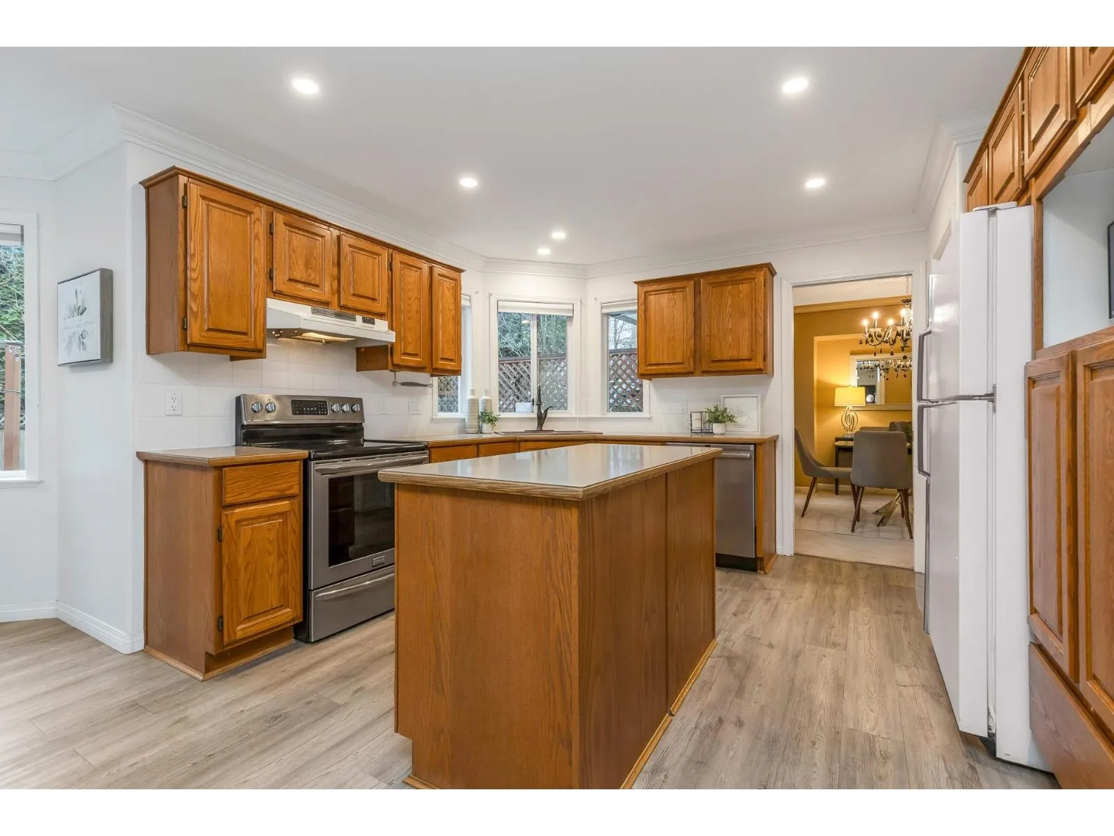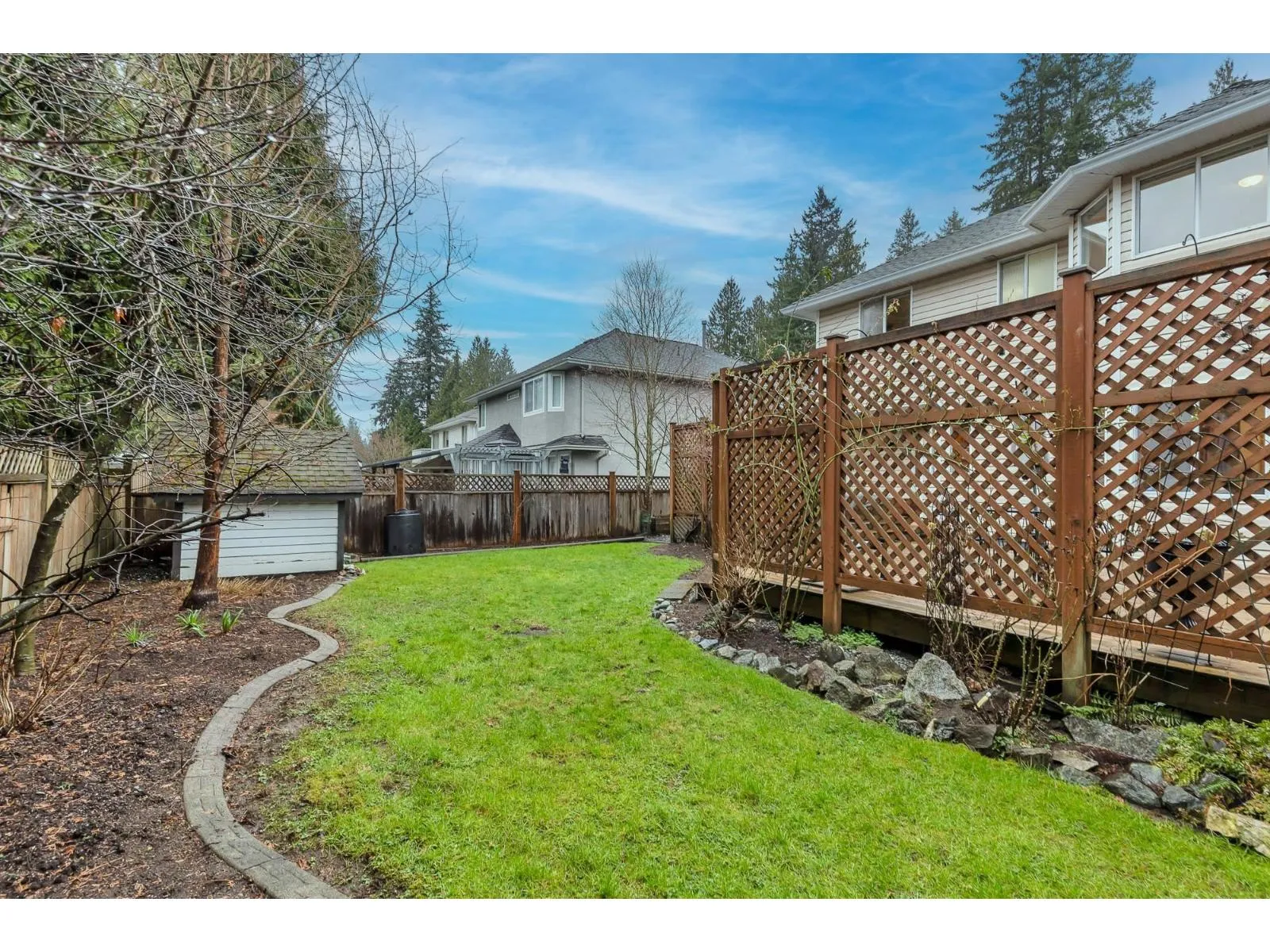 Attractive 2-storey home in prime Walnut Grove location. Main floor features a welcoming living room w/ gas fireplace, vaulted ceilings, & large front window that fills the space with natural light. Adjacent dining room is perfect for hosting. Kitchen w/ oak cabinetry, stainless steel oven & dishwasher, large island, pantry, B/I desk, & eating area. Family room with gas fireplace & sliding door access to backyard with huge partially covered deck, garden beds, & two storage sheds. Main floor also includes a bedroom/den, powder room, & laundry. Upper level offers a generous primary bedroom w/ 4-pce ensuite and walk-in closet, plus two additional bedrooms & a full 4-pce bathroom. Located in a great family neighbourhood close to parks, cafes, shops, schools, & Walnut Grove Community Centre. (id:27476)