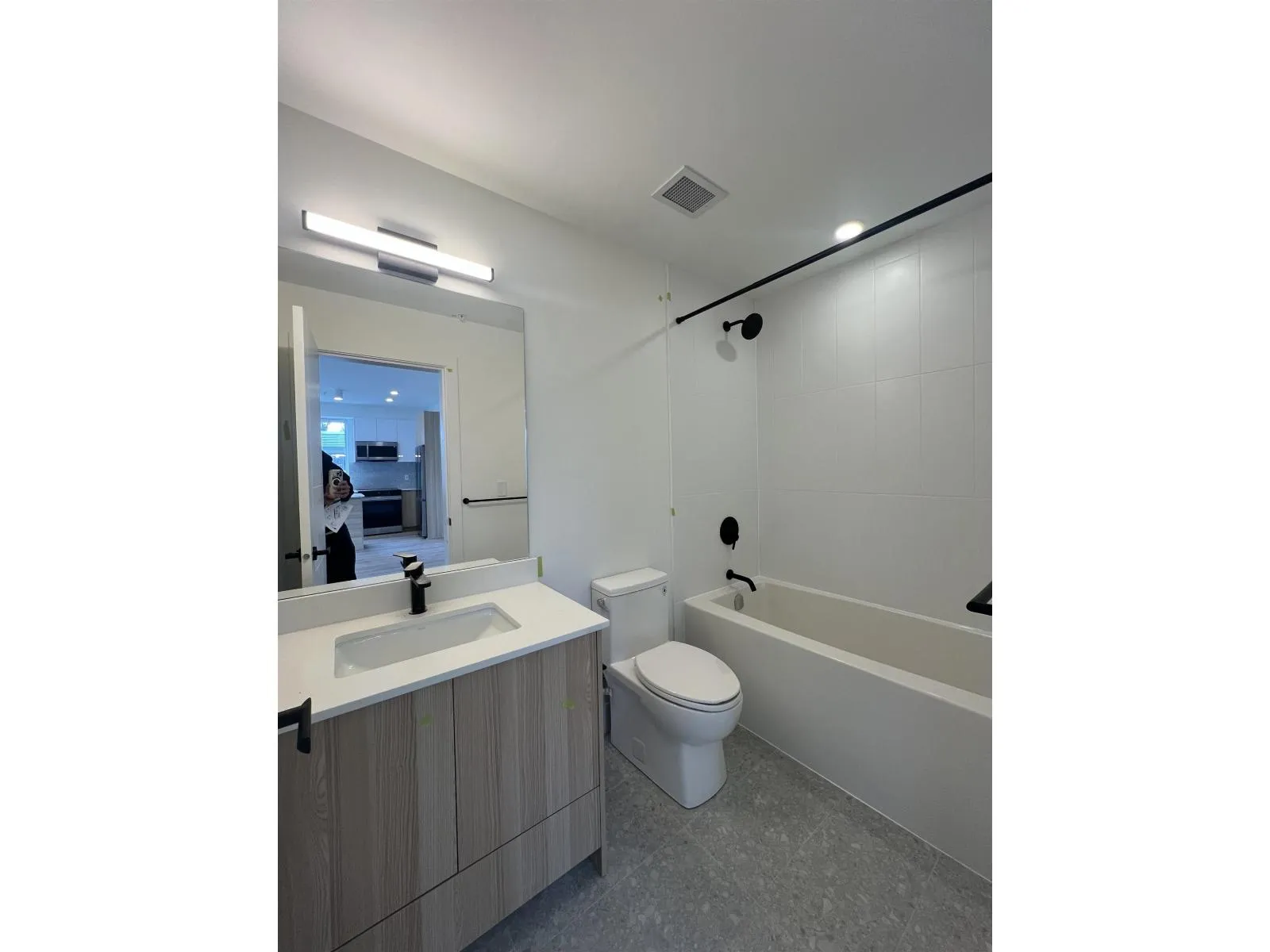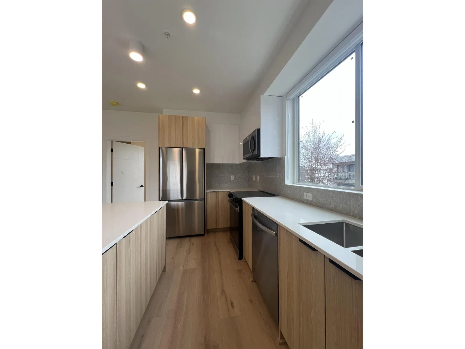 Walk to the future SkyTrain in just 9 minutes. This 2 bed, 2 bath corner unit at Unity South Langley offers outstanding long-term value, with the SkyTrain extension anticipated for 2028-2029 and future access across the Lower Mainland. Bright and airy open-concept layout with abundant natural light and open exposure, ideally situated above commercial space. Features include two-tone cabinetry, natural stone backsplash, and upgraded laminate flooring throughout. Enjoy a large patio perfect for relaxing or entertaining. Premium amenities include a wellness centre, gym, games room/lounge, indoor play area, office hub, and rooftop terrace. Steps to breweries, dining, and shopping. Includes 1 parking and a large storage locker. (id:27476)