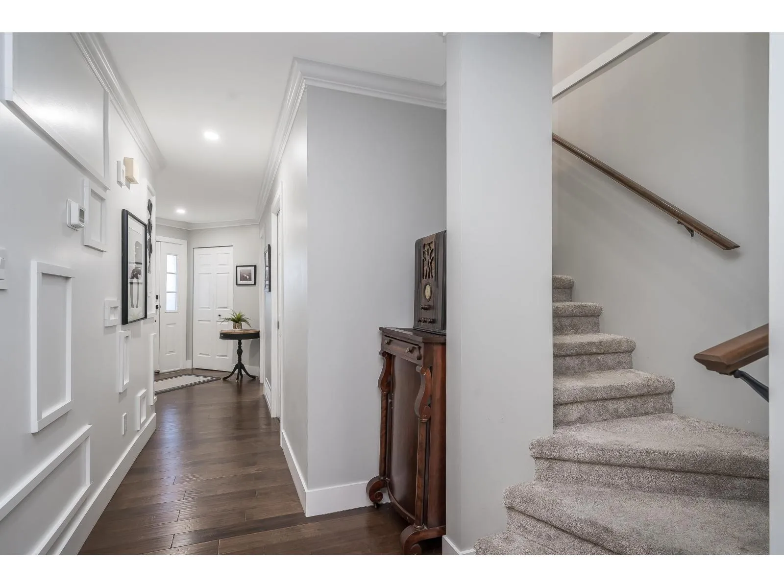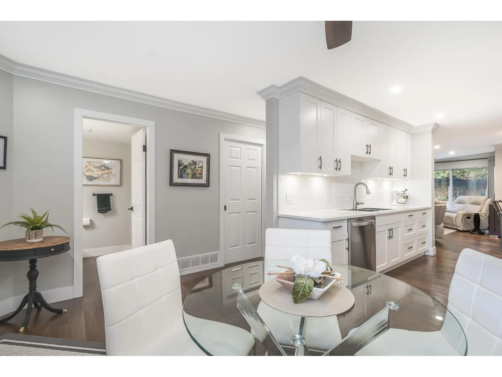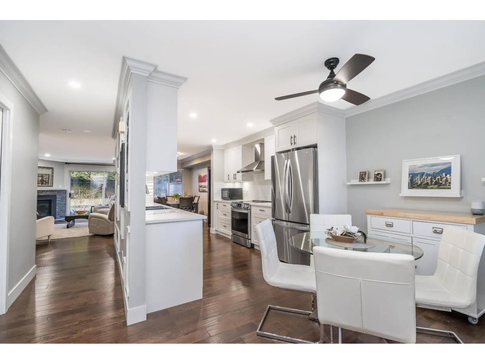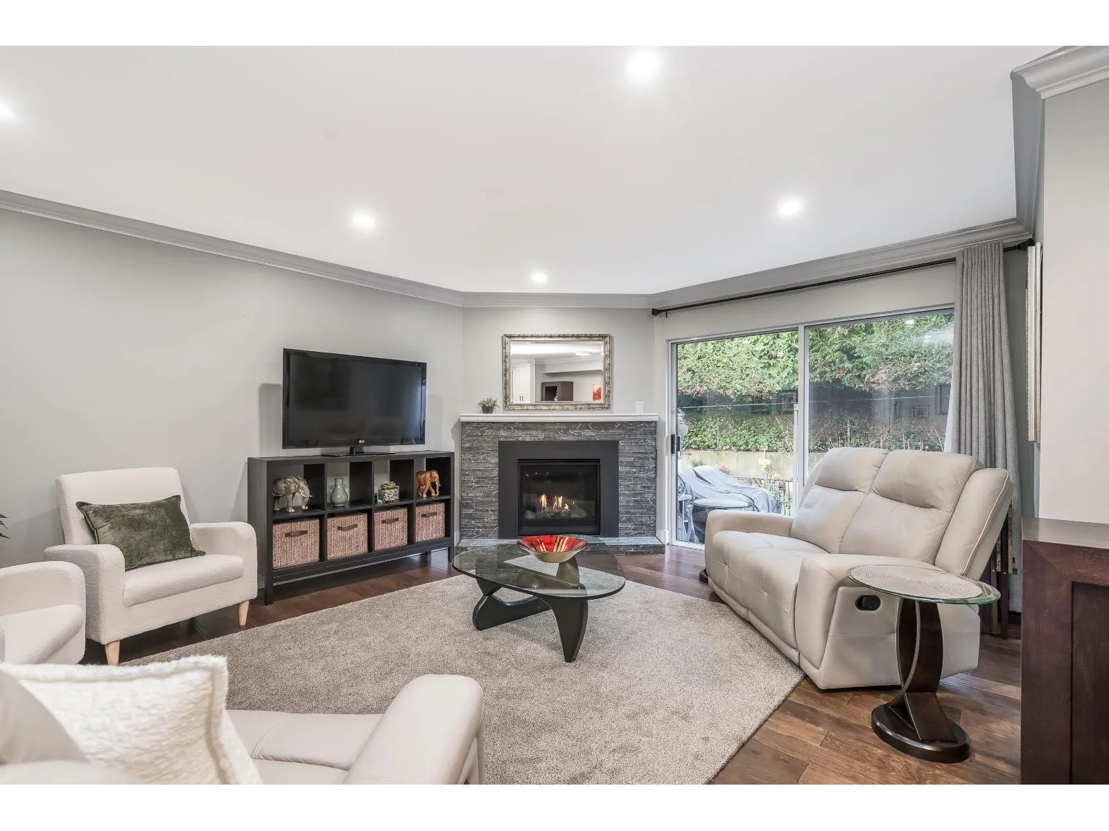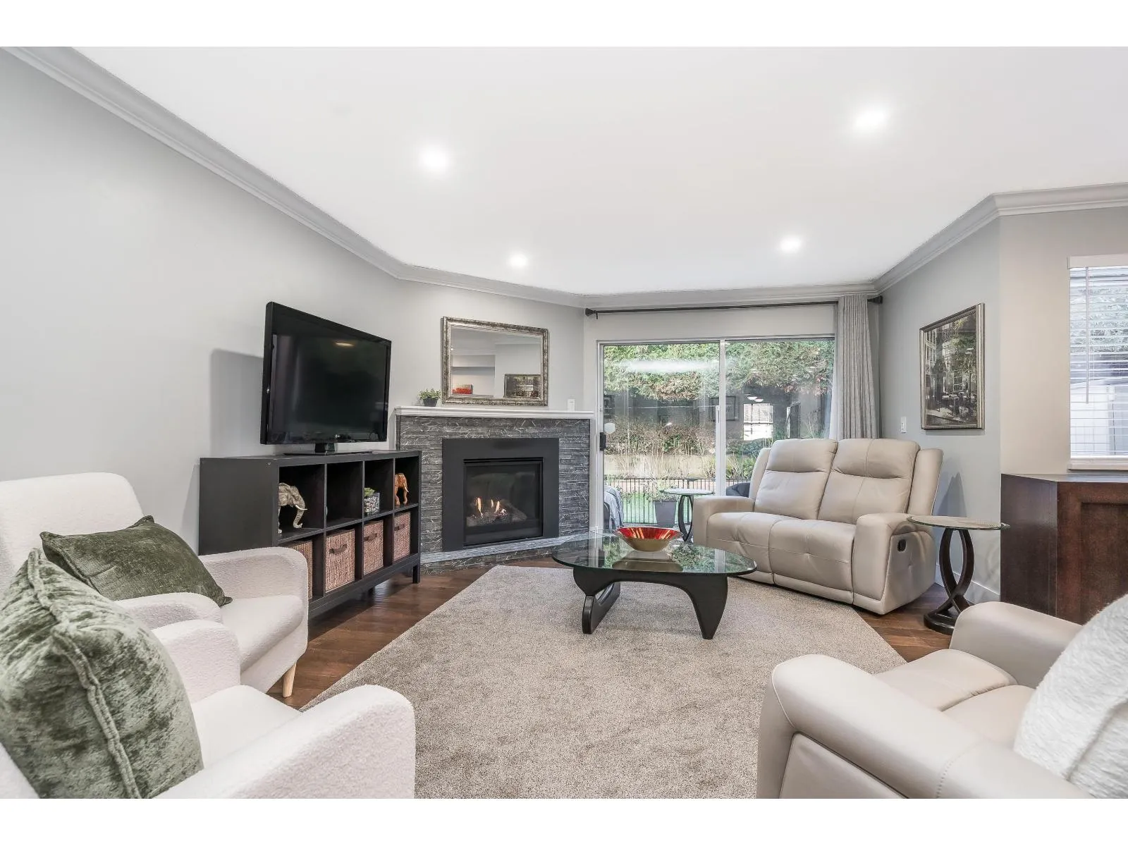 This home has been extensively updated from top to bottom. Main level features hardwood flooring, a classic white kitchen with quartz countertops and new appliances, and a bright living room with a gas fireplace and sliding doors leading to a private yard with a newly poured patio. Upstairs offers a spacious primary bedroom with a beautifully updated ensuite, private sundeck, and new carpeting. All bathrooms have been fully renovated. Major upgrades include PEX plumbing, new furnace, air conditioning, hot water tank, crown mouldings, millwork, lighting, hardware, window coverings, and garage door opener. 1 Dog /Cat Allowed ( no size restriction ) 55 + Complex Open house Saturday April 4 1-4 PM (id:27476)