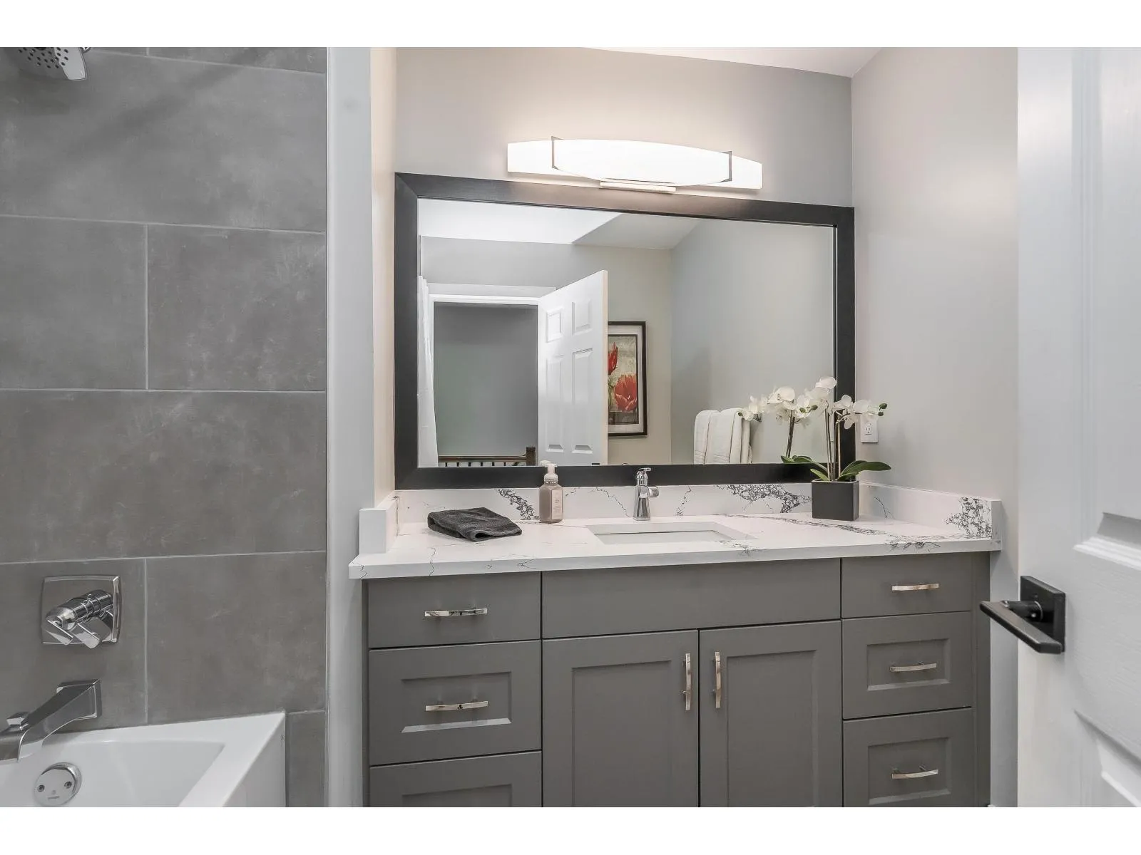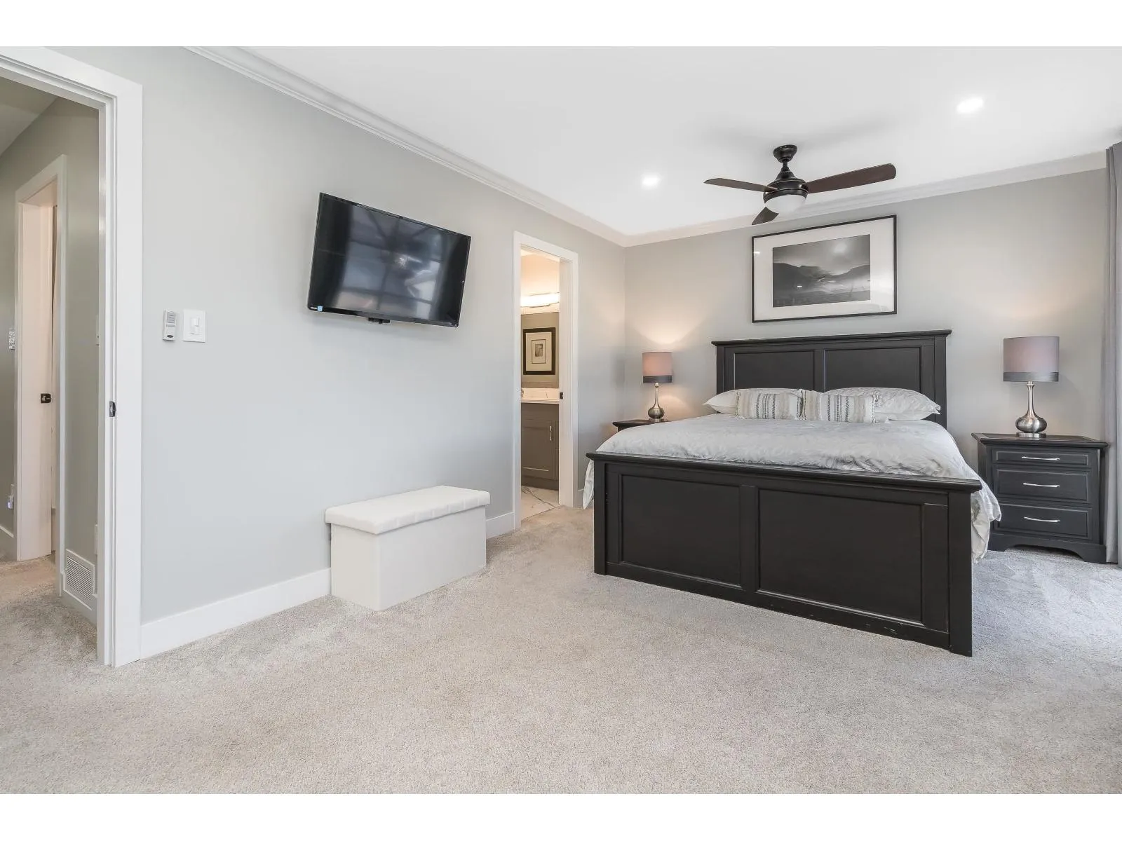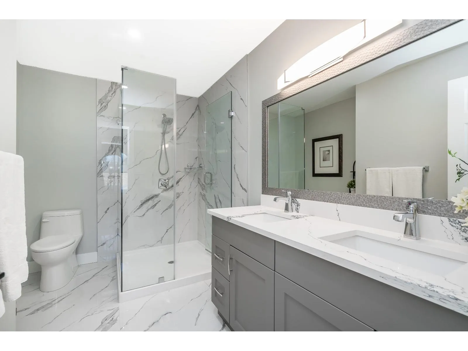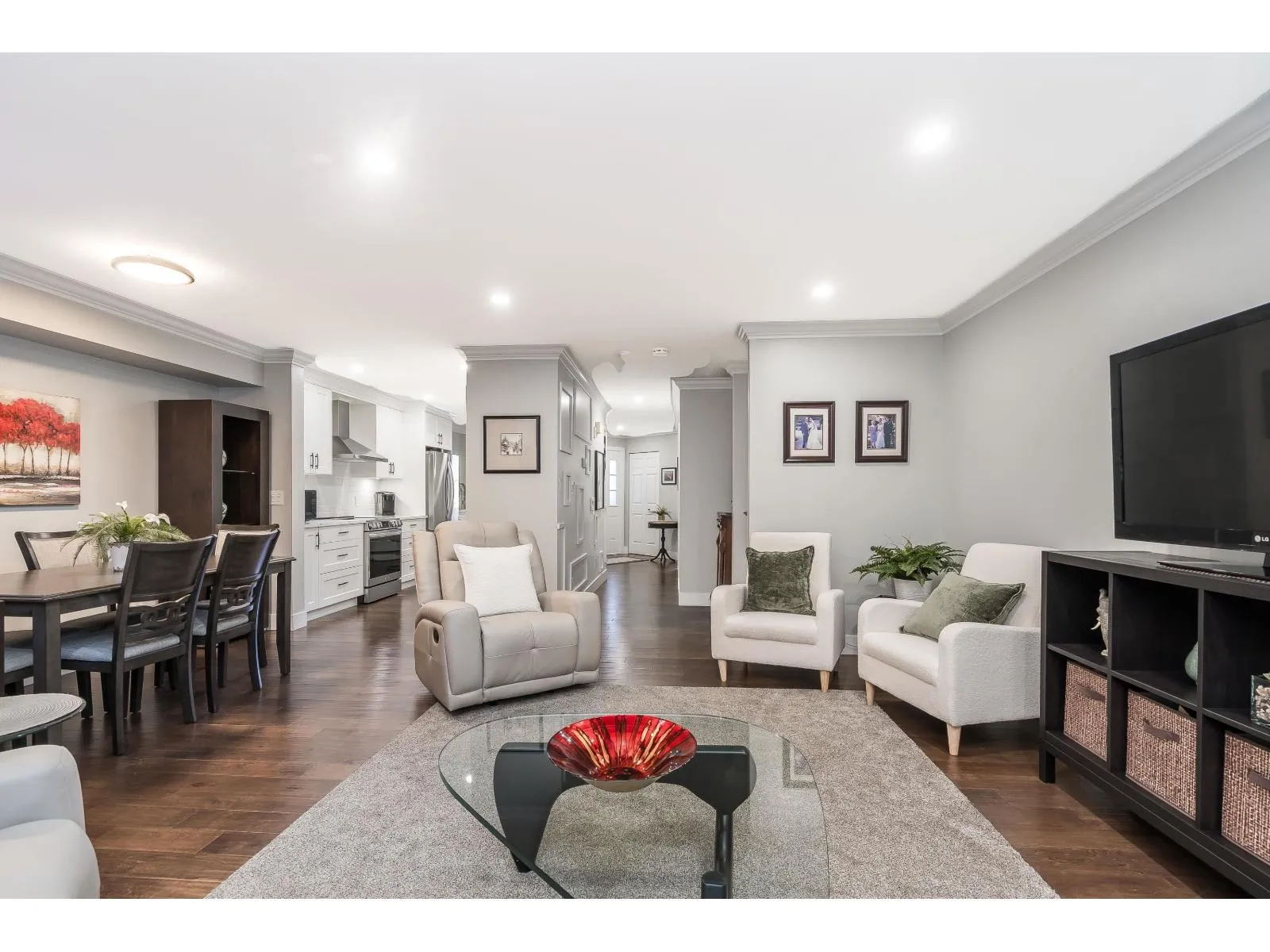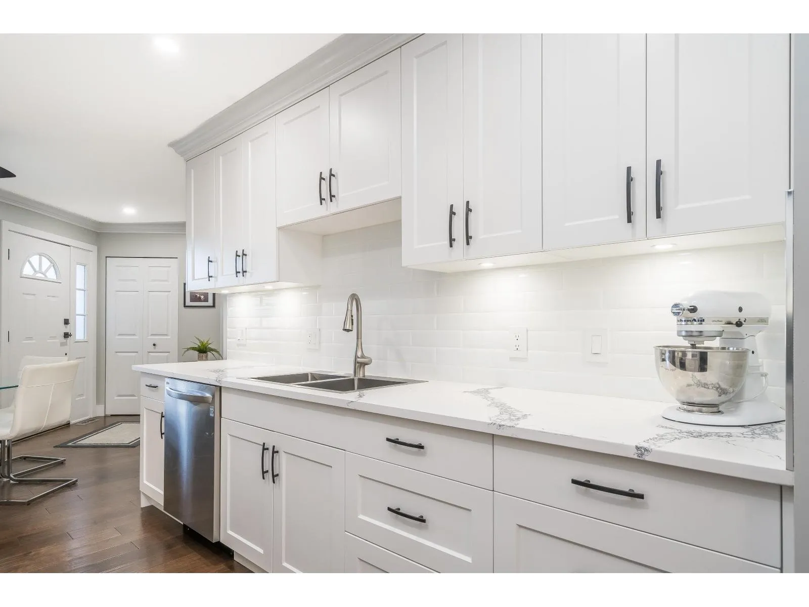This home has been extensively updated from top to bottom. Main level features hardwood flooring, a classic white kitchen with quartz countertops and new appliances, and a bright living room with a gas fireplace and sliding doors leading to a private yard with a newly poured patio. Upstairs offers a spacious primary bedroom with a beautifully updated ensuite, private sundeck, and new carpeting. All bathrooms have been fully renovated. Major upgrades include PEX plumbing, new furnace, air conditioning, hot water tank, crown mouldings, millwork, lighting, hardware, window coverings, and garage door opener. 1 Dog /Cat Allowed ( no size restriction ) 55 + Complex Open house Saturday April 4 1-4 PM (id:27476)