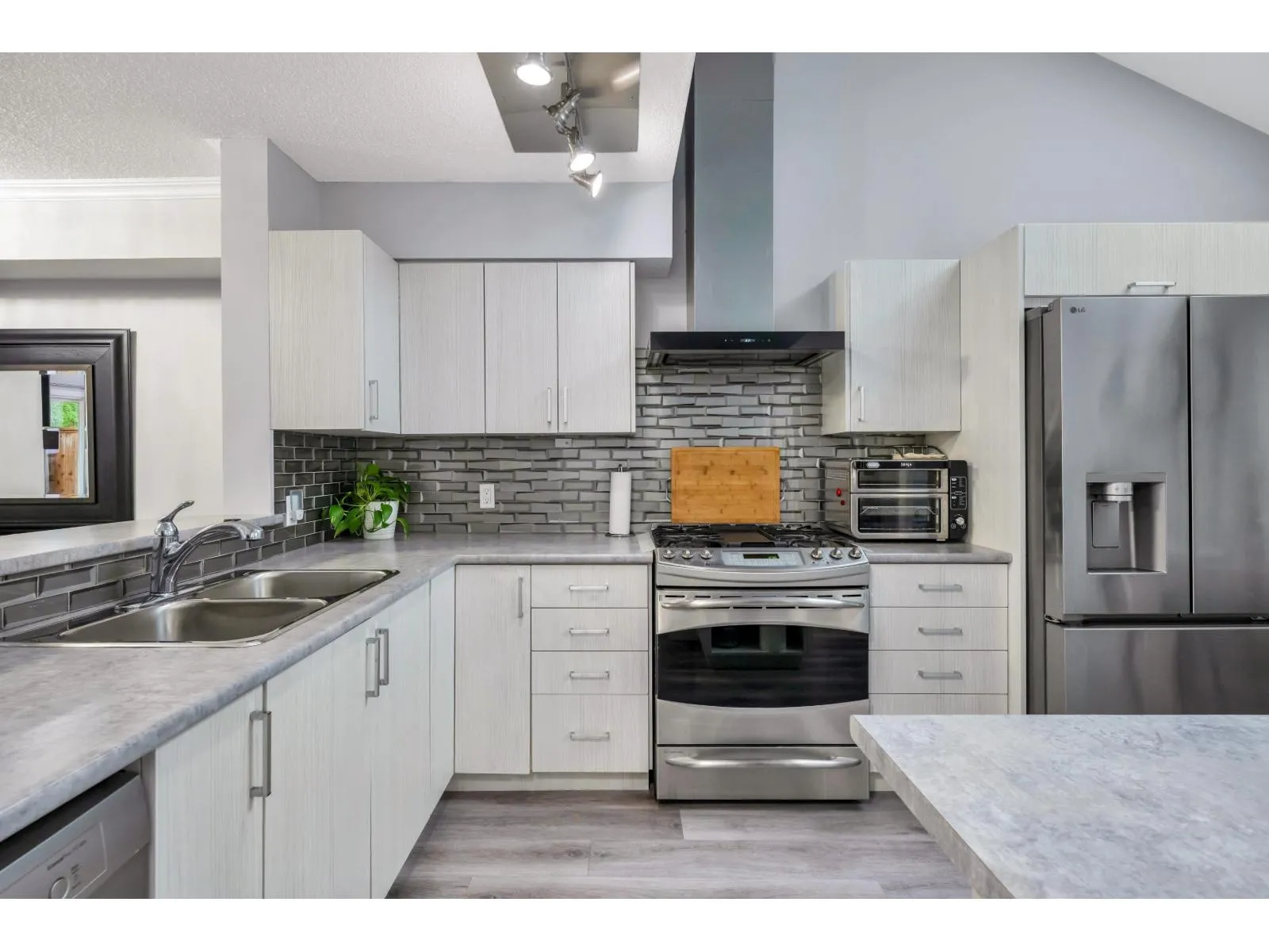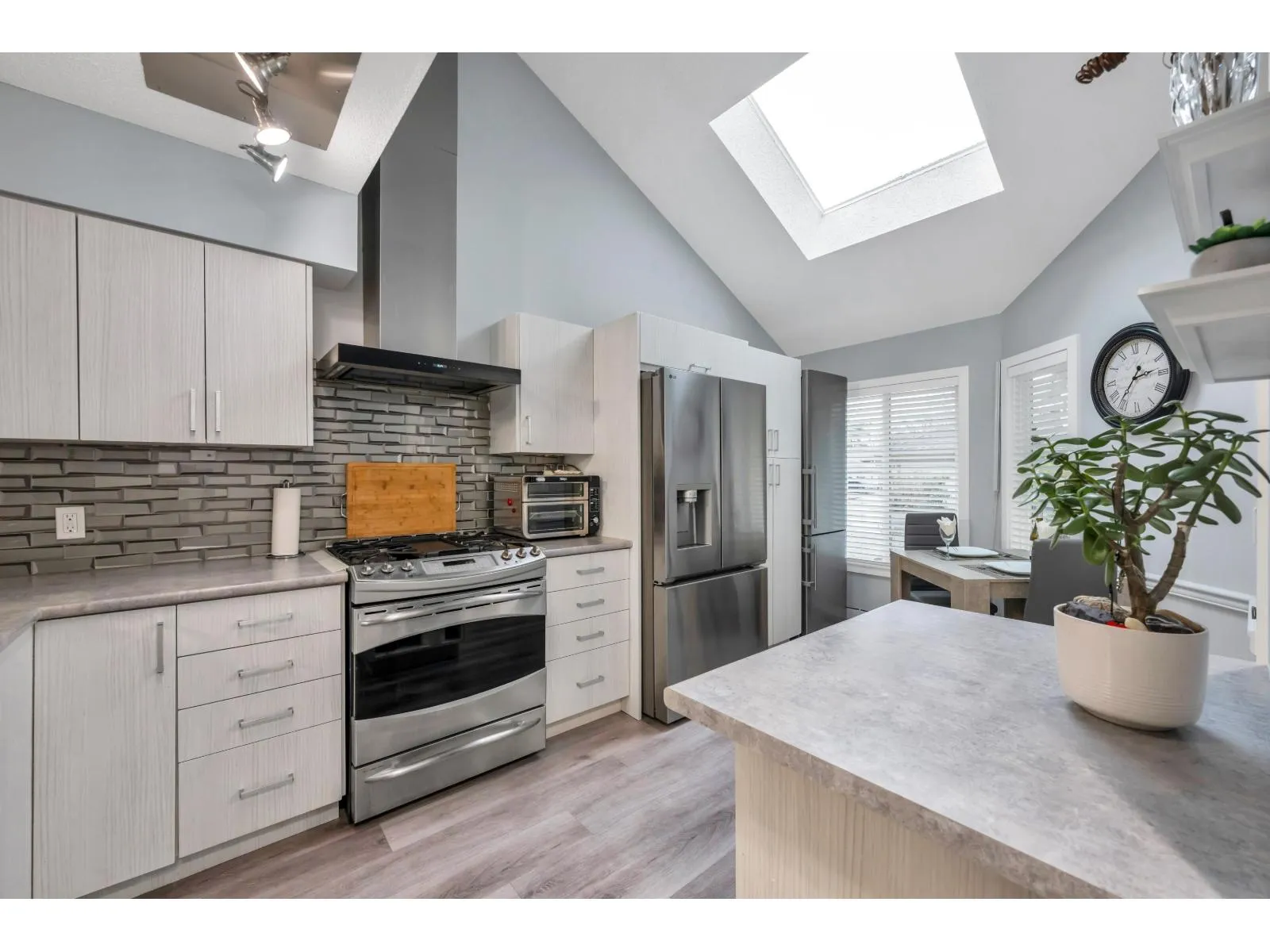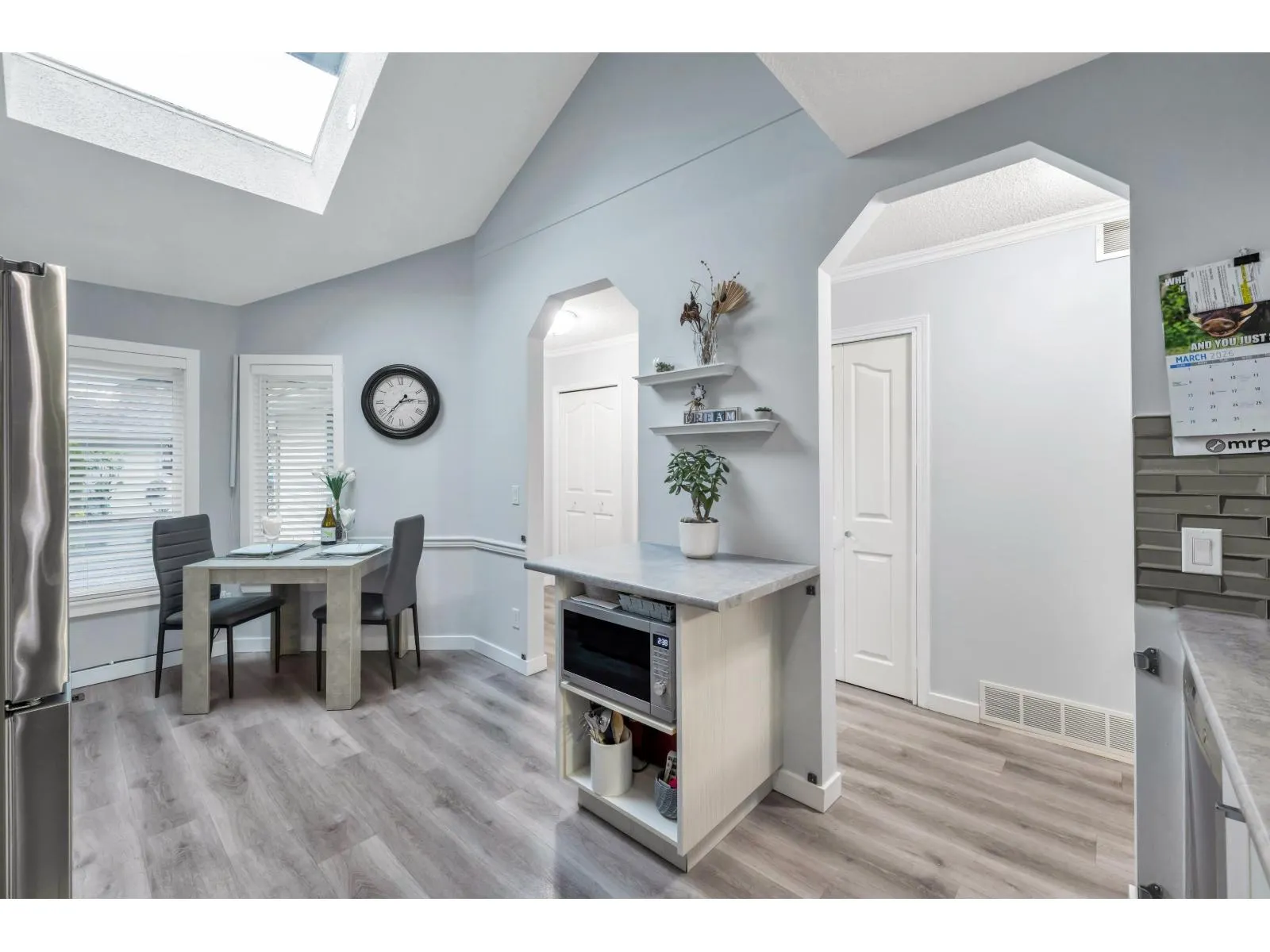 Beautifully updated unit in one of the best locations in the Bridalwoods! This bright and modern unit features updated laminate flooring throughout, brand new Pex piping, new light fixtures, freshly painted and updated kitchen sink. The modern kitchen showcases a vaulted ceiling with skylight, creating a spacious & light filled atmosphere. The ensuite includes a stylish new vanity, while the cozy fireplace has been tastefully updated. Windows were replaced in 2025 & new blinds have been installed throughout. Enjoy your private fenced patio area complete with gazebo, perfect for relaxing, entertaining or space for our 4 legged friends. Walking distance to recreation, shopping, recreation & all level of schools. (id:27476)