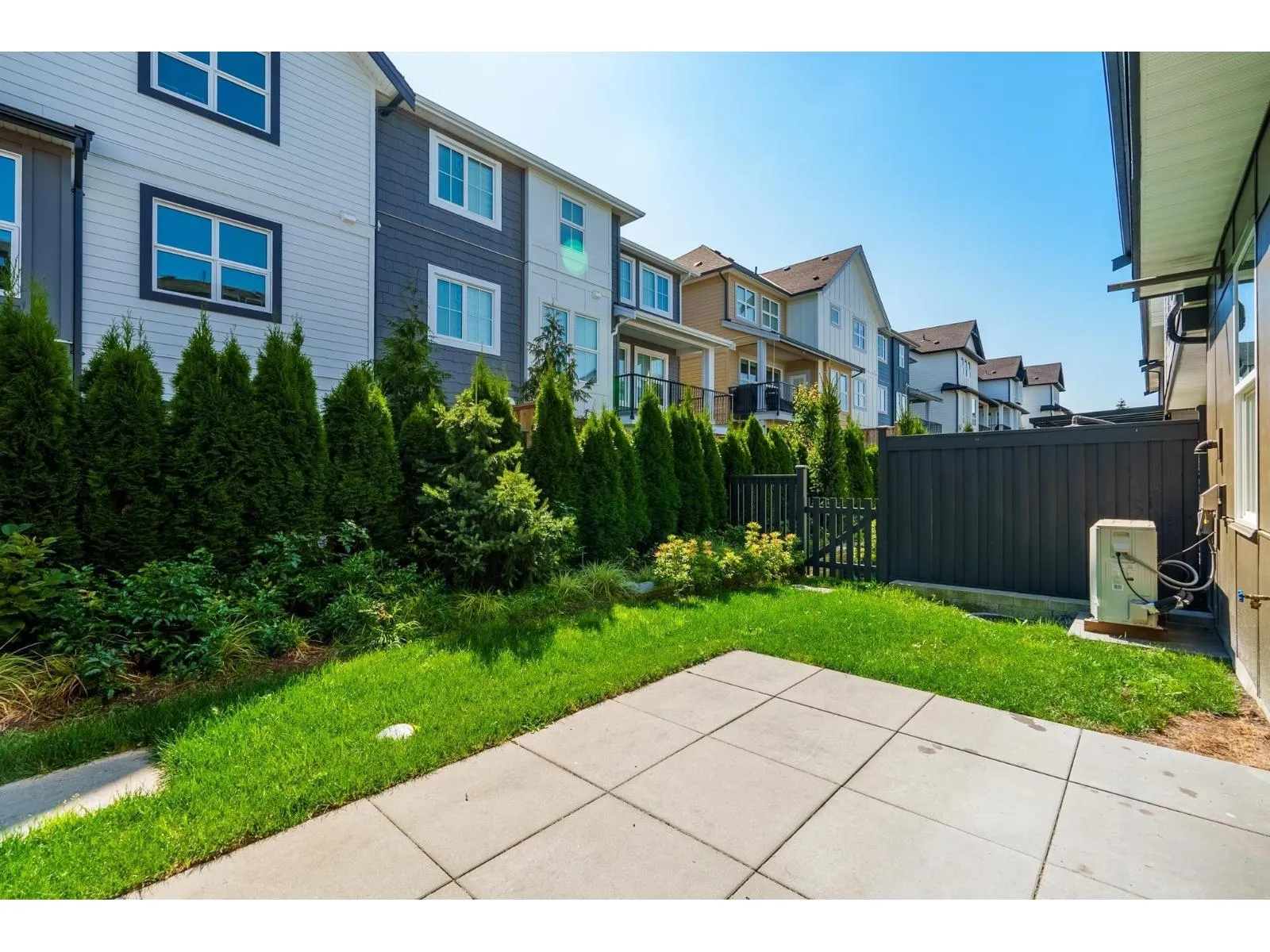 Welcome to Parallel built by award-winning Hayer Builders Group, centrally located in the desirable Willoughby area. This beautifully well-maintained townhome feels like new and offers the perfect blend of modern design, comfort, and everyday convenience. Step inside to find a bright, thoughtfully designed layout ideal for both living and entertaining. The main level opens to your own private yard-perfect for relaxing, gardening, or hosting summer gatherings. Built-in Level 2 EV charging outlet and A/C. 3 spacious bedrooms upstairs/double side-by-side garage provides ample room for parking/extra storage. Located Just minutes from excellent schools, Langley Event Centre, parks, and restaurants, and easy access to HWY 1. Perfect location for living! Call for your private showing today. (id:27476)