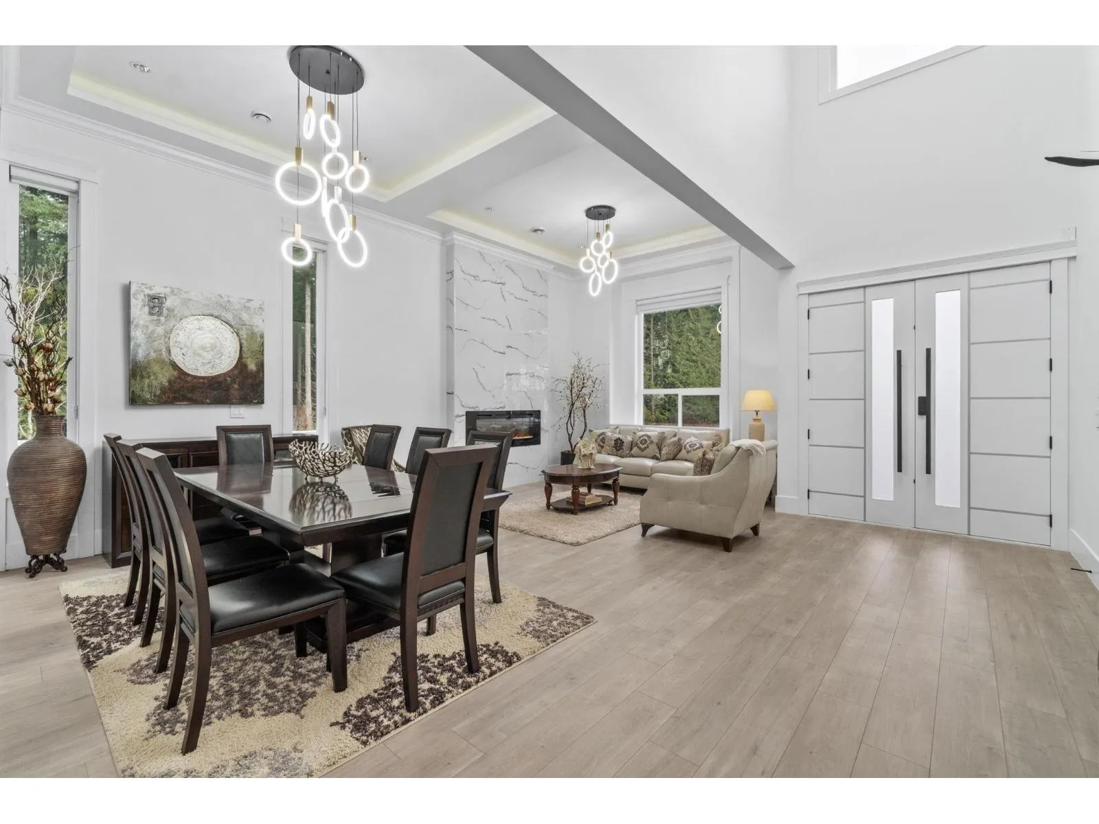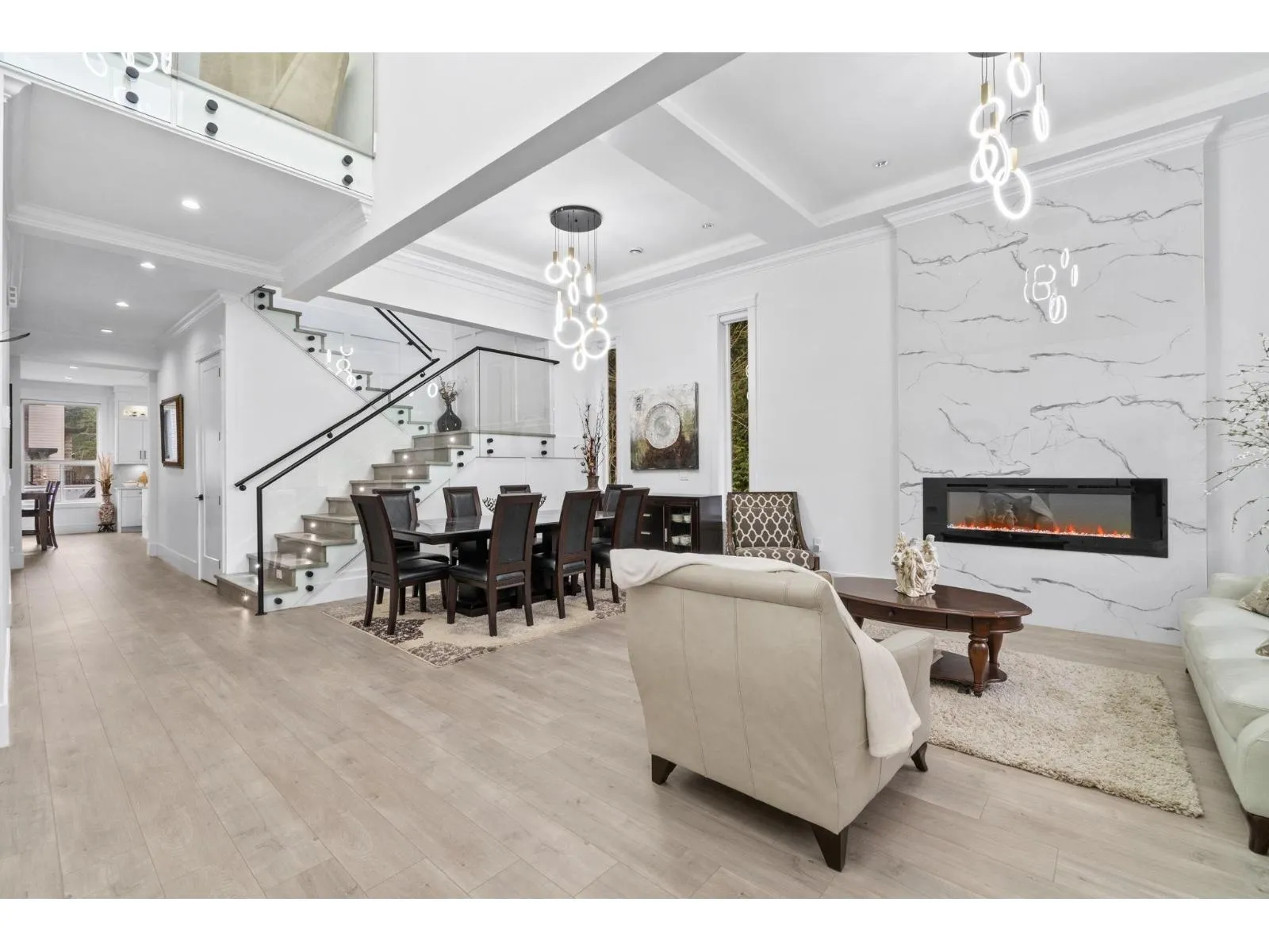 Brand new luxury home in the Brookswood-Langley area. This 3-level residence offers 9 bedrooms and 9 bathrooms with radiant heating, quality construction, high ceilings, and excellent natural light. Situated on a 6,998 sq. ft. lot with spacious living throughout. The main floor features elegant living and dining areas, a large family room, designer kitchen with separate wok kitchen, 1 bedroom ensuite, private office and mudroom. Upstairs offers a generous primary bedroom with ensuite and 3 additional bedrooms, and a loft. The fully finished basement includes a 2x-2-bedroom suite, with separate entry, ideal for extended family or rental income. Recreation/media rooms, and bar for entertaining. Professionally upgraded yard with red mulch, defined landscape borders. OPENHOUSE ON 3PM -5PM SATURDAY and 12PM to 2PM SUNDAY. (id:27476)