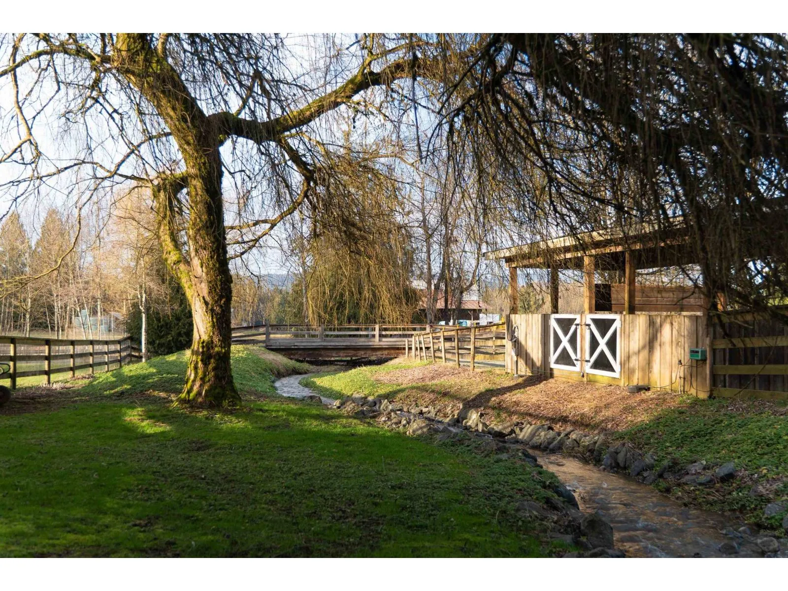 Cobblestone Farm - a premier equestrian property in Glen Valley, just 10 min from Thunderbird Show Park. Spanning 8.3 acres, it features a pristine hunter/jumper facility w/ a renovated country house, a Gambrel-style barn for 15 horses & extensive turnout. A charming brook crossed by multiple bridges that enhances the serene landscape. The fully renovated home offers a unique layout w/ covered verandahs, grand foyer, spacious living areas & a luxurious master suite. High-end appliances, outdoor pool, & a hidden loft to add to its charm. The barn includes oversized stalls, heated facilities, & a legal loft apartment. Add'l amenities include a 5-horse exerciser, covered indoor arena, oversized outdoor ring, & shelters/paddocks. Thoughtfully designed for horse welfare, an extremely rare find. (id:27476)
