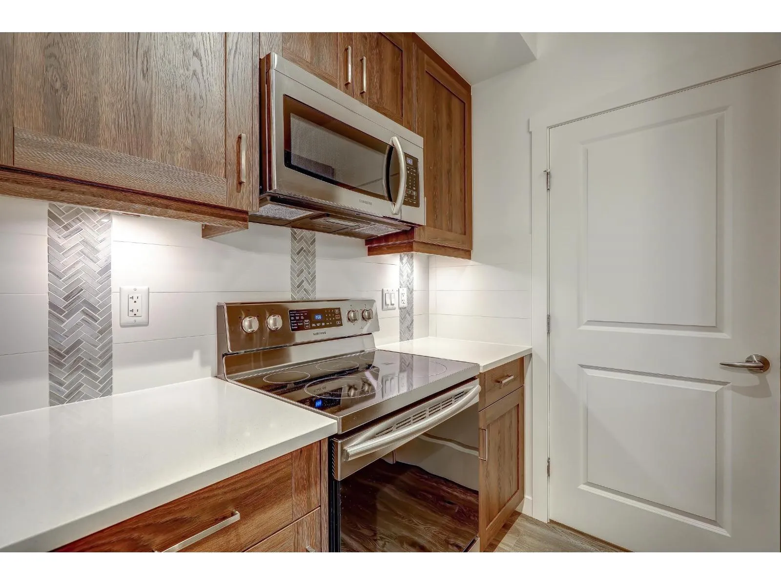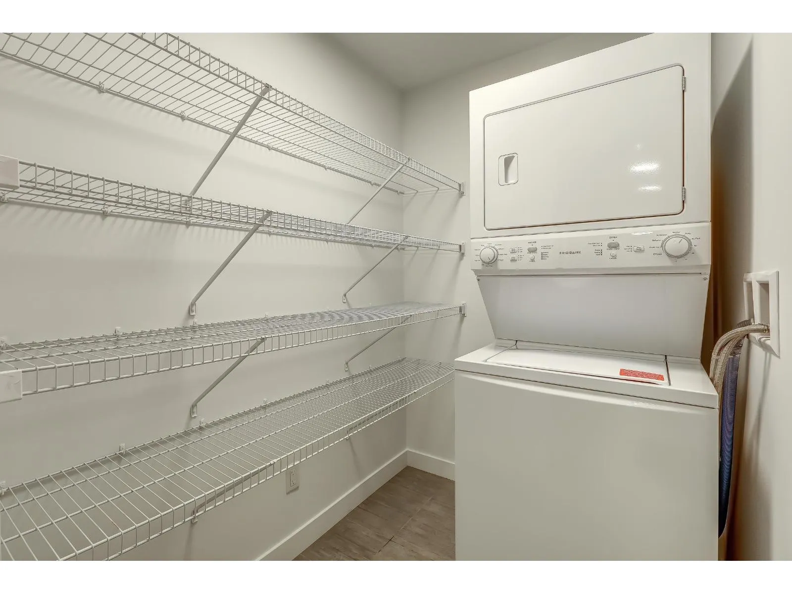 Welcome to Lattice2. This beautiful 2 Bed + Flex is freshly painted and enhanced with new LED lighting making this home feel bright and modern. The open-concept floor plan is thoughtfully designed with oversized windows that frame stunning views and flood the space with natural light. The contemporary kitchen features quartz countertops, SS appliances, ample cabinetry, and an island Ideal for both everyday living and entertaining. Enjoy the comfort of air conditioning, a rare and valuable feature, along with a spacious laundry room offering excellent storage and functionality. Step outside to a generous deck, perfect for relaxing or hosting while taking in the unobstructed surroundings. Resident enjoy rooftop amenities and a prime location close to schools, parks, shopping, and transit. (id:27476)