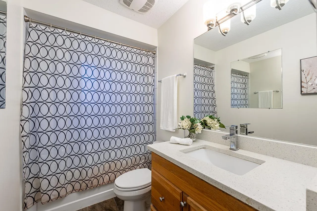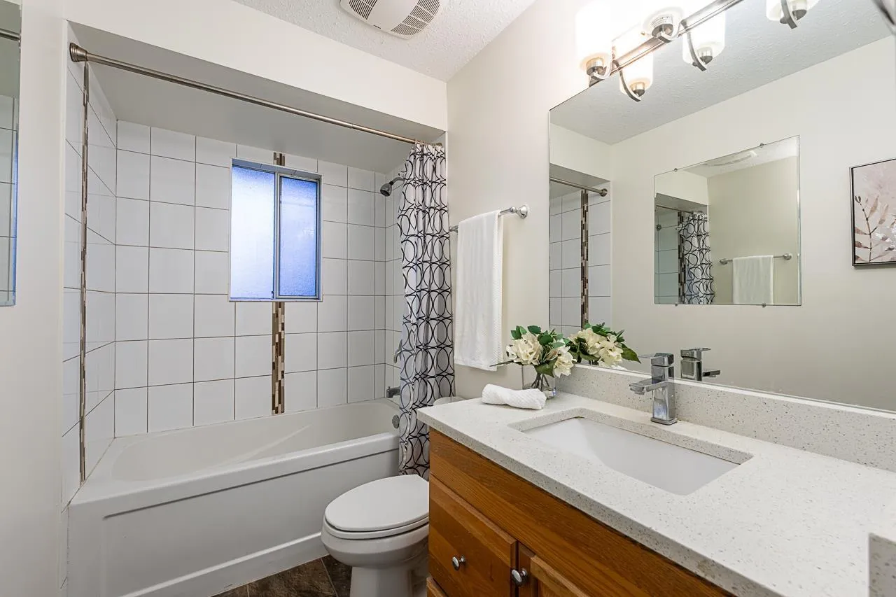Stylish Aldergrove home on a quiet street with refurbished kitchen cabinetry, stainless steel appliances, and a large deck with new railings overlooking a fully fenced south-exposed backyard with room for a pool or shop. 2 LAUNDRIES, Floor-to-ceiling feature stone wall with electric fireplace. Laminate flooring throughout. Basement has a THREE-BDRM SUITE (2 plus den) with separate laundry, currently rented for $2,500/month to long-term tenants who would love to stay. Upstairs is vacant. Garage converted to storage, approx 18-yr-old roof, 6-yr-old h/w tank, original furnace. Easy access to new Aldergrove Town Centre, Shortreed Elem, ACSS, Highway 1, US border & bus stops. Some landscaping, driveway, steps & east fence updates needed. New window estimate $6600.00 available upon request. (id:27476)