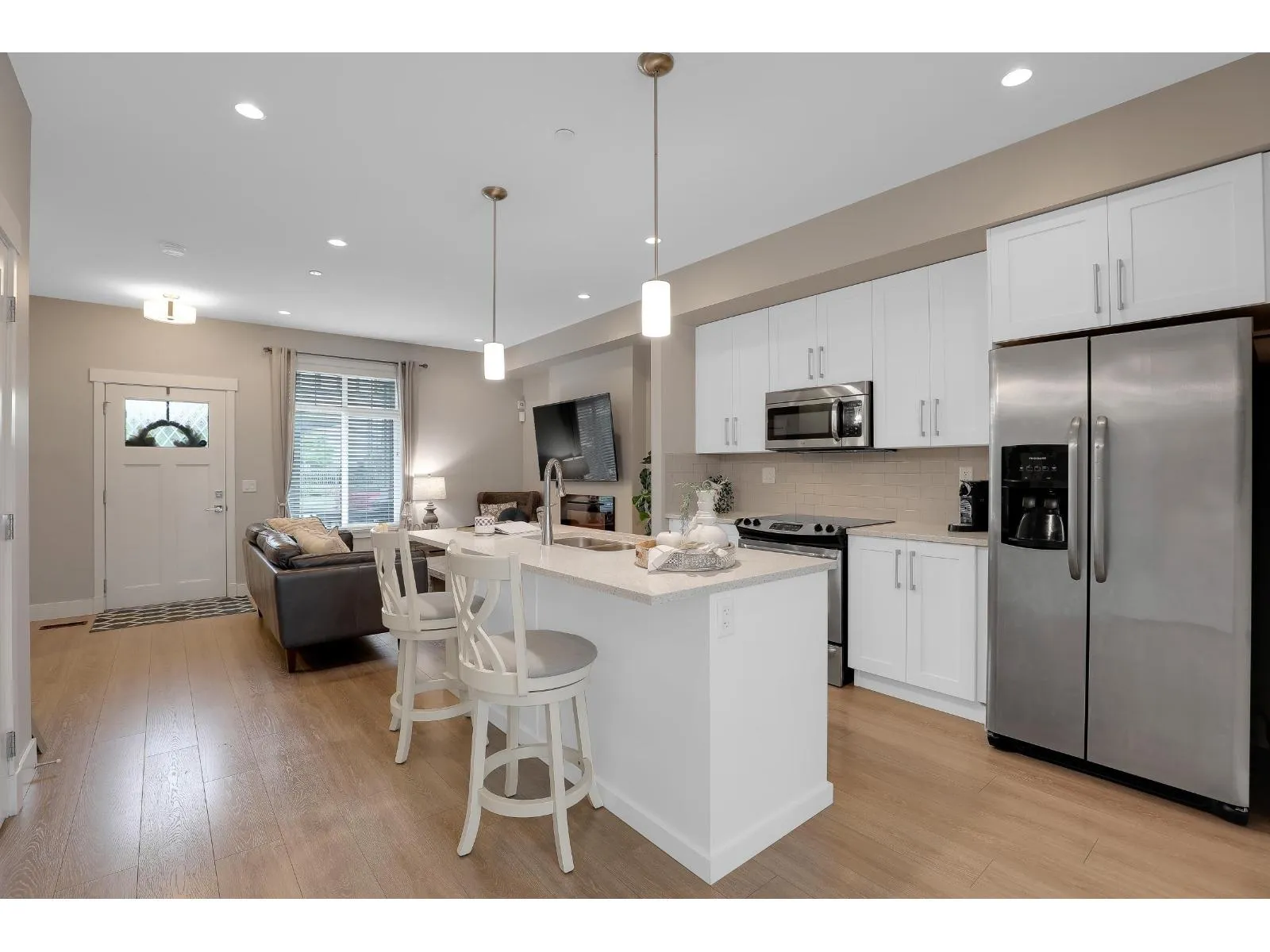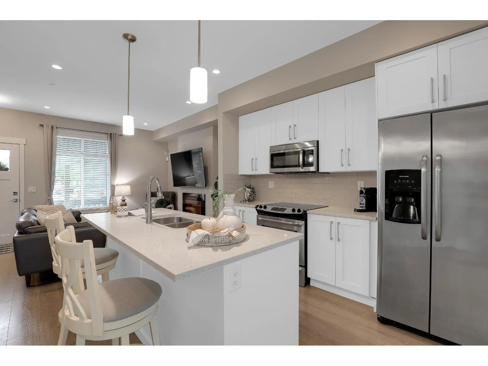 FOXRIDGE. Impeccably well-maintained NON-STRATA ROWHOME ticks all the boxes! 4 bed +4 bath home has an open layout spacious dining and living room w/ GREENERY OPEN VIEW! Kitchen with huge quartz counters, SS appliances, generous PANTRY and a powder room. Updated lightings, Upstairs offers generous size 3 bedrooms and 2baths. Basement has that extra space for the family with a large rec room, bedroom and full bathroom. NEW LANDSCAPED YARD & FRONT PORCH. AMPLE STREET PARKINGS,Steps to greenspace, schools and amenities. Easy HWY 1 access. BEST LOCATION + BEST PRICE for GREAT VALUE!! An excellent opportunity to get a great buy on a non-strata home. Lots of street parking available. Located 2 min from HWY 1, Carvolth bus exchange, & middle school! (id:27476)