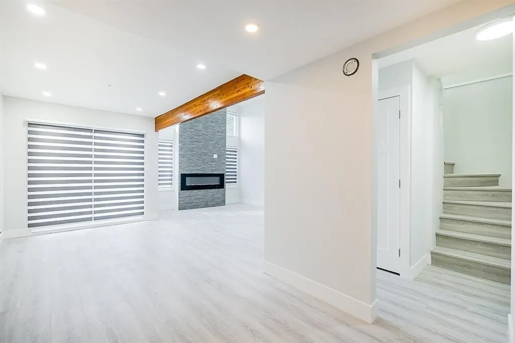 This stunning, fully renovated 4BED, 2BATH+DEN home boasts ~1500 sqft, perfect for first-time buyers & investors. Main floor features open-concept living connects the living, dining, & kitchen areas, featuring NEW S/S APPLIANCES, NEWER FLOORS, PAINT, DOORS & WINDOWS! Spacious living boasts beautiful GAS FIREPLACE, HIGH CEILINGS & PLENTY OF NATURAL LIGHTS. Main also boasts 1 BIG bdrm+adjacent DEN & 1FULL Bath. Above has MASTER BDRM+2 Bedrooms & 1FULL bath the overlooks the main floor. GREAT INVESTMENT PROPERTY! Enjoy the privacy of a fully fenced backyard w/ mature trees, ideal for summer gatherings. Centrally located: 5 mins walk to FreshCo & Starbucks. 4 Mins drive to BGMS & Philip Jackman Park. (id:27476)