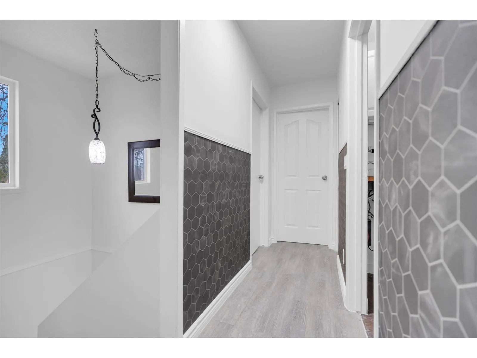 Live or Invest! Welcome to this beautifully updated 4 bed + den, 2 bath legal 1/2 duplex in Langley City! Situated on a generous 4,500 sq. ft. lot, this home offers nearly 1,400 sq. ft. of comfortable living space and has been tastefully renovated with modern flooring, kitchen, bathrooms, and finishes throughout. Enjoy a bright and functional layout with plenty of room for families, a home office, or guests. The property also features ample parking and sits on a desirable corner lot overlooking Brydon Lagoon, offering peaceful views and a great location close to parks, schools, and amenities. The property is zoned RM1 (Multiple Residential Low Density) and designated Low Rise Residential in the OCP, perfect investment opportunity! (id:27476)