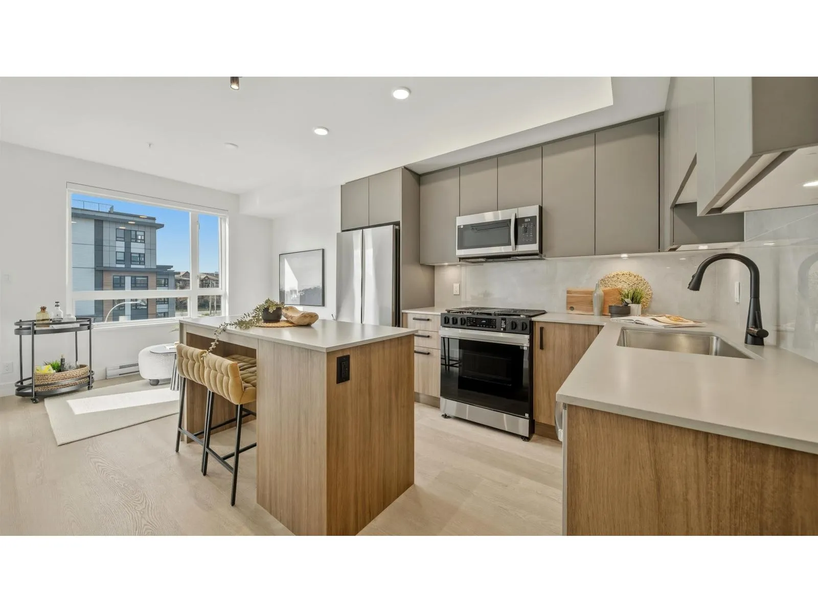 BRAND NEW. MOVE IN NOW! Introducing The Commons by award-winning Zenterra Developments at 82nd Ave and 208B St, Willoughby. Located steps from Willoughby Town Centre with easy access to Hwy 1. This BRAND-NEW condo offers 2 bedrooms, 1 bathroom with 9' ceilings, A/C, built-in closet organizers, washer/dryer, storage locker and 1 parking stall with EV rough-in. Kitchen offers full-size stainless steel appliances including a 5-burner gas range, dishwasher, kitchen island + gas BBQ hookup on the balcony. Purchase with only 5% deposit. Amenities include a fitness centre, co-working space and 6,000 sqft rooftop patio with putting green and BBQ area. Tour this NEW HOME today by visiting our Presentation Centre - open daily 12-5PM (closed Fri) at 8230 208B Street. (id:27476)