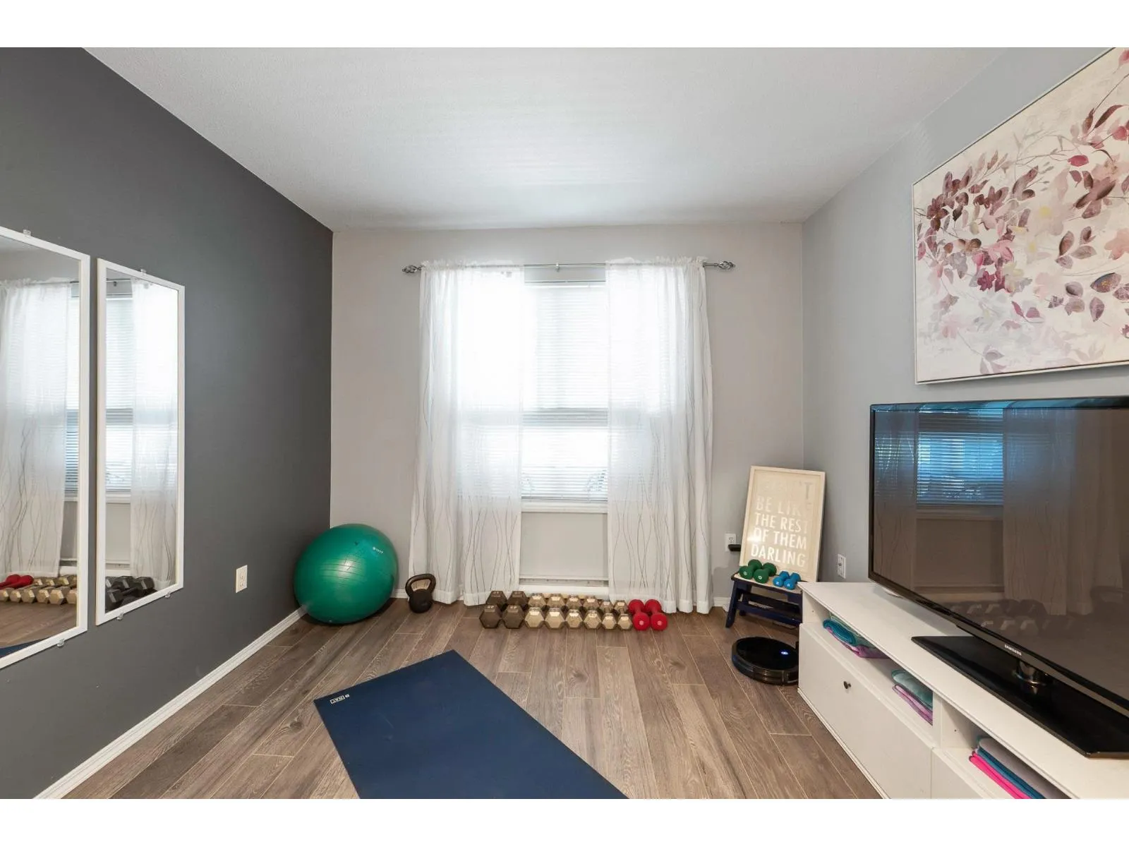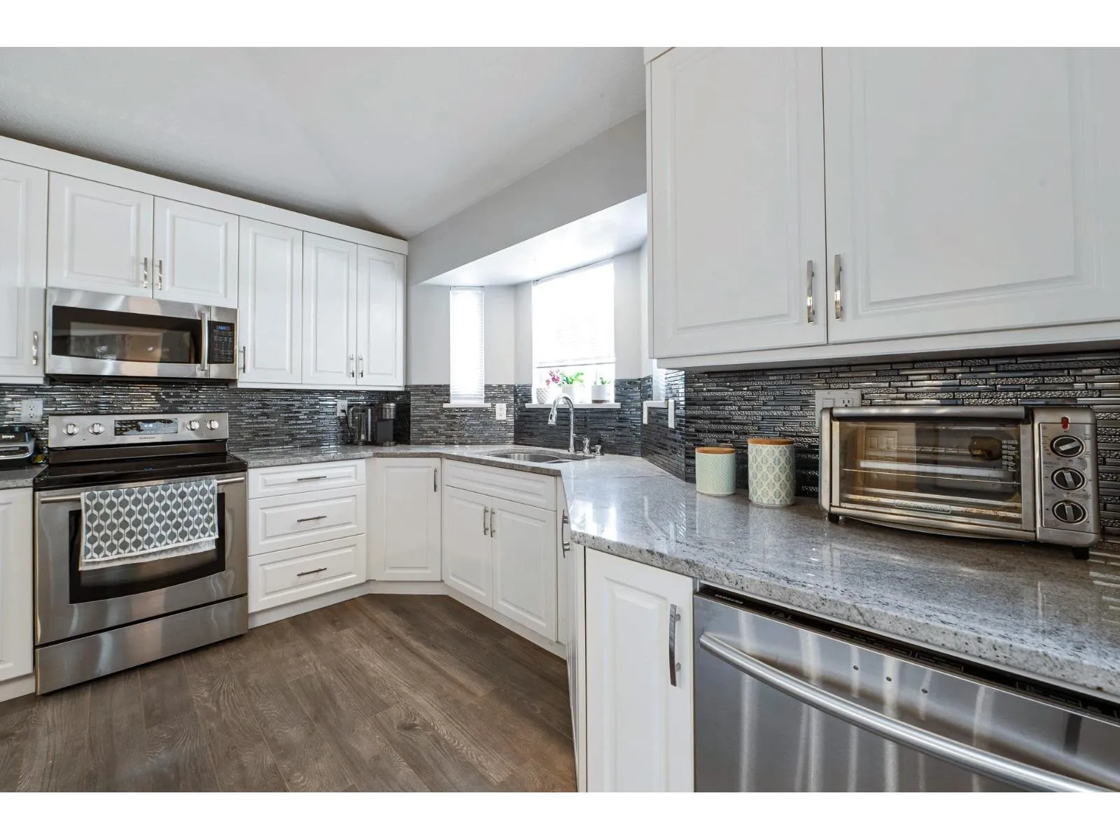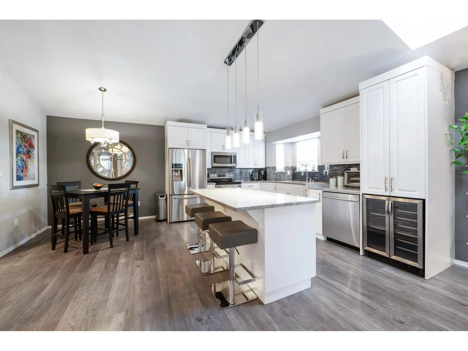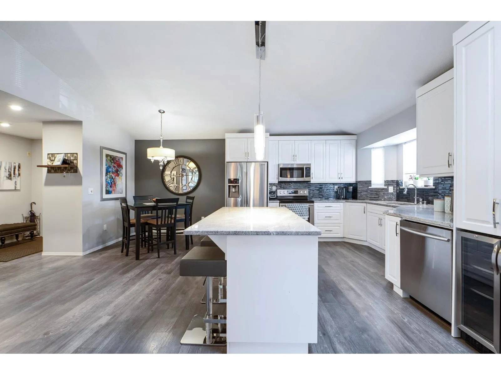 Experience Westside Estates, where luxury meets convenience! This top-floor corner unit is a rare find, offering exceptional privacy and natural light pouring in through the skylight. The beautifully updated kitchen is a chef's dream, featuring modern quartz countertops, stylish finishes, and an oversized island perfect for gathering. Laminate flooring throughout gives the entire home a crisp, contemporary look. Enjoy breathtaking mountain views from your kitchen window, or relax in the spacious living area. With 2 beds, 2 baths, and 2 parking spots, this quiet oasis has everything you need. Plus, it's steps to Willowbrook Mall and the future Skytrain - your urban getaway awaits! Home is where your Storey begins! (id:27476)