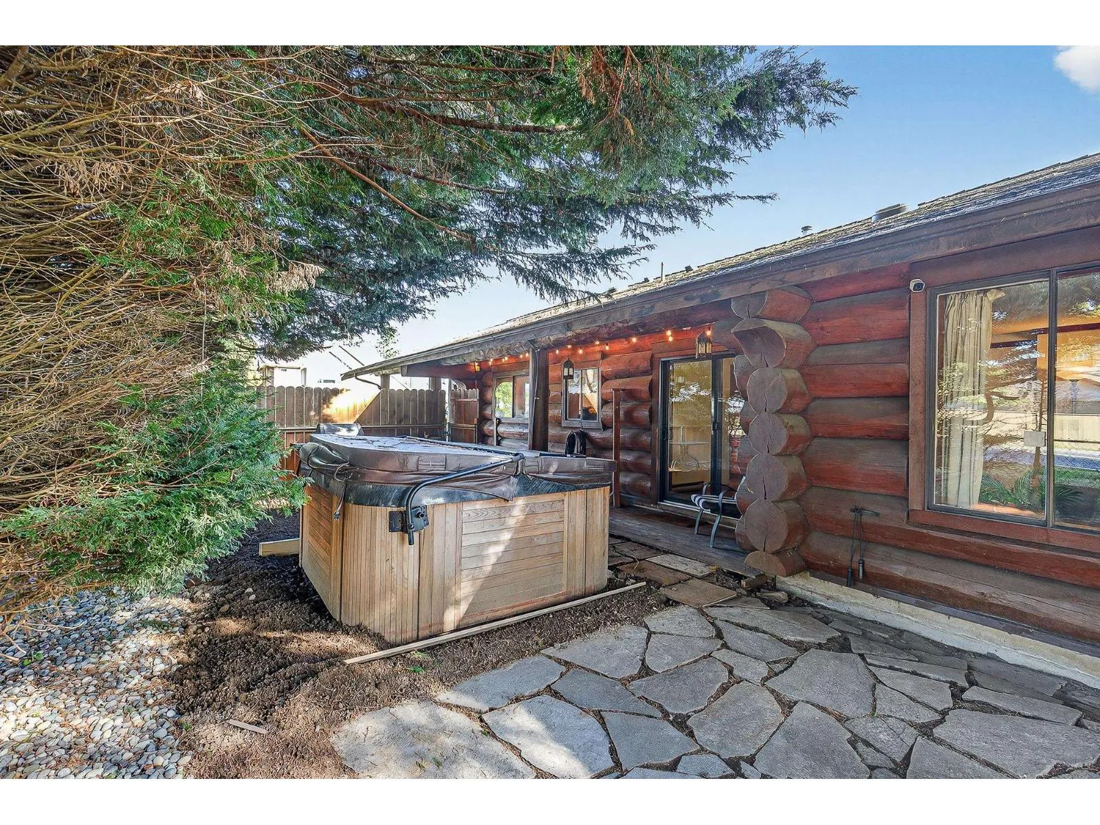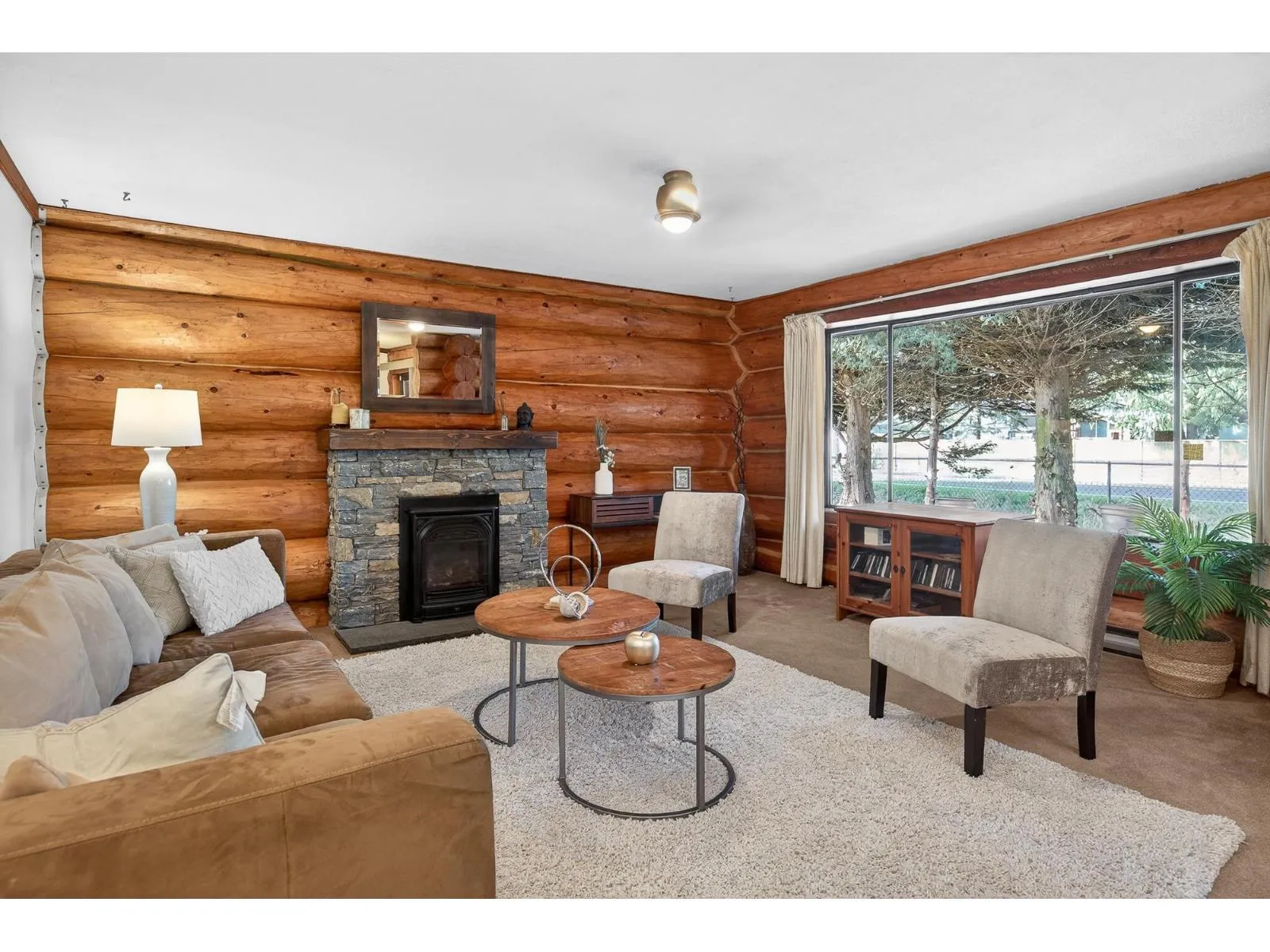 Rare opportunity to own a charming log home filled with warmth, character, and inviting living spaces. The main living room features beautiful log walls and a cozy stone fireplace, creating a perfect place to relax or gather with family and friends. The open layout flows into the dining area with sliding doors leading to the backyard, bringing in natural light and easy indoor-outdoor living. The kitchen offers ample cabinetry, generous counter space, and a practical layout for everyday cooking. This home features three bedrooms, two bathrooms, a convenient laundry area, and a second spacious living room ideal for family living, entertaining, or a media space. Situated on a private property with a detached shop, this home blends rustic charm with functional space for modern living. (id:27476)