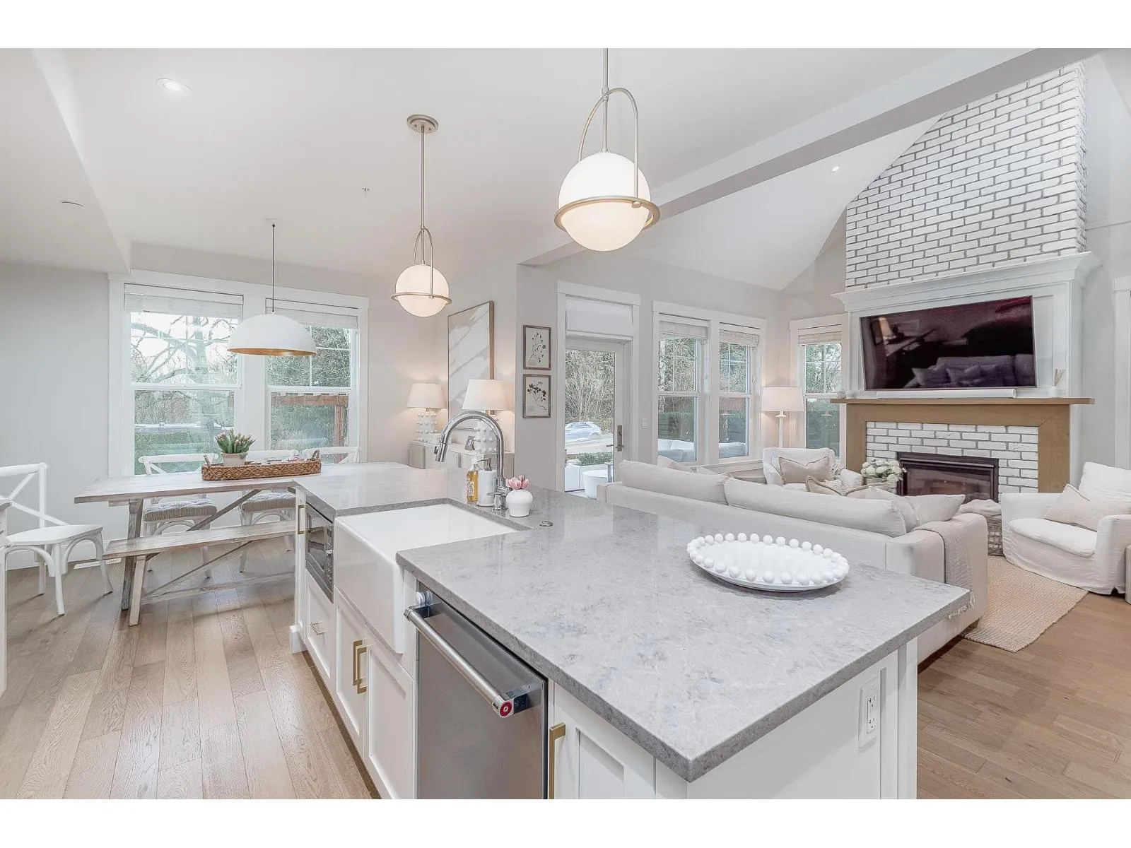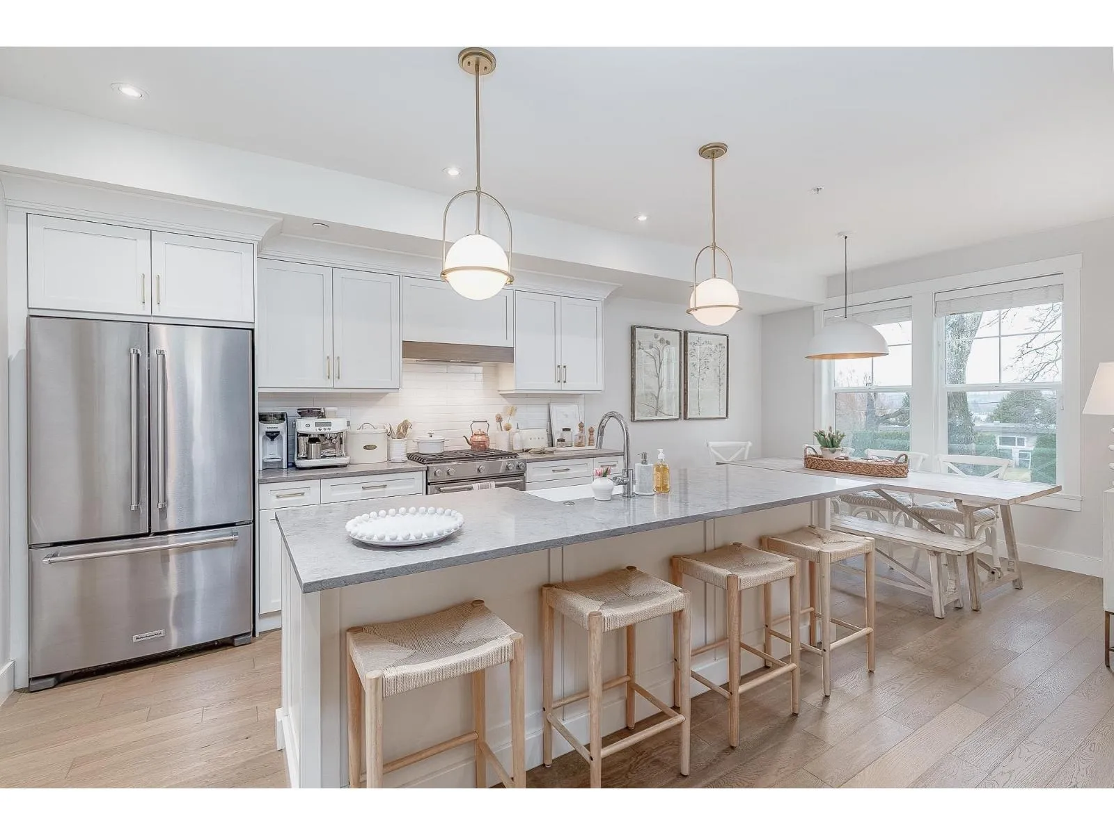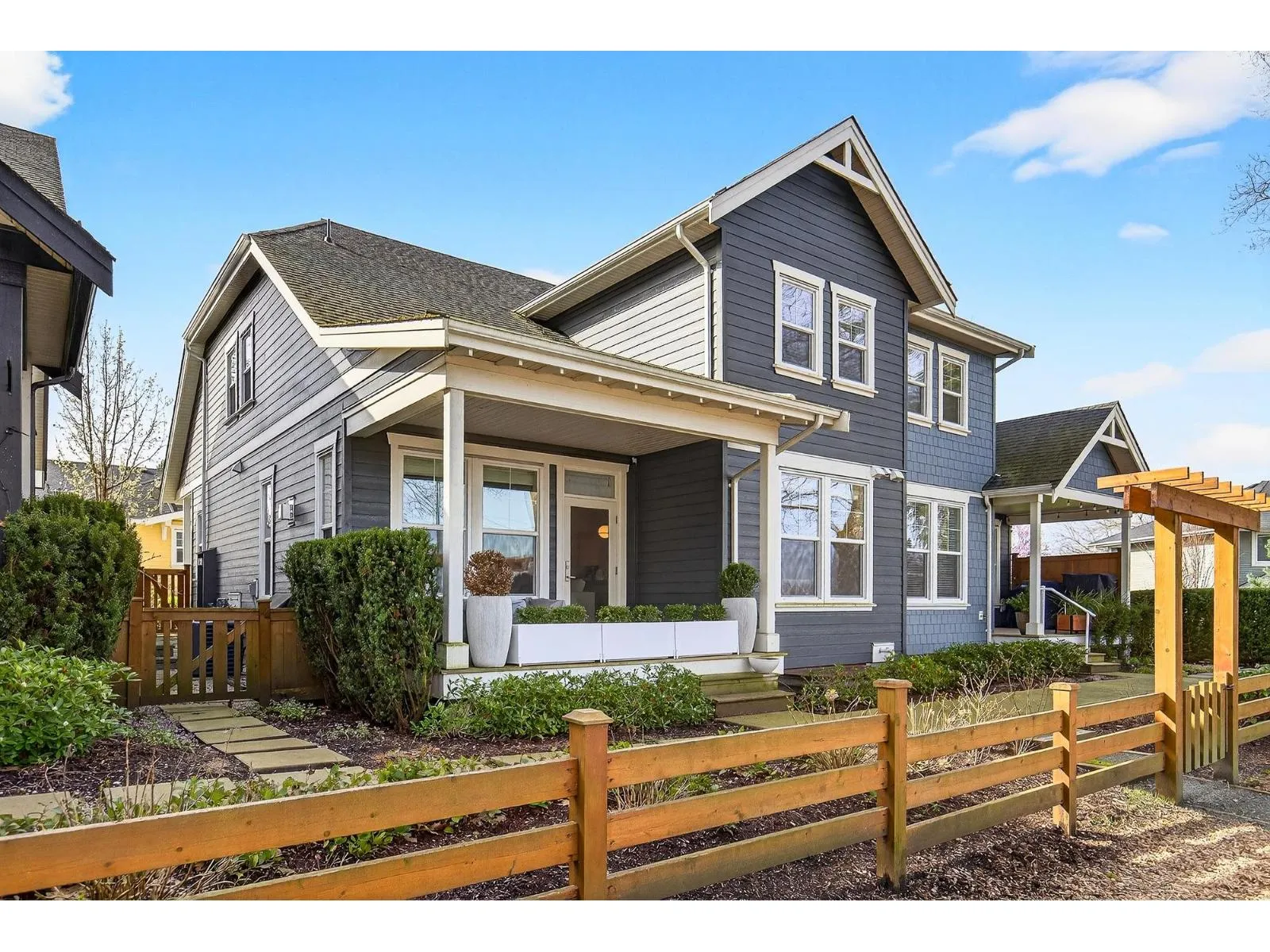 Rarely available! Welcome to REUNION in Murrayville-an exclusive 4-bedroom townhome with Mountain views right beside Denny Ross Park on the historic Murrayville Schoolhouse site. This air-conditioned, Lanstone-built residence blends timeless character with refined modern living. The main level features a gourmet kitchen with oversized quartz island, premium stainless appliances including gas stove, and wide-plank engineered wood flooring. Soaring 9'-11' ceilings and a vaulted Great Room with floor-to-ceiling brick fireplace create an elegant, inviting space. The finished basement with rec room, bedroom, and storage adds versatility. An exceptional offering in a distinguished community. OPEN HOUSE SAT APR 4 1-3 (id:27476)