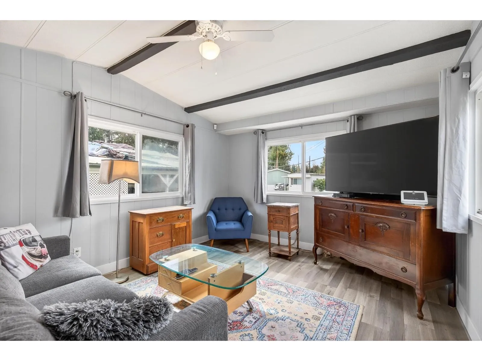 Langley Grove Estates. This well-maintained 2 bed+den(or storage room)manufactured home offers comfortable, affordable living in one of Langley's most desirable community .Step inside to find a bright and functional layout featuring two bedrooms, living area,kitchen/eating, and versatile den space-perfect for a home office, hobby room, or storage. Two bedrooms one without a closet, ideal for downsizers, retirees, or anyone looking for easy living. Set within Langley Grove Estates, a beautifully maintained 45-acre community, you'll enjoy a peaceful, park-like setting with resort-style amenities including a clubhouse, exercise center, sauna, and hot tub-perfect for relaxing and socializing. Located just minutes from shopping, restaurants, transit, and much more. (id:27476)