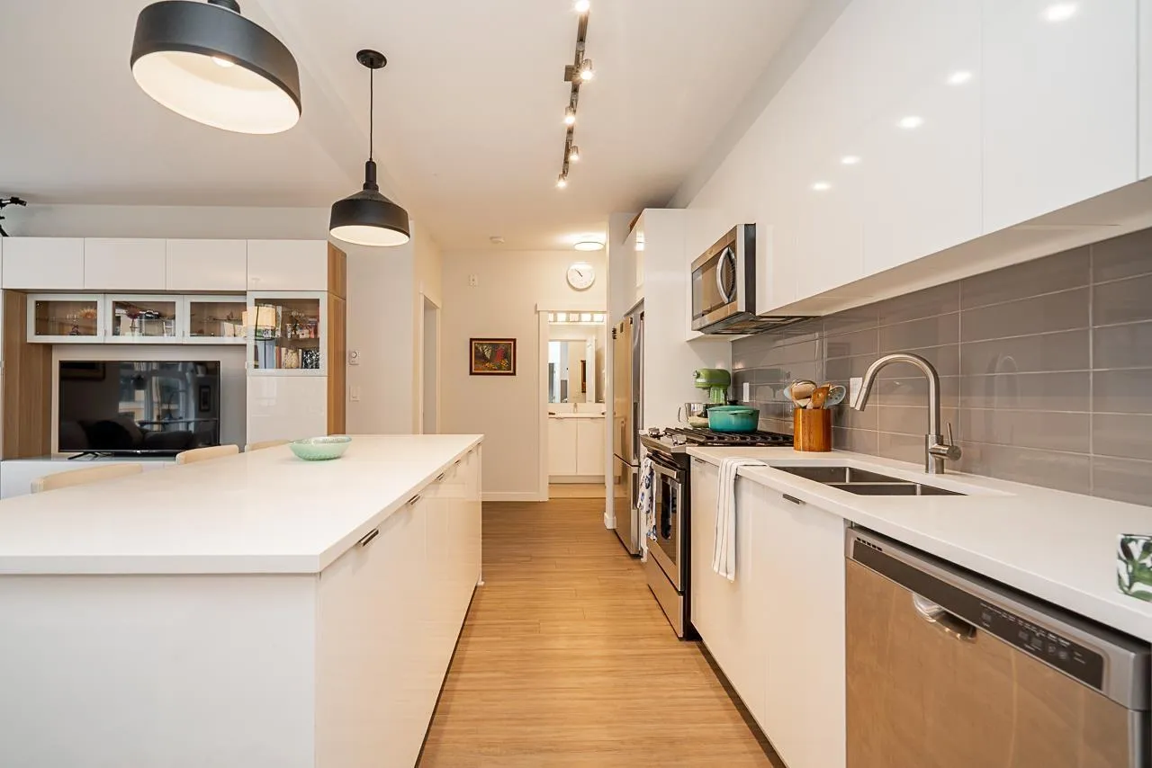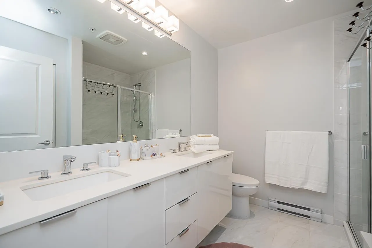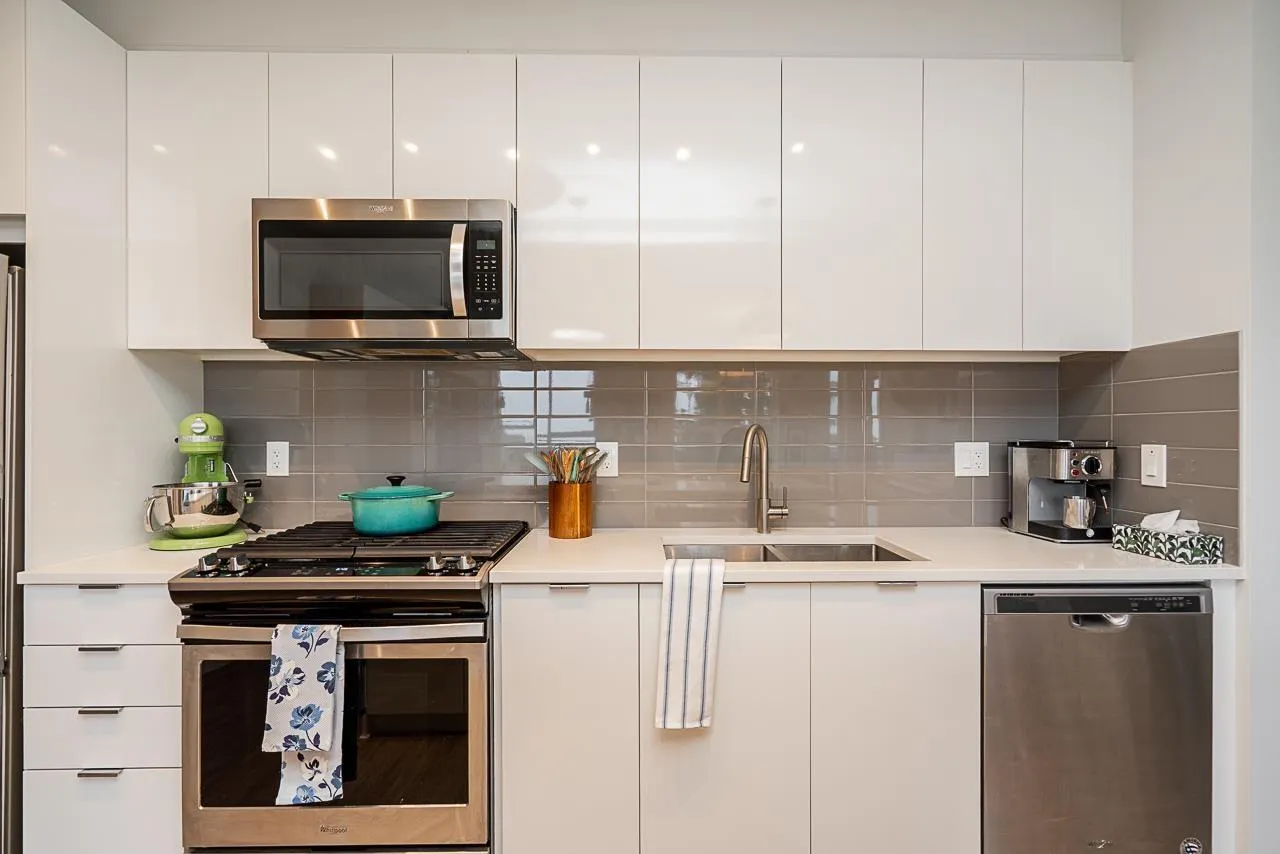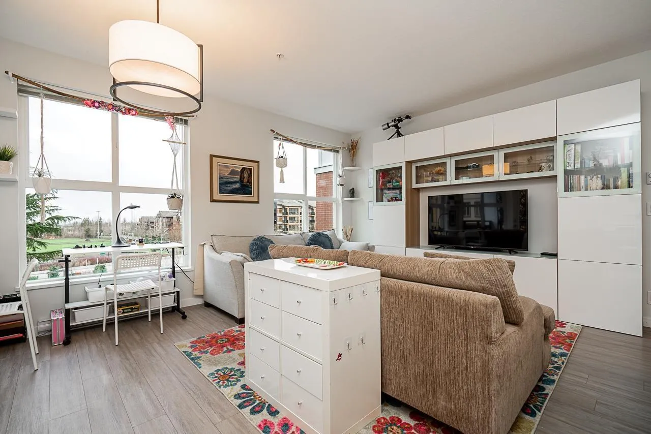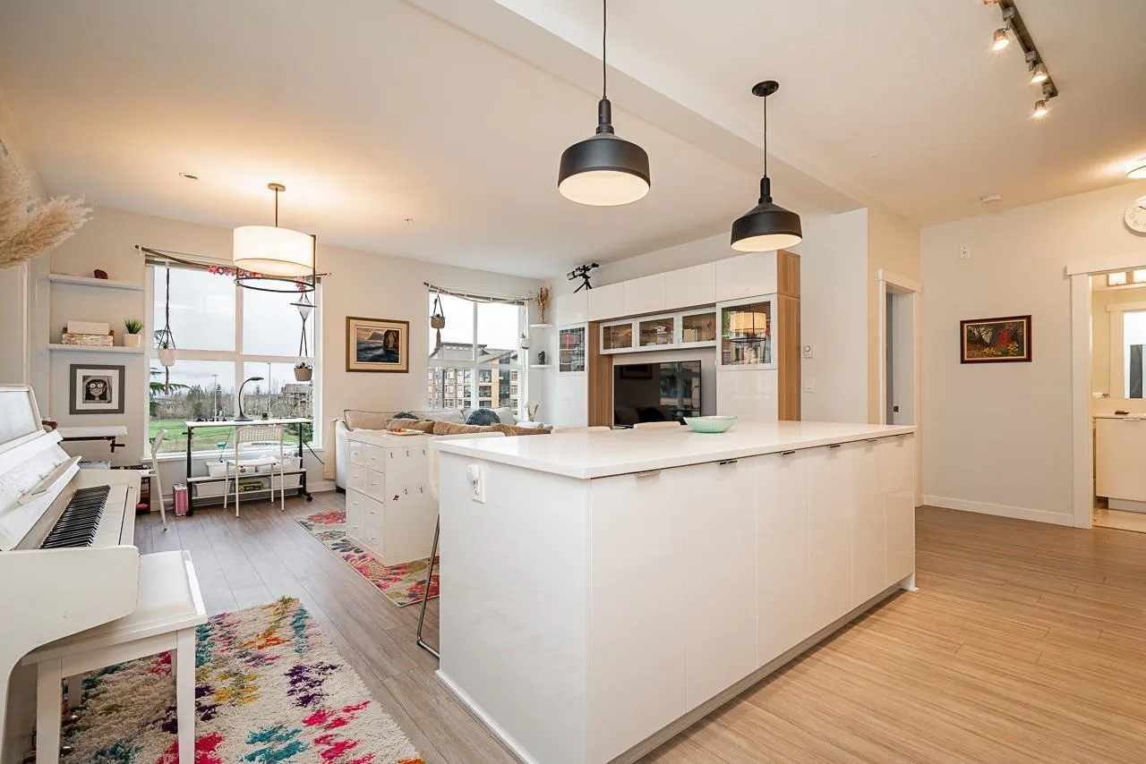 Welcome to Union Park! A family-focused community offering comfort and style. This bright corner unit features 1,098 sq. ft. with 3 bedrooms and 2 bathrooms. Expansive north and west facing windows fill the home with natural light while showcasing views of the community park and mountains. The open-concept kitchen is equipped with stainless steel appliances, a gas range, stone countertops, and soft-close cabinetry-ideal for both daily living and entertaining. The primary bedroom boasts a beautifully designed ensuite with double sinks and a generous seated shower. Pet-friendly with no size restrictions for up to 2 pets. Enjoy resort-style amenities including an outdoor pool, hot tub, fitness centre, basketball court, playground, and clubhouse, all set within a safe, walkable neighbourhood. (id:27476)