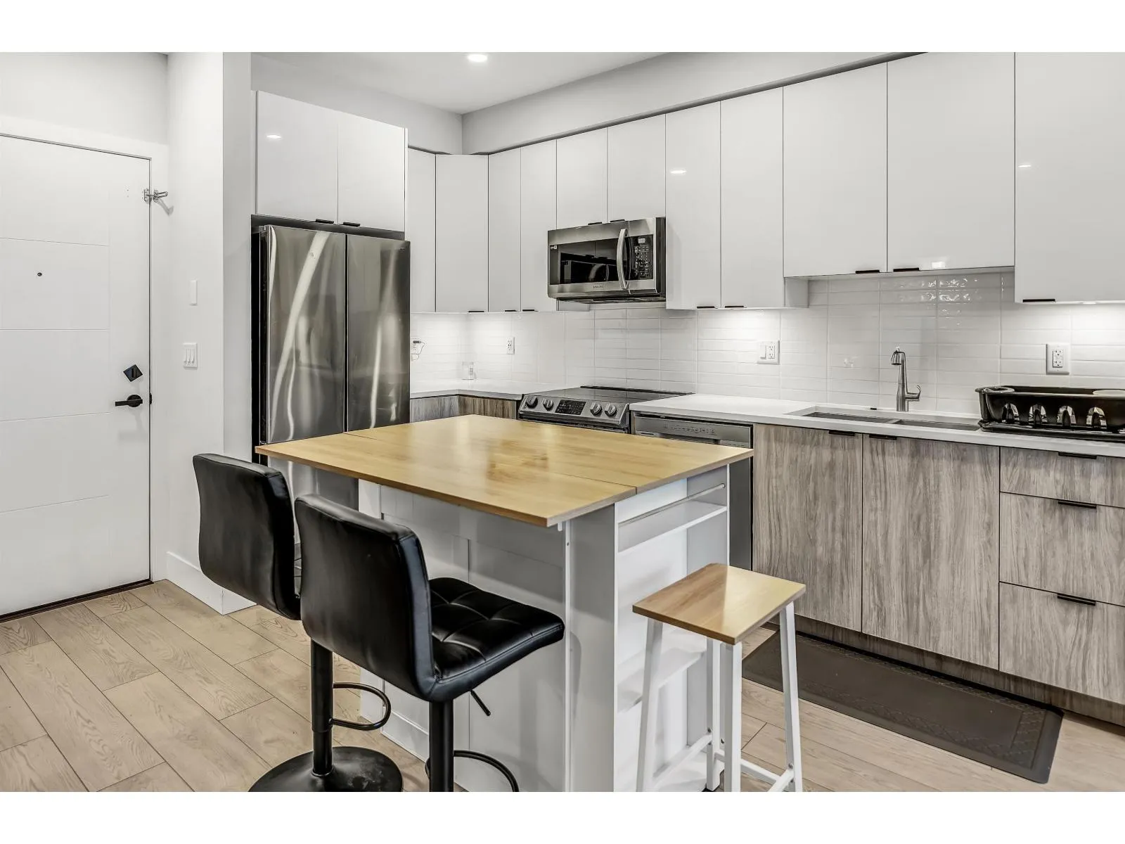 Welcome to a bright and beautifully designed top-floor residence in the heart of Langley City. This thoughtfully laid out 2-bedroom, 2-bathroom home offers approximately 781 sq ft of functional living space, complemented by high ceilings and an airy open-concept feel. Natural light pours through oversized windows, creating a warm and inviting atmosphere. The spacious primary bedroom features a walk-in closet and private ensuite. Step onto your private balcony, perfect for relaxing or entertaining. Ideally located near shopping, dining, parks, and recreation, and close to the future Surrey Langley SkyTrain extension, offering strong long-term growth and connectivity. Quiet side of building. Pet-friendly. One of the best-priced 2-bedroom homes in the area. (id:27476)
