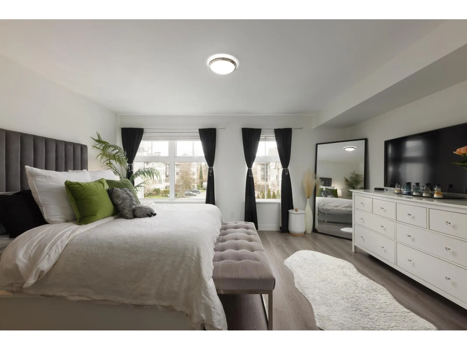 Discover this beautifully maintained 2 bedroom, 2 bathroom home in the heart of Aldergrove, offering over 950 sq ft of bright, thoughtfully designed living space. The home features clean, timeless finishes and a refined, designer-inspired feel throughout. A spacious, oversized primary bedroom creates the perfect retreat, complete with a massive walk-in closet and private ensuite. Large windows fill the home with natural light, enhancing the open and welcoming atmosphere. Enjoy peaceful views as the home backs directly onto protected Bertrand Creek, providing privacy and a serene natural setting. Ideally located close to parks, shopping, and everyday conveniences. Includes 1 parking stall and 1 storage locker. (id:27476)