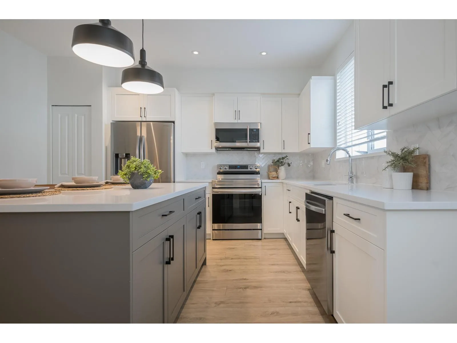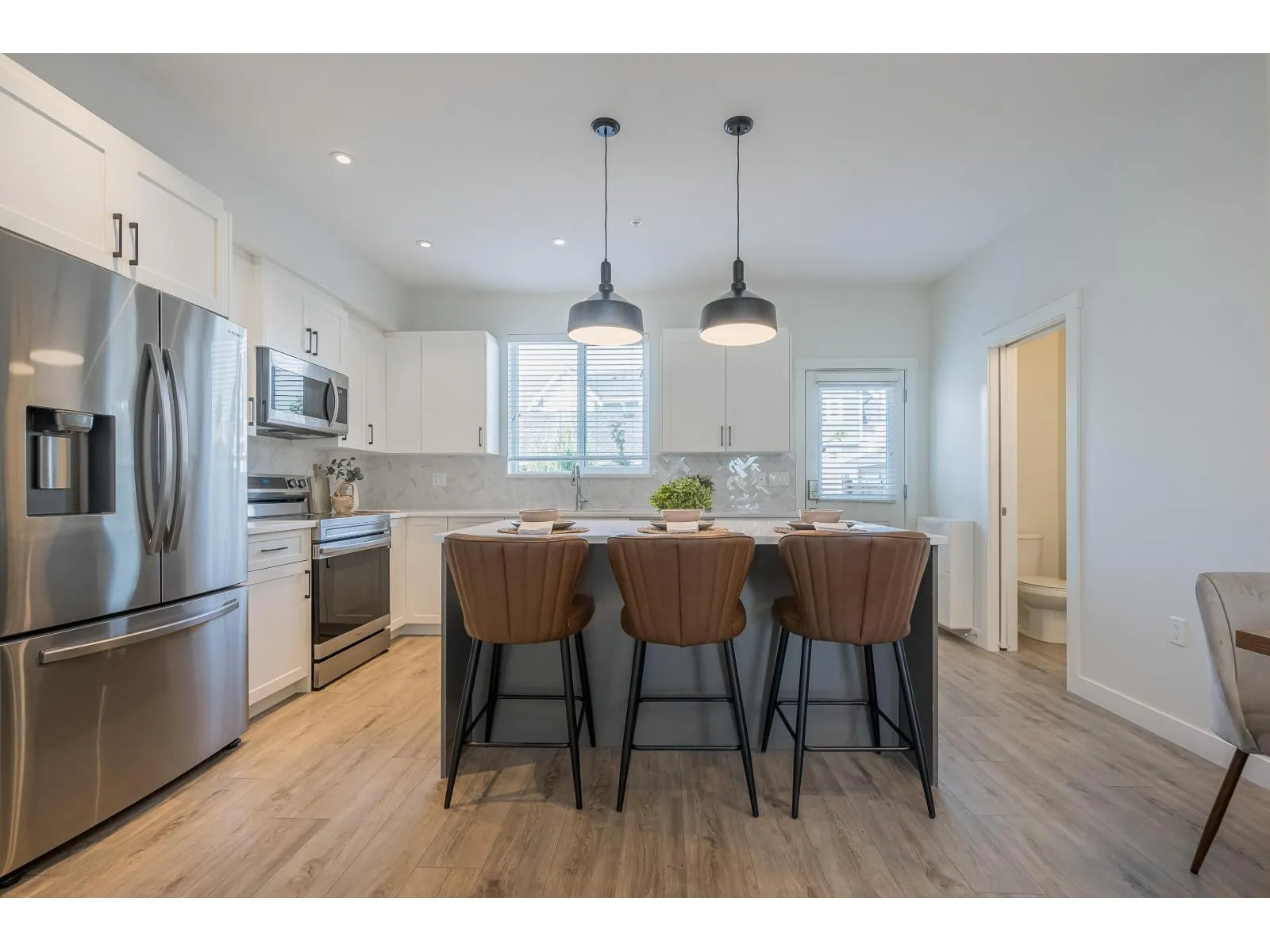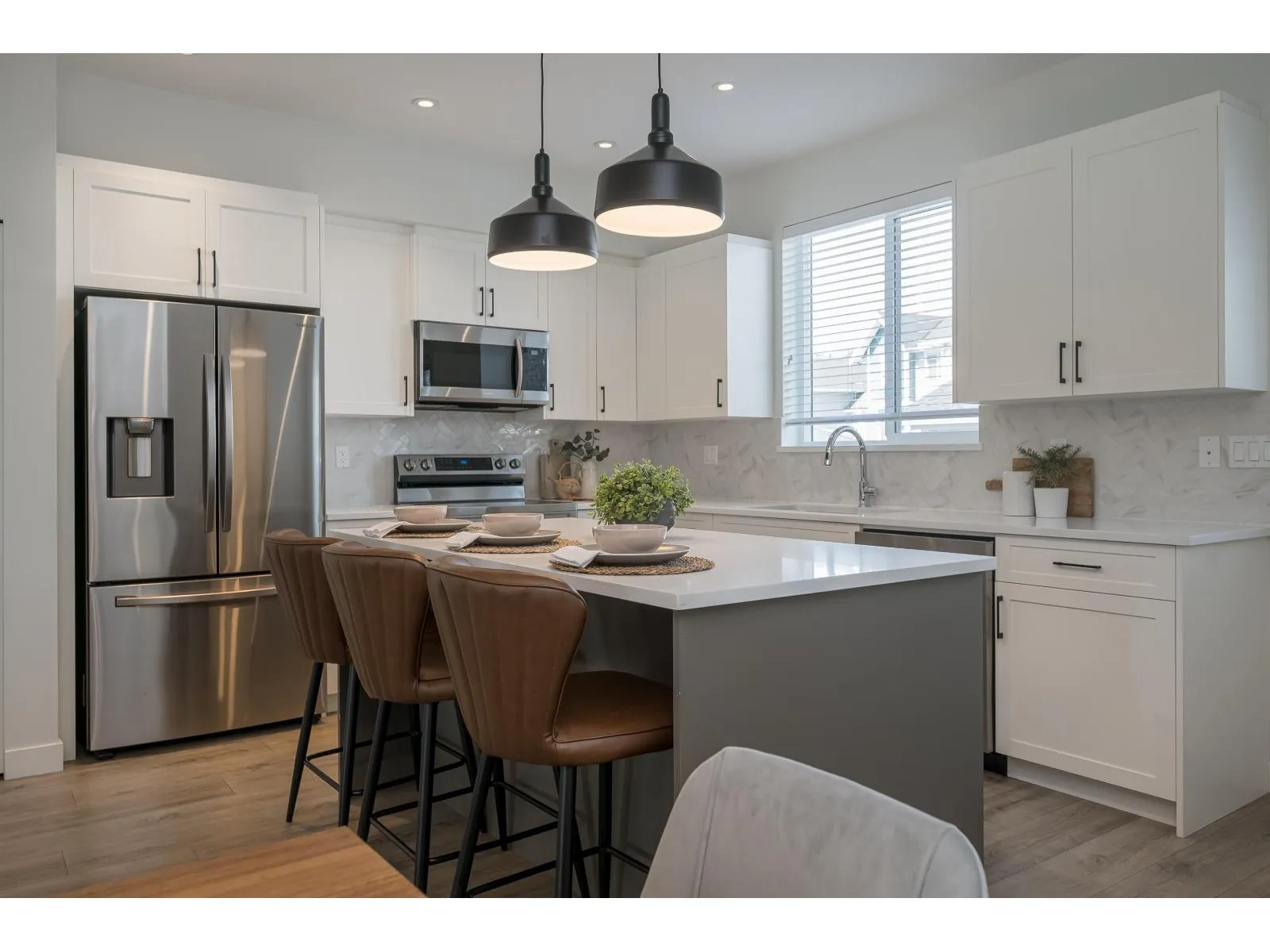Built by Vesta Properties, this exceptional, south facing, non-strata row home stands out in Latimer Heights. Offering over 2,650 sqft with a rare full 2-level + basement & loft layout, a standout floorplan rarely found in the area. Freshly painted, move-in ready and still under warranty. A/C & basement wet bar roughed-in. The 489 sqft sun-filled loft is a stunning open-concept retreat with park views. Bright, elegant main living, plus a finished basement with rec room, bedroom and full bath. Private fenced yard, garage and extra parking. Steps to Latimer Village, top schools, parks and Hwy 1. Perfect for families or professionals needing flexible space, with a premium park-front setting. Rare combination of size, layout and location in one of Willoughby's most sought-after communities. (id:27476)