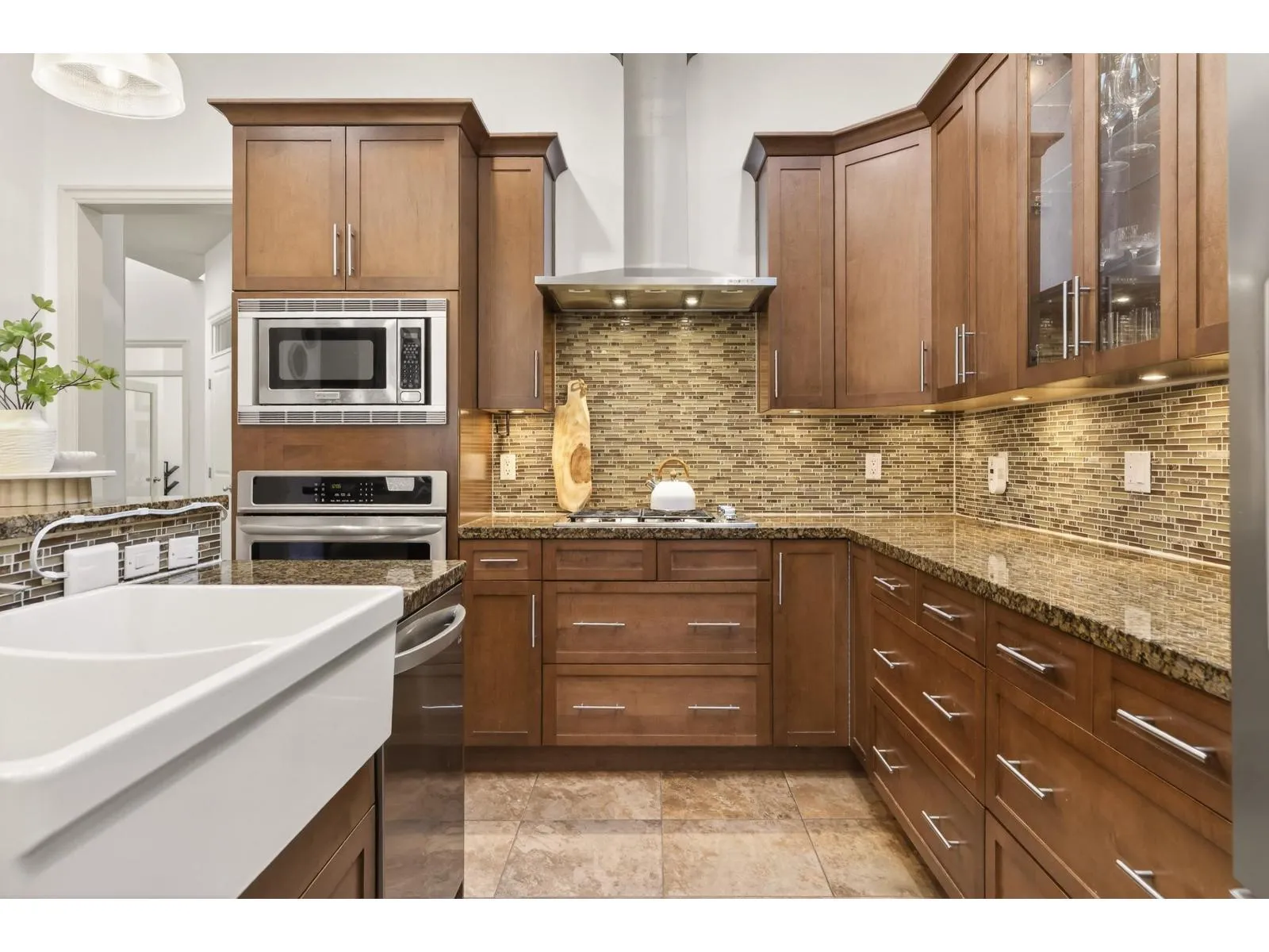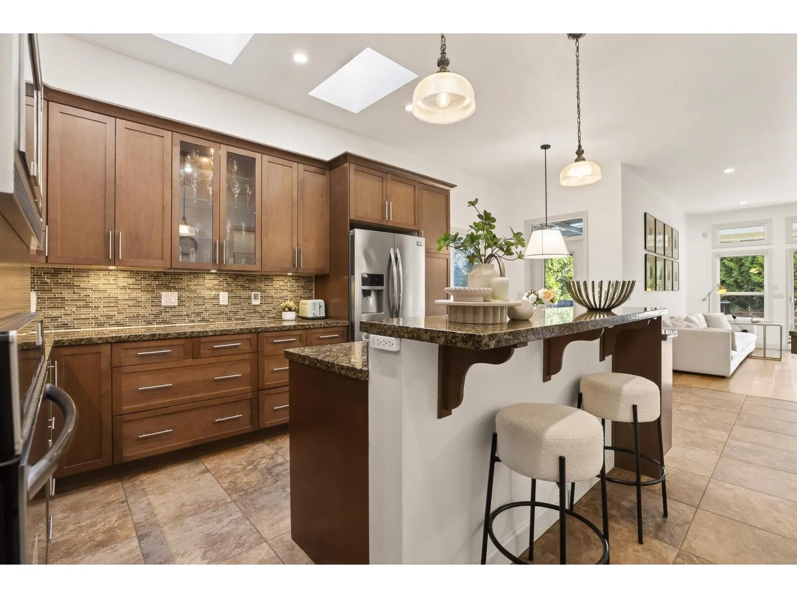 Rare Walnut Grove offering on one of the neighborhood's largest lots, featuring a custom-built home with over 5,200 sq ft of living space. This 6-bedroom, 5-bath residence is thoughtfully designed for comfortable everyday living and entertaining. Enjoy 10' ceilings on the main, a dedicated office, formal living and dining areas, and a chef's kitchen with heated floors, gas cooktop, large island and skylight. French doors open to a covered wrap-around deck with gas hookup and a massive patio. Upstairs offers 4 bedrooms, including a vaulted primary retreat with balcony and spa-inspired ensuite. Basement includes a 2-bedroom suite, wet bar and spacious media room. Upgrades include furnace, tankless hot water, front fencing, engineered hardwood floors and paint, newer appliances and A/C (id:27476)