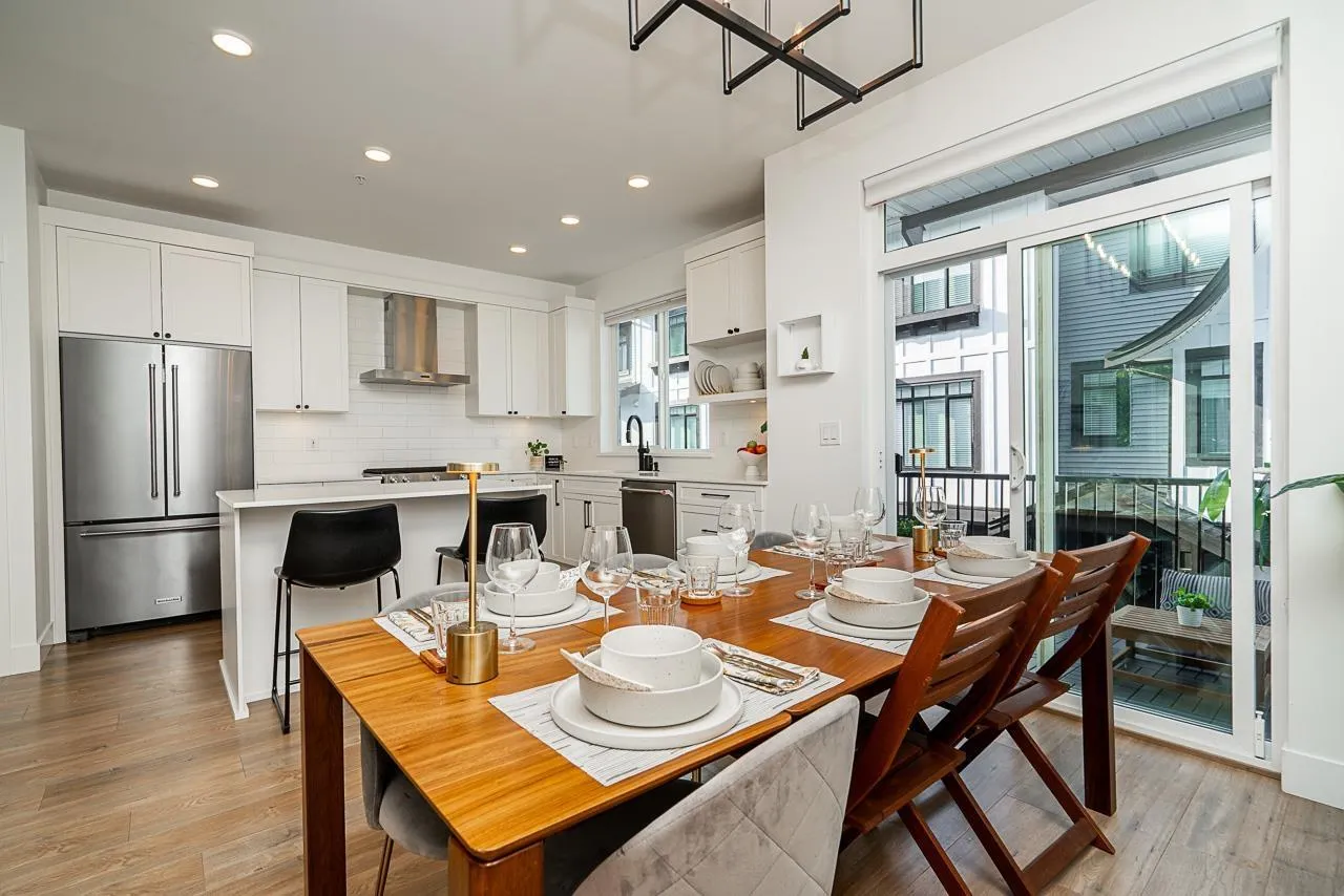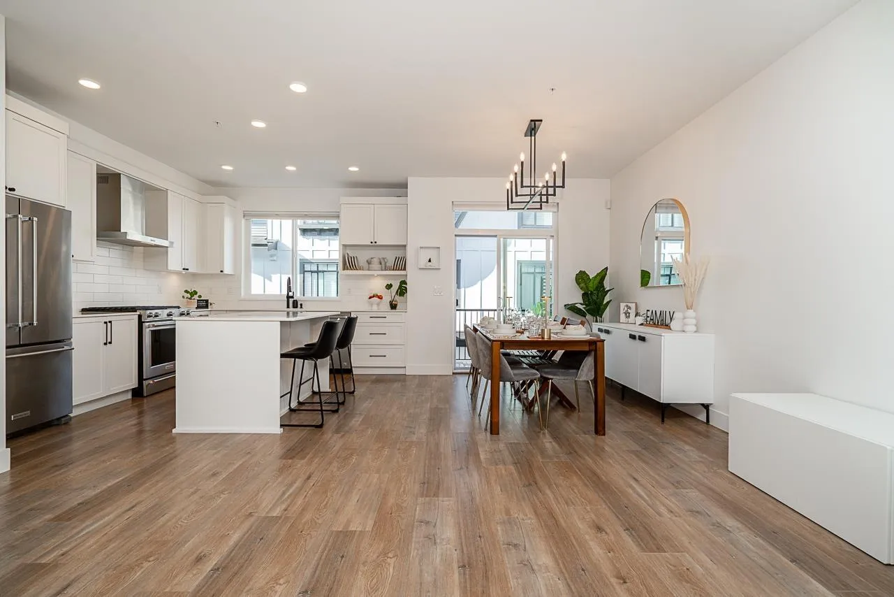 Built by award-winning Infinity Properties, this 3 bedroom, 3 bathroom craftsman-style townhome at WILDER CROSSING is located on the quiet side of the complex. Features include a side-by-side double garage, wide-plank laminate flooring, custom built-in and closet system package throughout, and a fully fenced front yard with irrigation. The main floor offers a den/mudroom, kitchen with KitchenAid appliances, quartz countertops, full tile backsplash, and undermount Blanco sink, plus spacious living and dining areas with additional built-ins. Upstairs includes a vaulted primary suite with walk-in closet and 4-piece en-suite with dual vanity, along with 2 additional bedrooms and full bath. Close to schools, parks, and shopping. (id:27476)