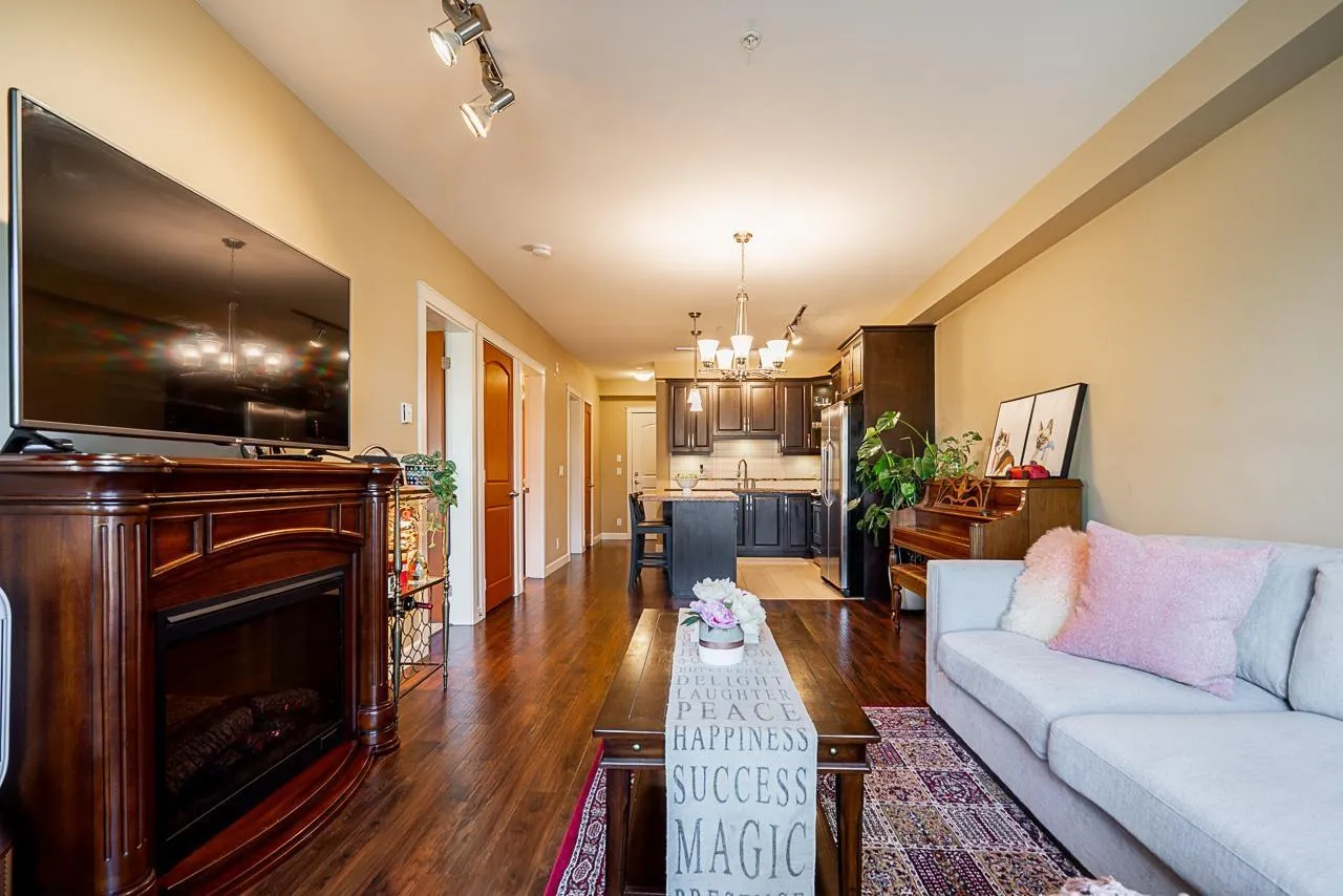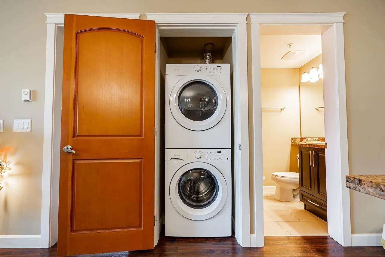 WALNUT RIDGE by Quadra Homes! 2 BED + DEN, 2 BATH | 929 sq.ft | Rare 256 sq.ft wrap-around private balcony perfect for relaxing or entertaining. Open-concept kitchen with S/S appliances including a NEW LG refrigerator, large granite island, and ample cabinetry, plus NEW LG washer & dryer. Bright primary bedroom includes A/C, his & hers closets, and a generous ensuite with double sinks and a tub/shower combo. Comes with 2 parking stalls and 1 private storage locker conveniently located directly in front of the parking. Close to shopping, restaurants, Carvolth Exchange, parks, and more. Walking distance to Willoughby Elementary and Yorkson Creek Middle, with R.E. Mountain Secondary just a short drive away. Just steps to Yorkson Playground! (Building B) *** OPEN HOUSE on April 4th (Sat) 2-4PM (id:27476)