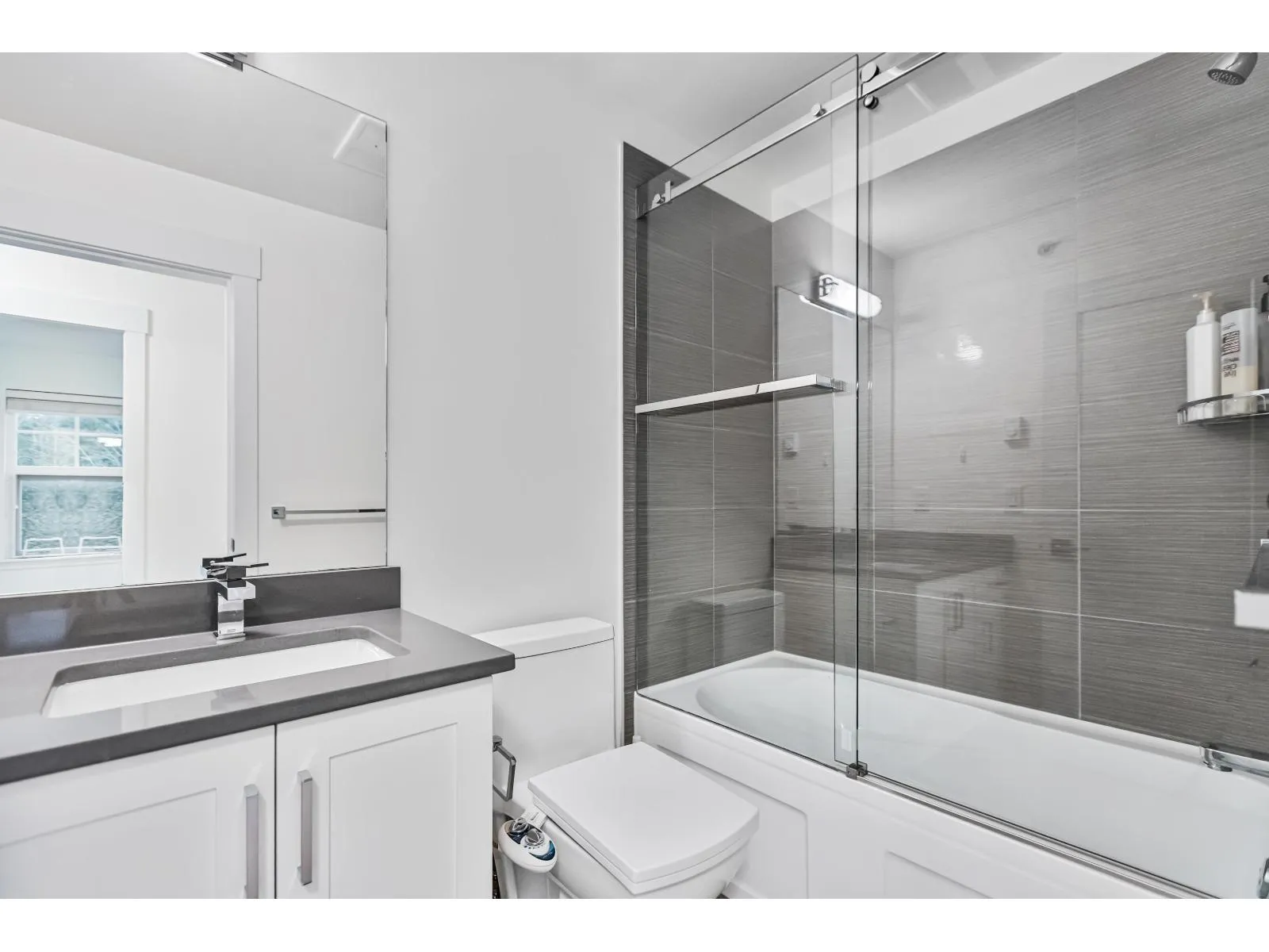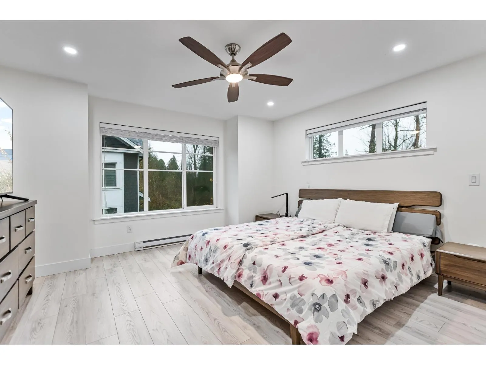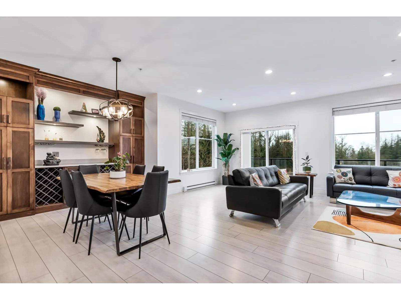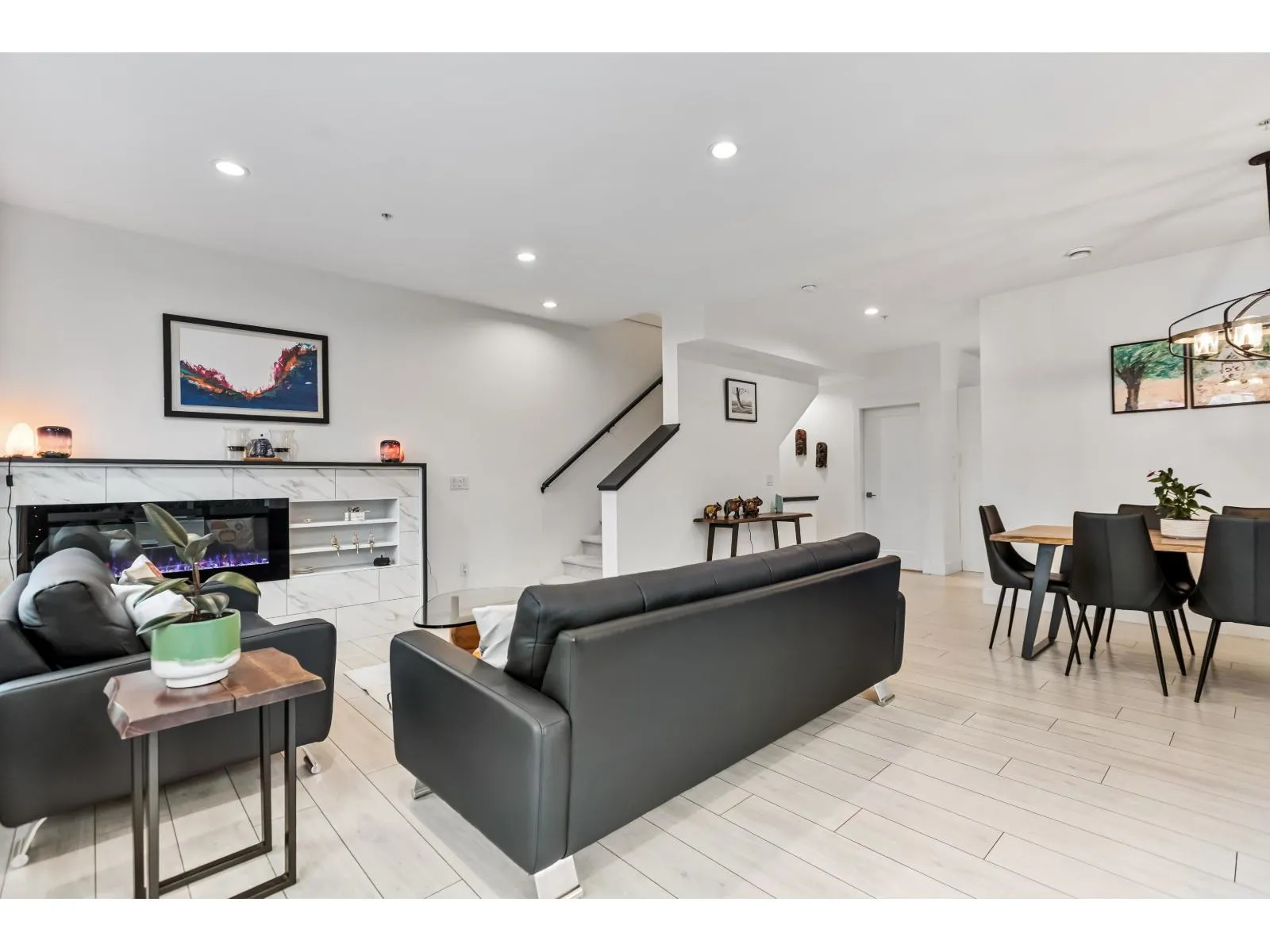 HUTTON. Impressive 5 BED, 4 BATH, 2,516 sq. ft. END UNIT tucked into a beautifully treed setting. Bright 9 ft. ceilings, rich wide-plank flooring, and a thoughtfully designed kitchen with quartz counters, stainless appliances, gas range, shaker cabinets with clever built-ins, and a generous island. Perfect for gatherings and everyday comfort. Upstairs, the spacious primary suite offers a spa-style ensuite with dual sinks, soaker tub, and shower. A lower-level bedroom with its own ensuite is ideal for guests or teens. Side-by-side garage plus visitor and street parking. Minutes to Willowbrook Shopping Centre, great dining, recreation, Hwy 1, Hwy 10, and the upcoming high school - an incredible opportunity for growing and young families. (id:27476)